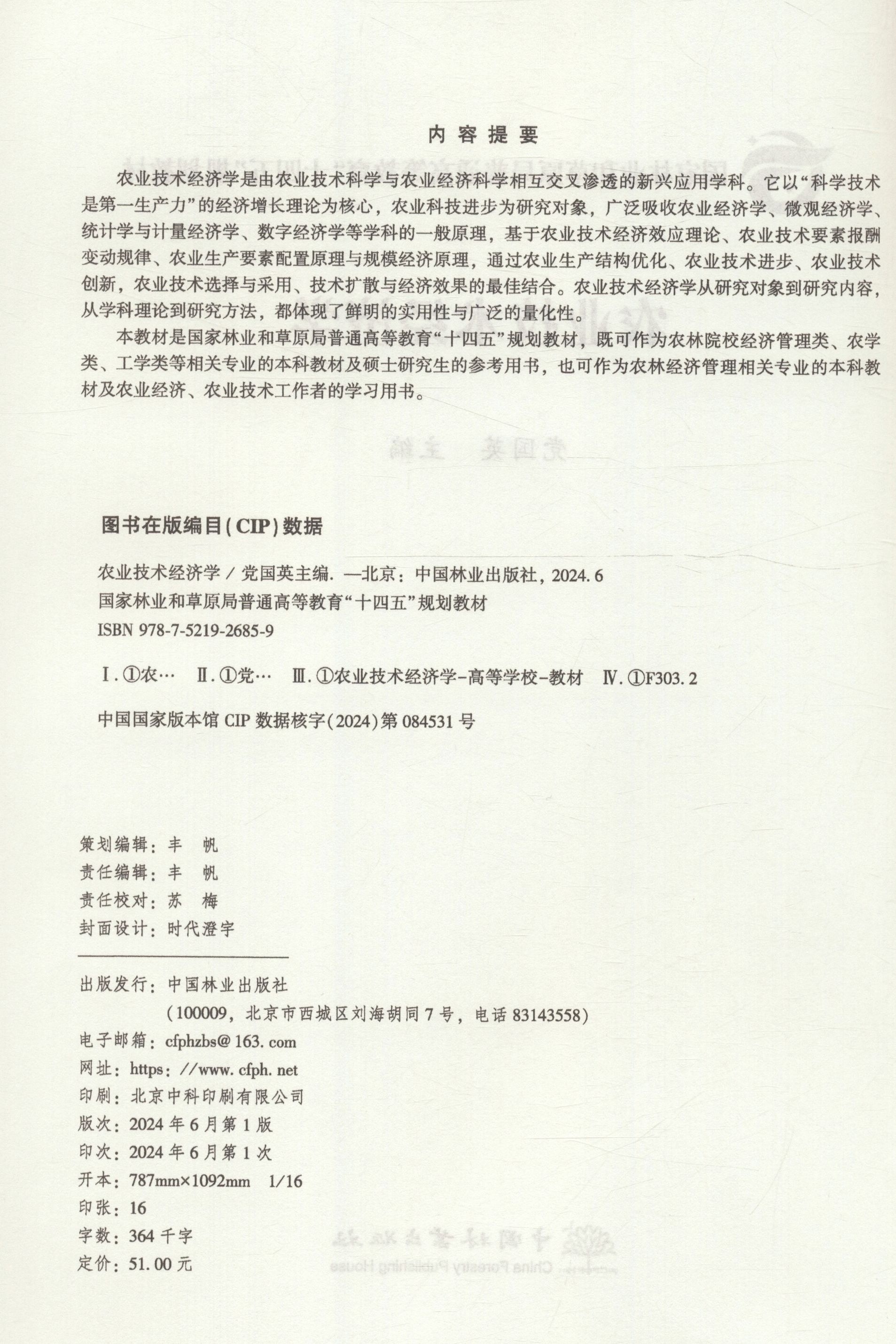 农业技术经济学(国家林业和草原局普通高等教育十四五规划教材) &2685