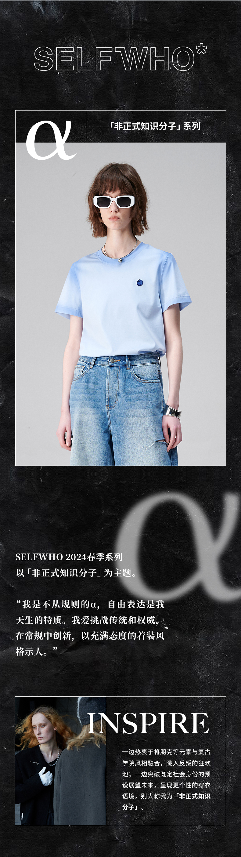 - SELFWHO——将街头文化融入高级成衣,以服装为载体,用廓形、解构设计和艺术意象探寻极致的生活方式。特立独行,知行合一,TO BE YOURSELF。
