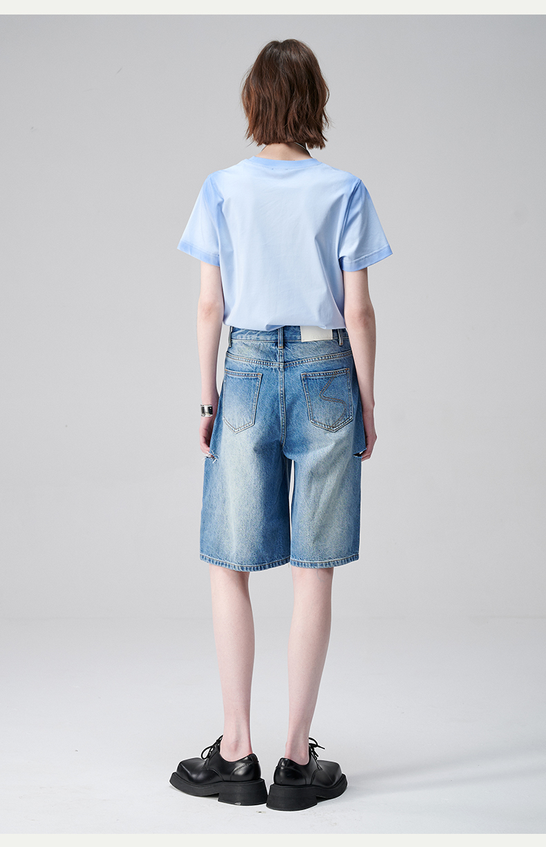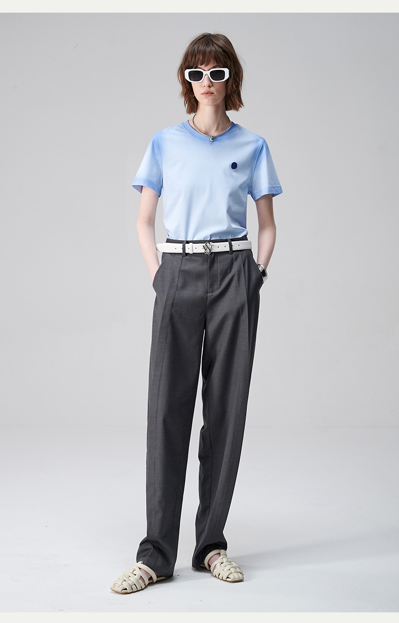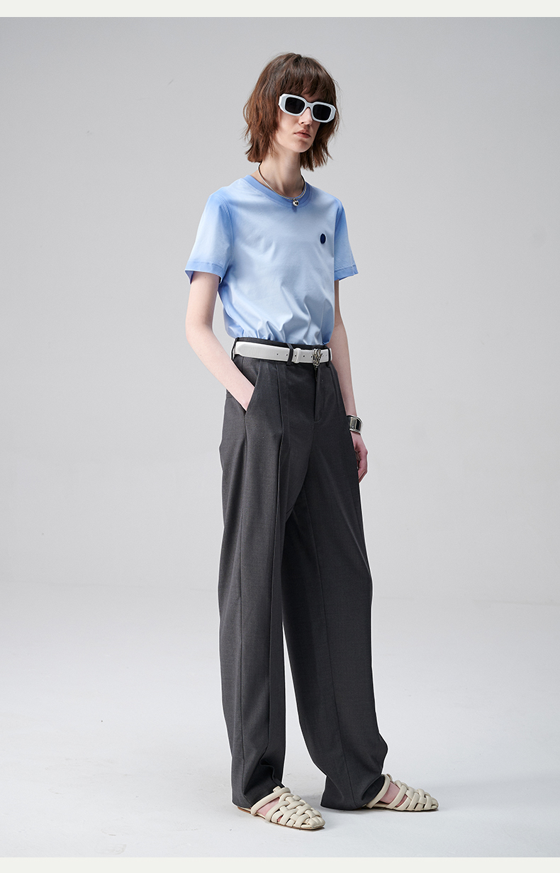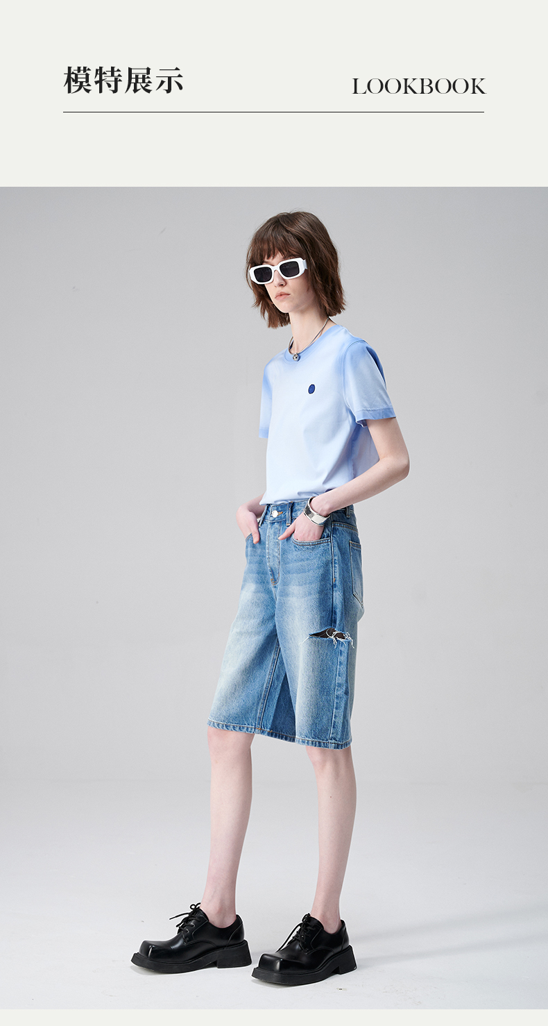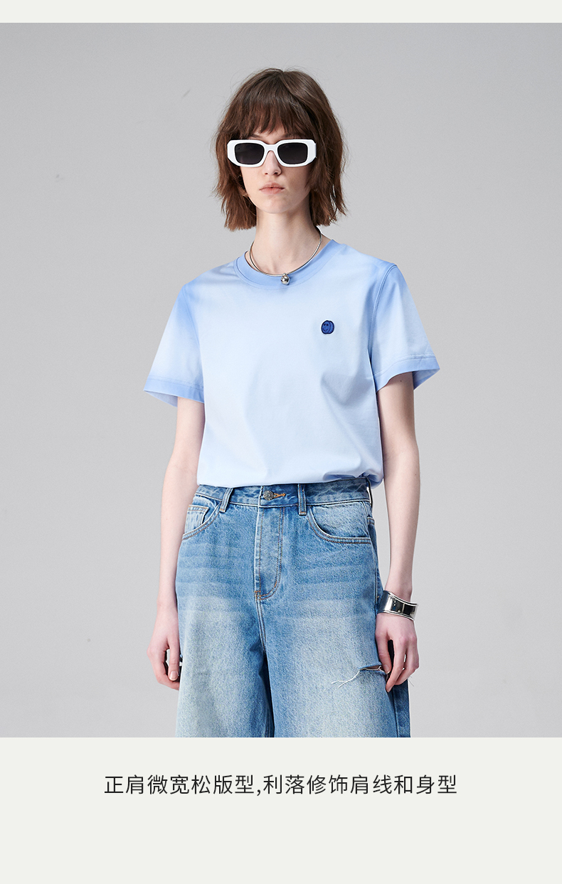 SELFWHO 莫代尔桑蚕丝混纺T恤女2024春季新款设计感宽松短袖上衣