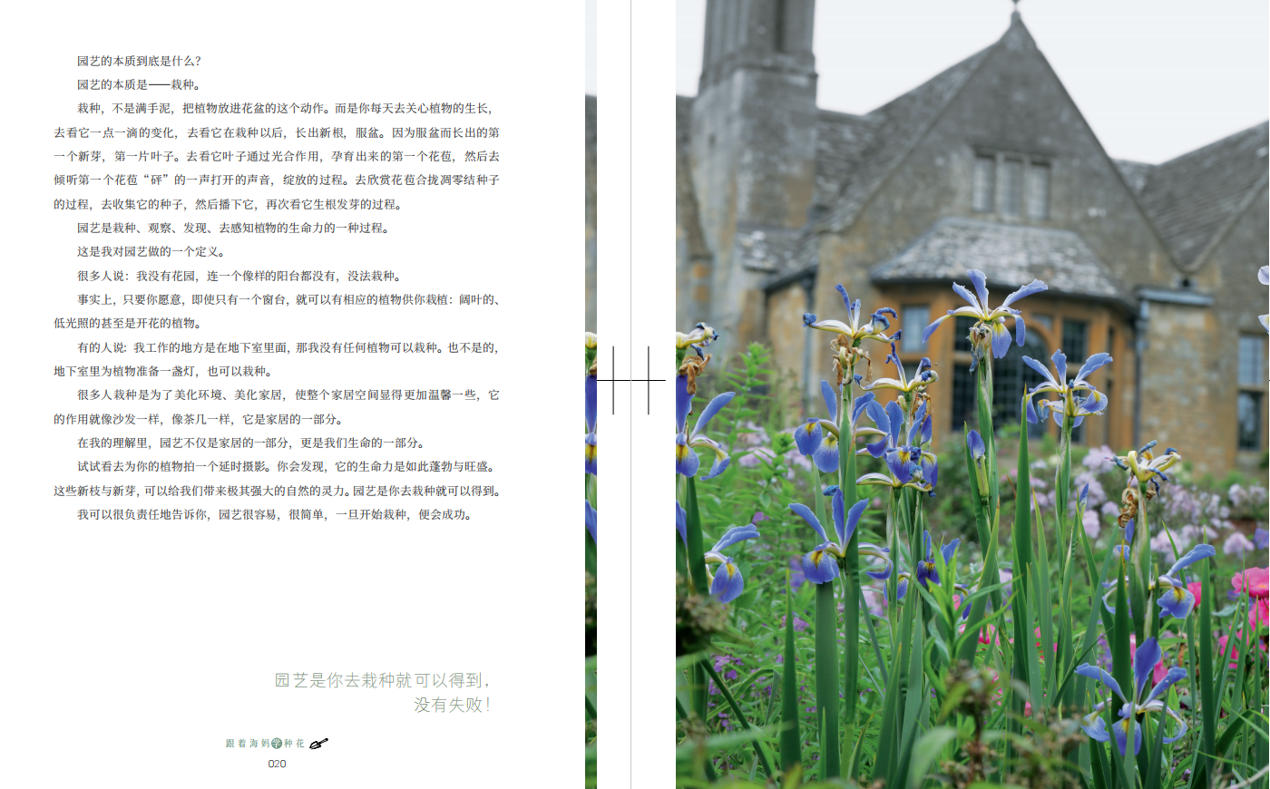 在这本书中,还深刻地诠释了海妈对园艺的理解:园艺不仅是居家的一部分,园艺是我们生命的一部分。她栽种下的‘斑马’海芋,治好了她的焦虑症;她说宿根植物的冬天才是真正属于园丁的……她希望通过园艺,能帮助到现代更多有心理焦虑的人们。