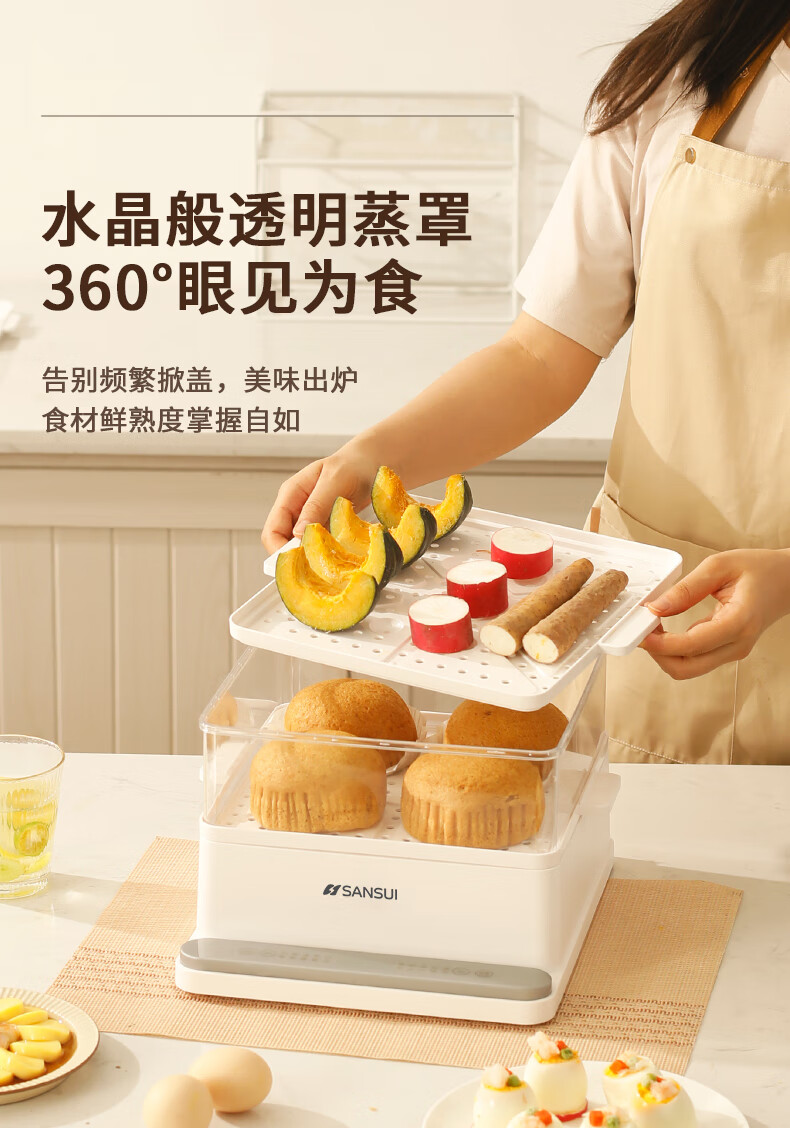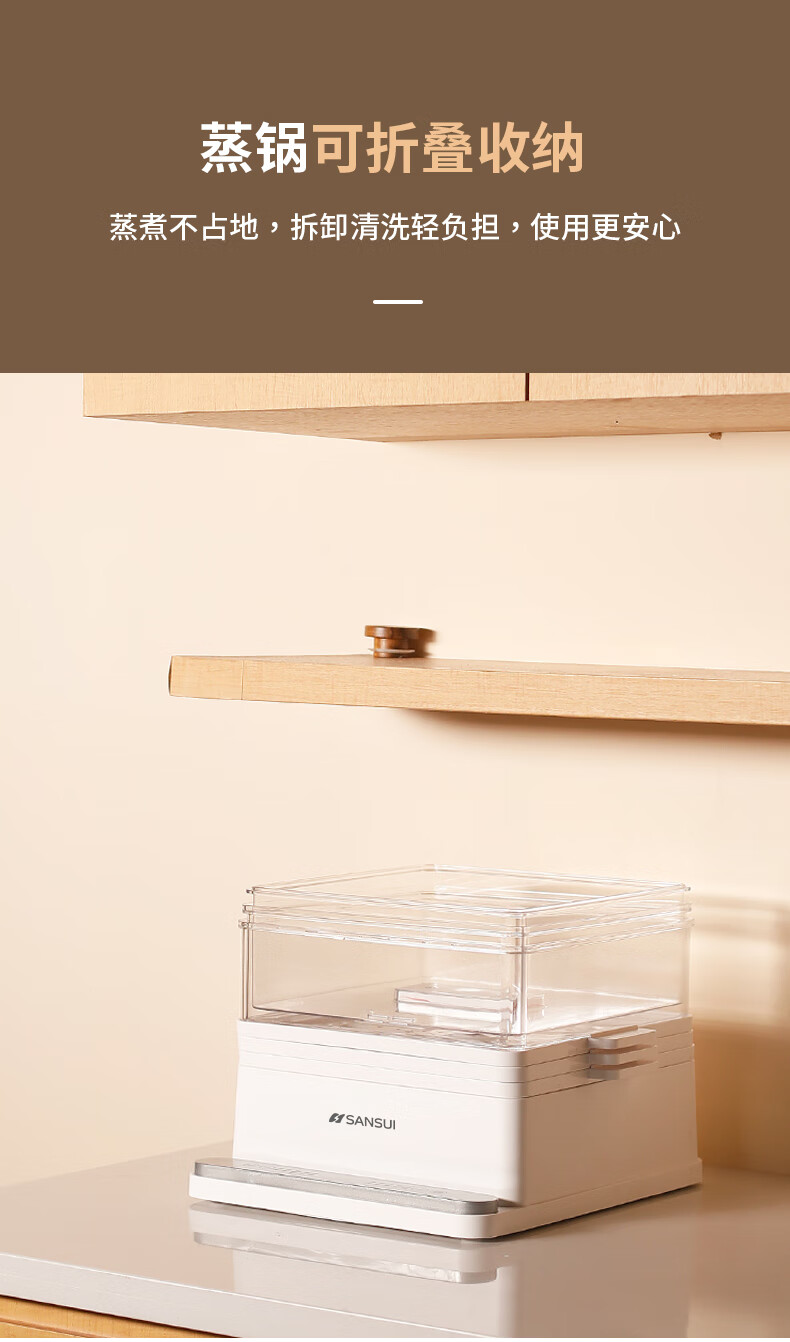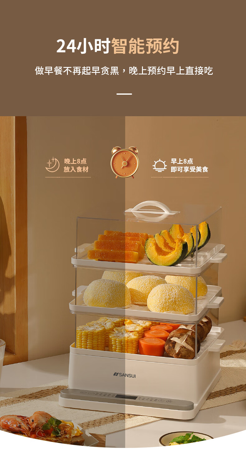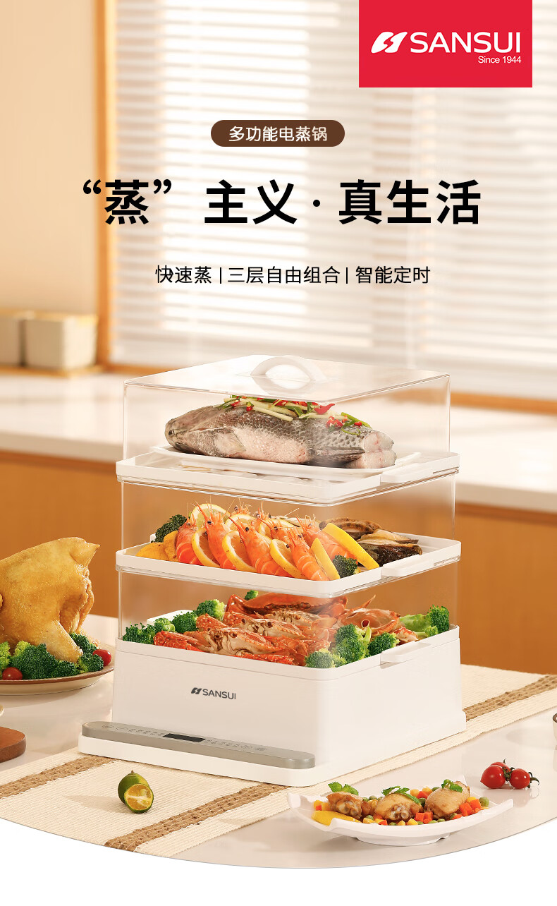 山水(SANSUI)电蒸锅大容量家用多功能电锅定时 3层24L大容量【可折叠收纳】