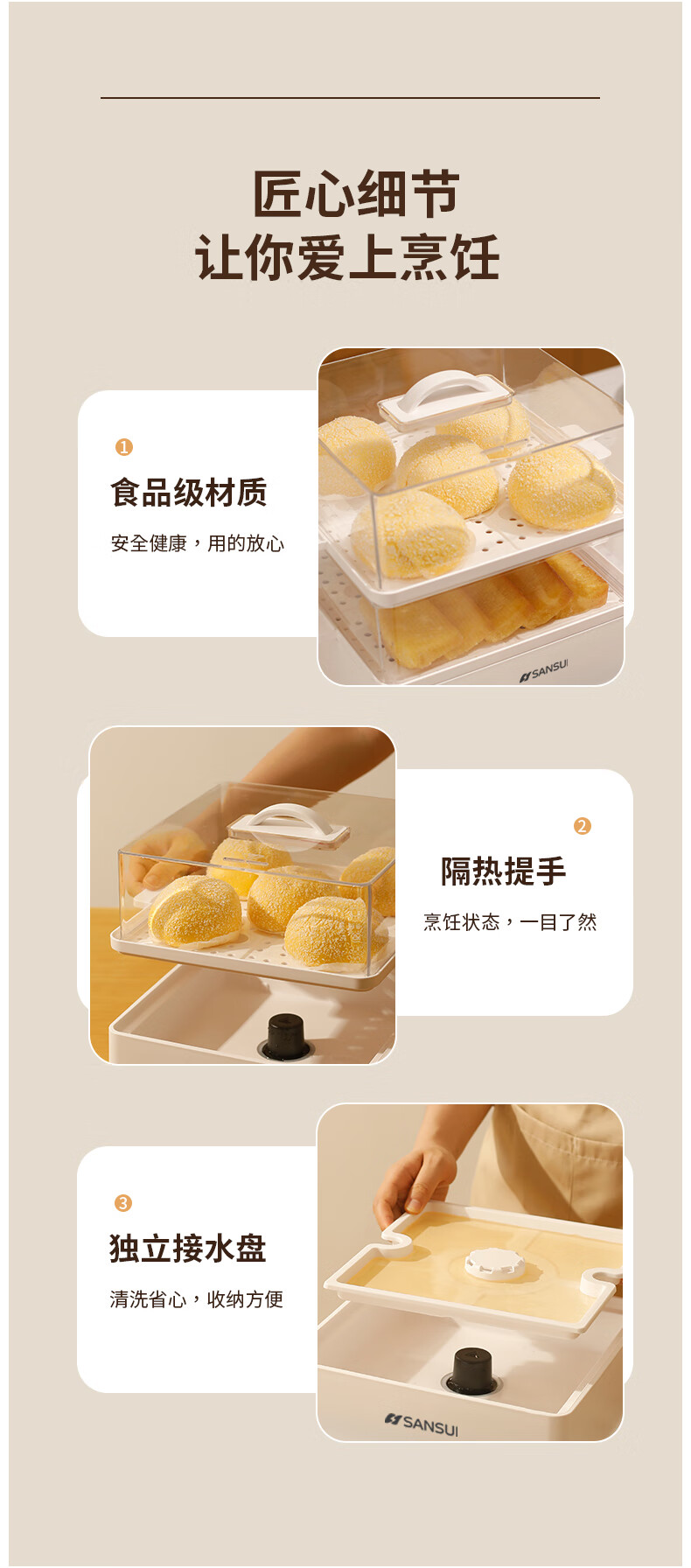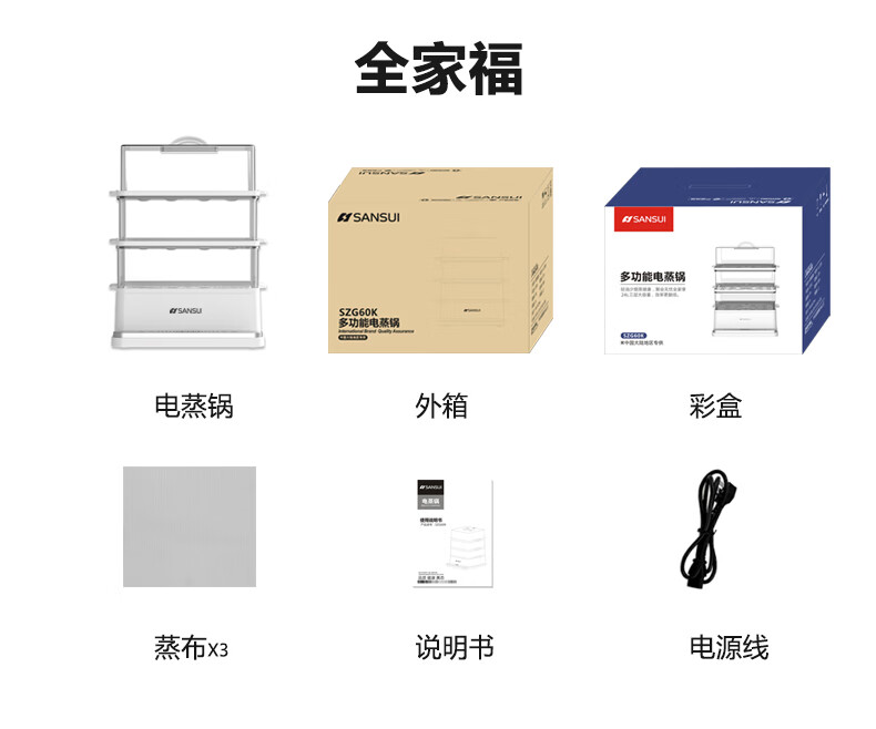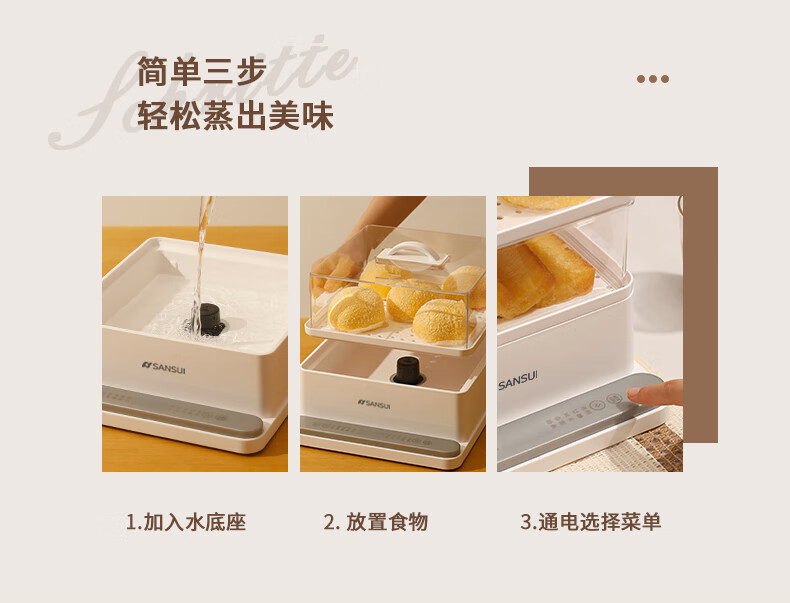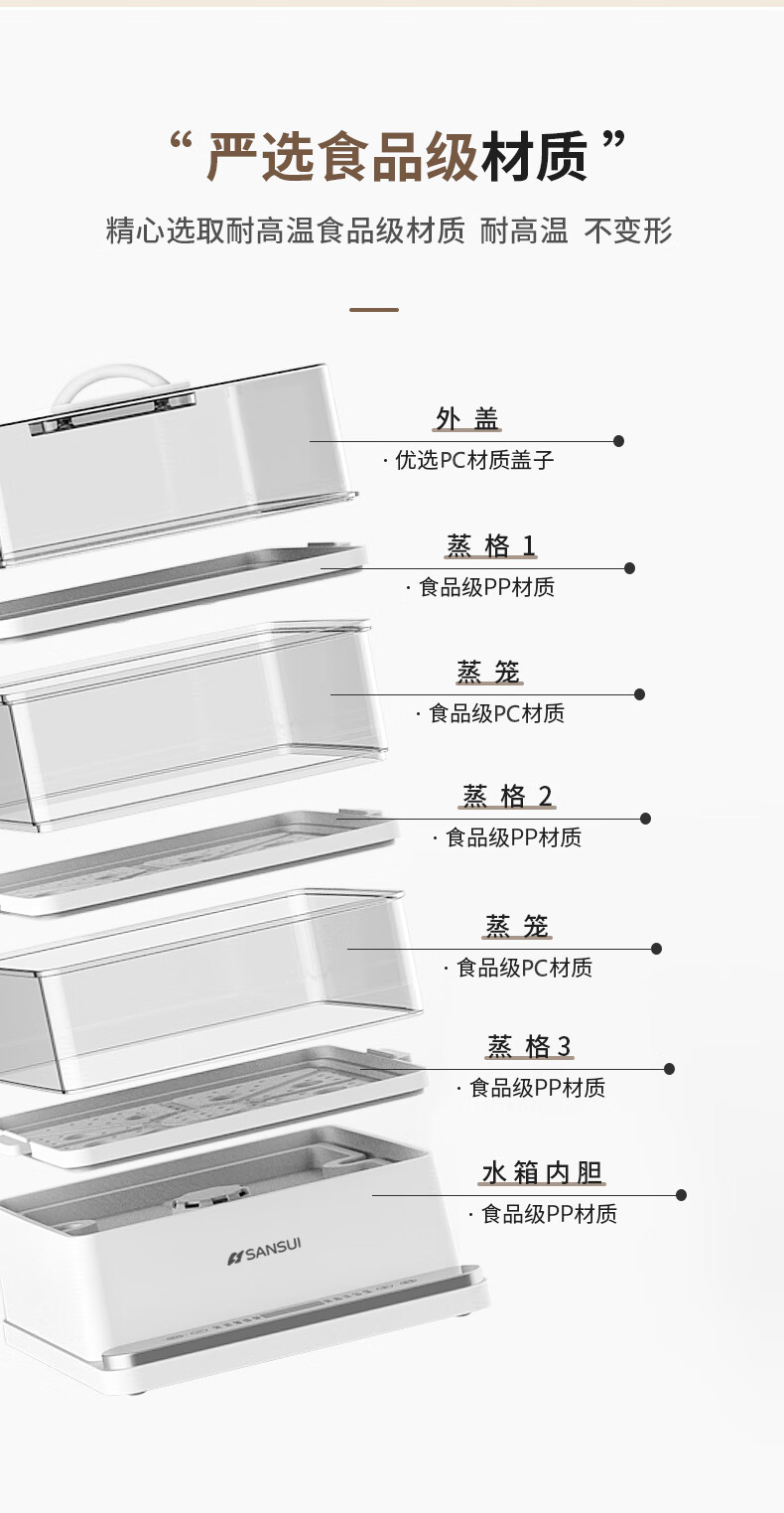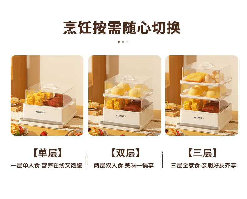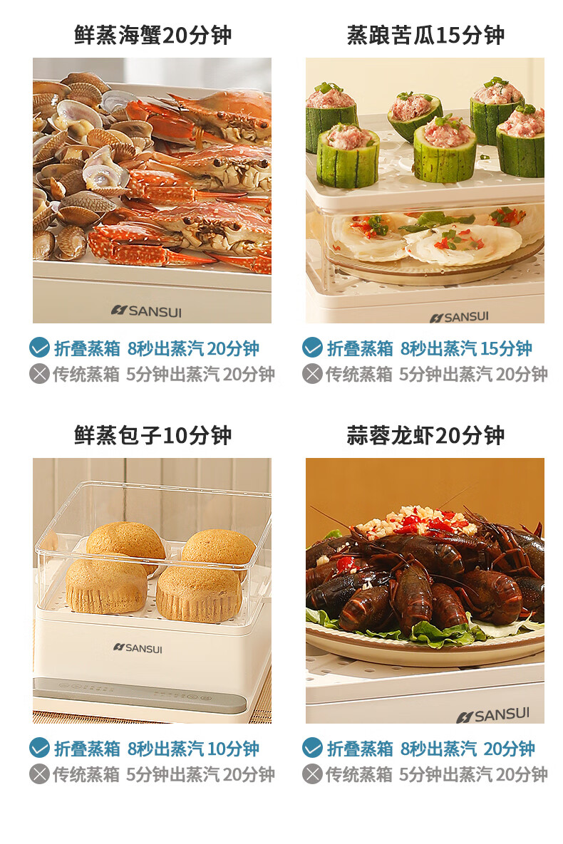 山水(SANSUI)电蒸锅大容量家用多功能电锅定时 3层24L大容量【可折叠收纳】