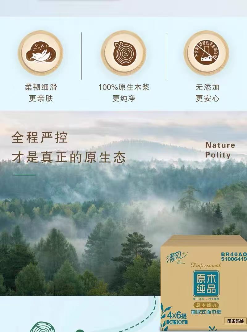 清风原木纯品四叶草压花100抽抽取式面纸24包/箱(箱装)