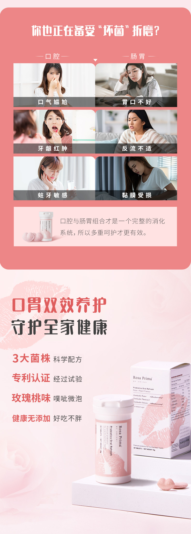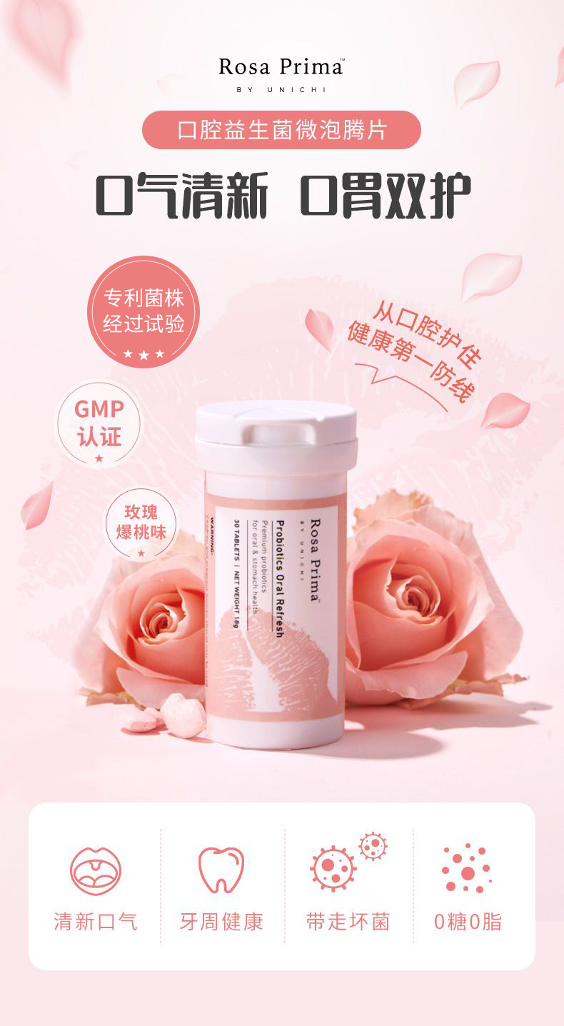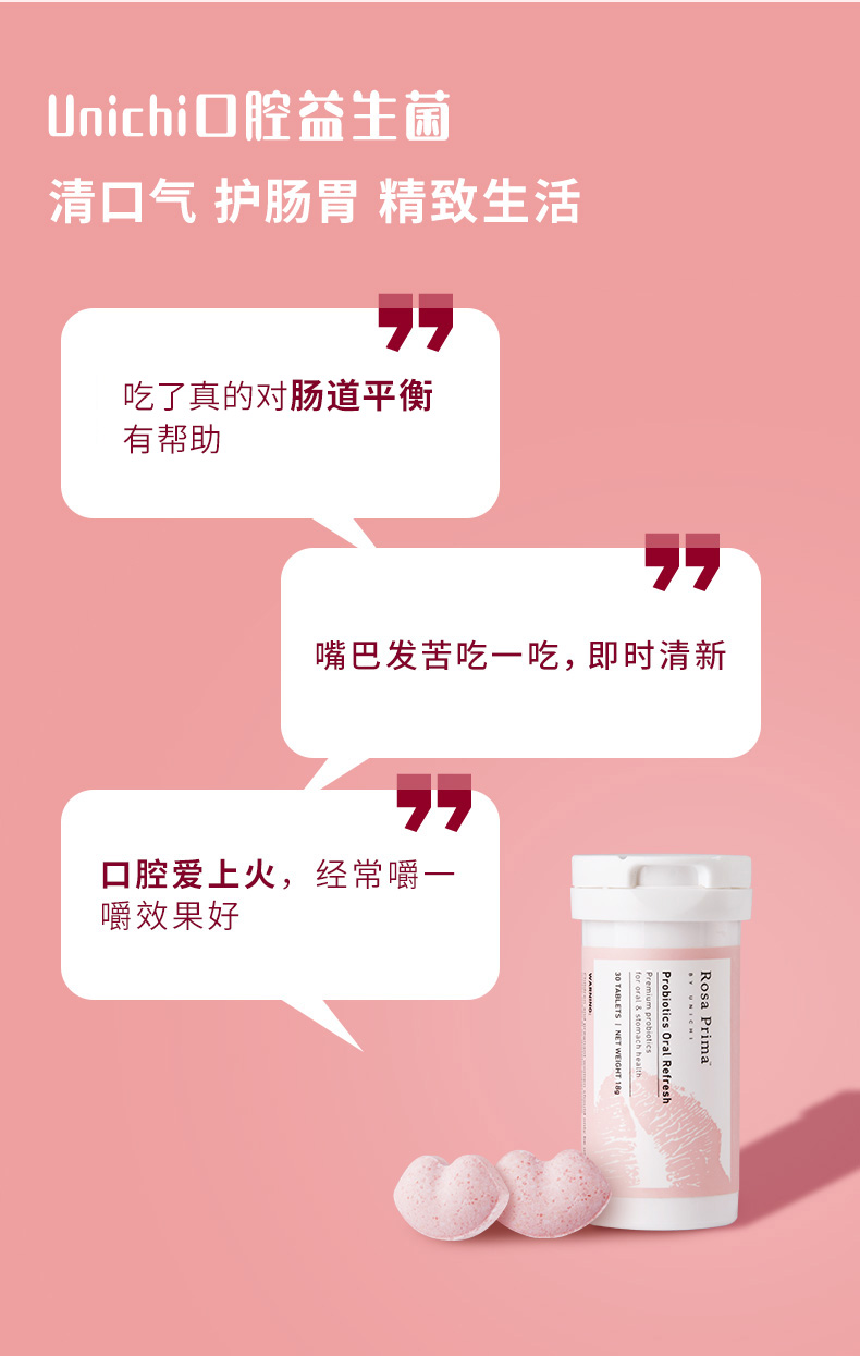 Unichi口腔益生菌微泡腾片口胃双效养护微泡腾片30粒/瓶 (效期到28年4月)