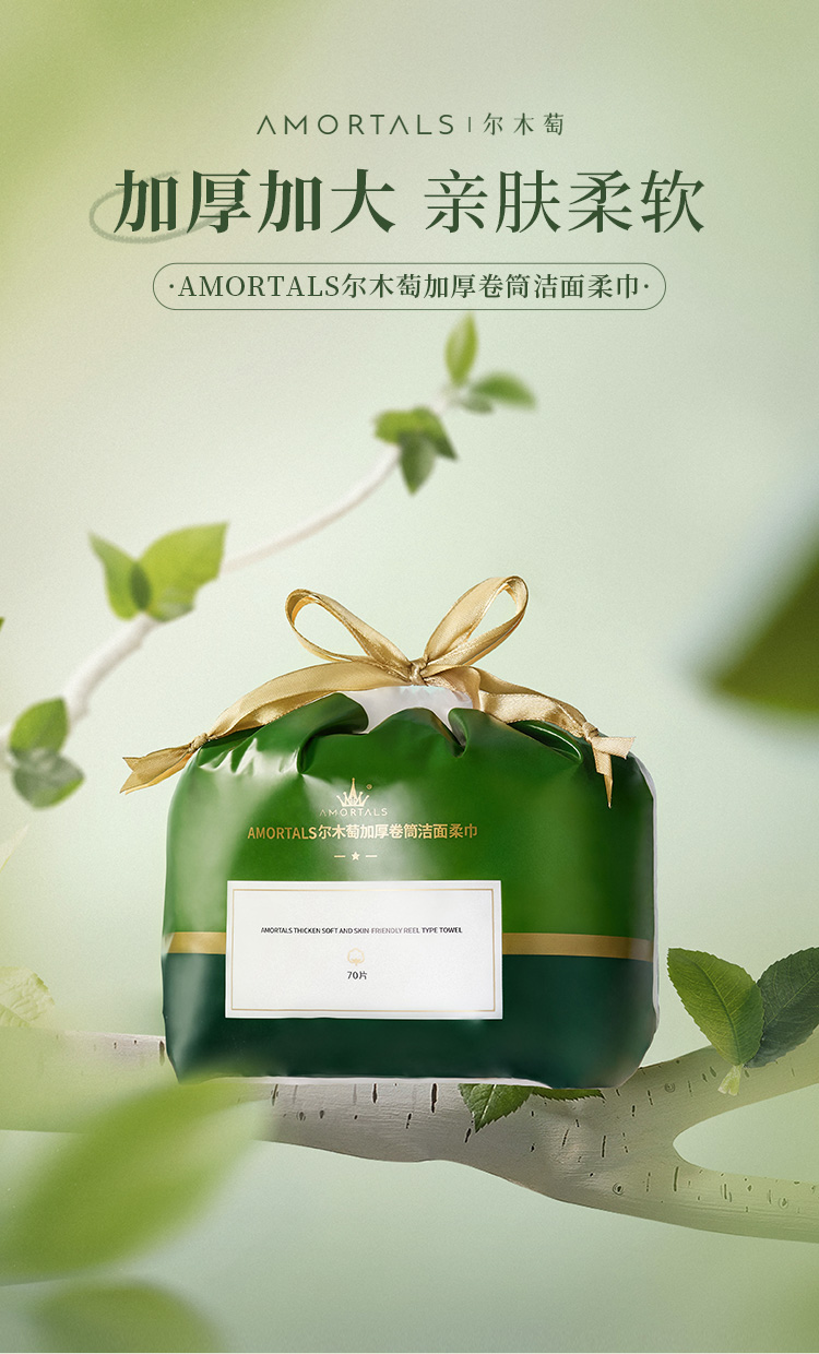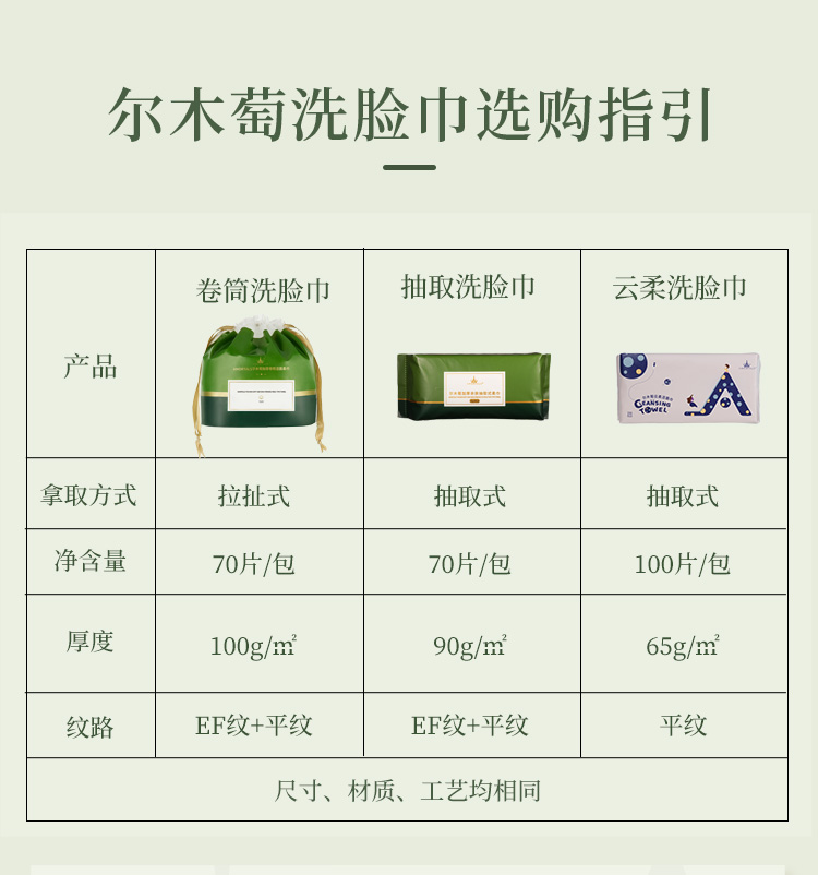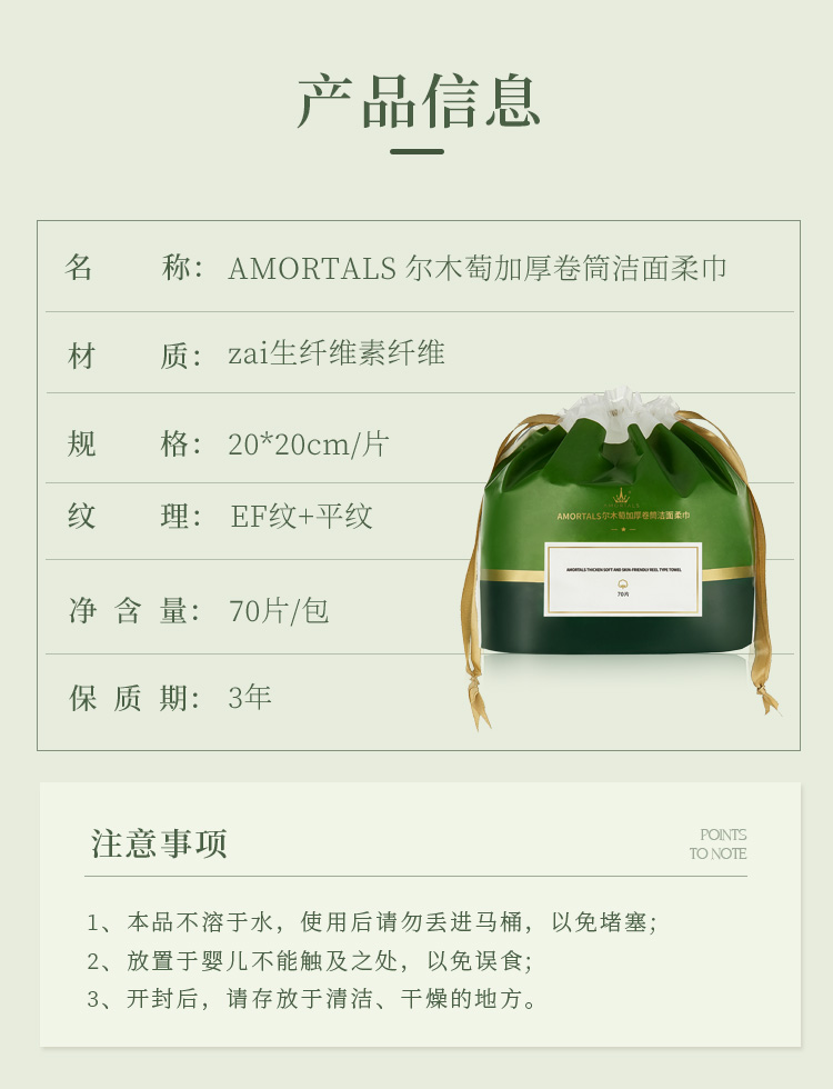 【3袋/210抽】尔木萄 加厚卷筒洁面柔巾一次性洗脸巾 70片/袋