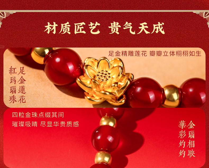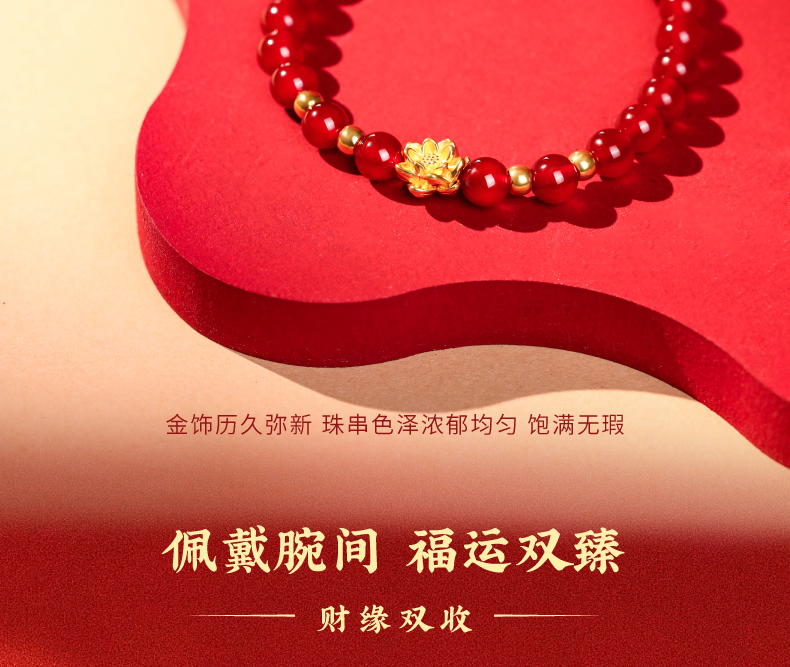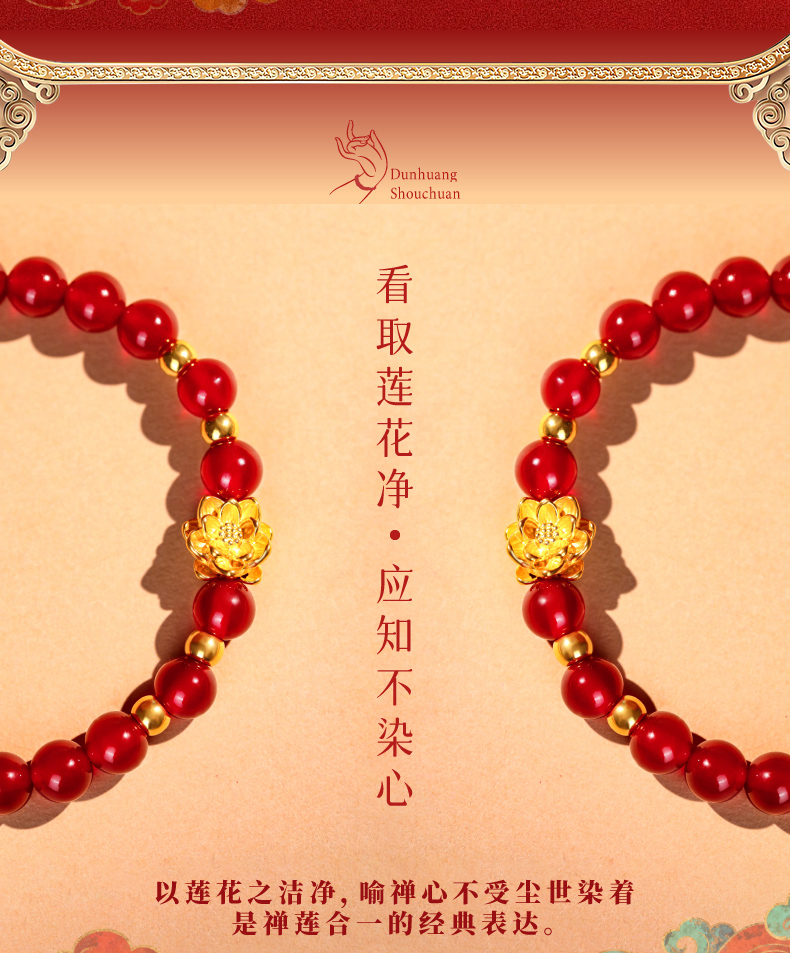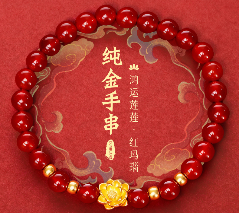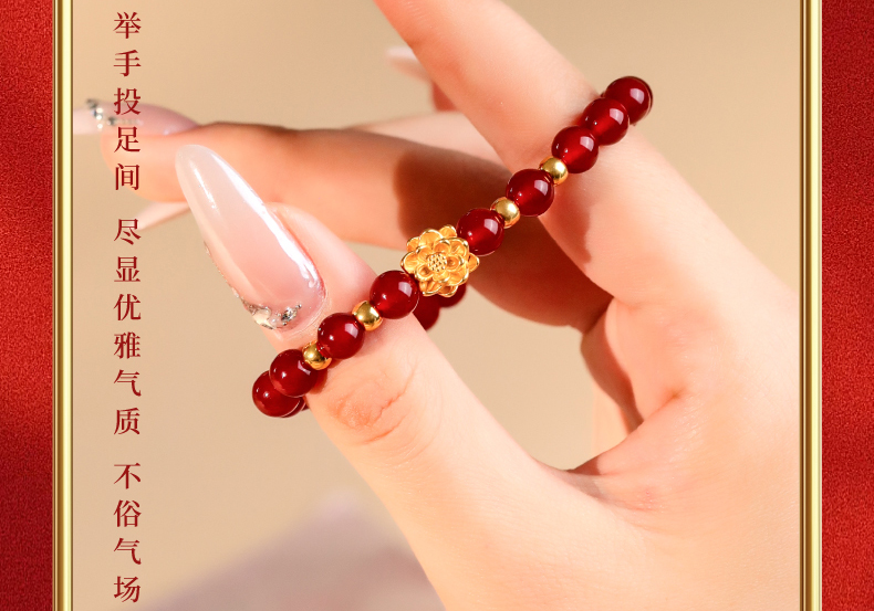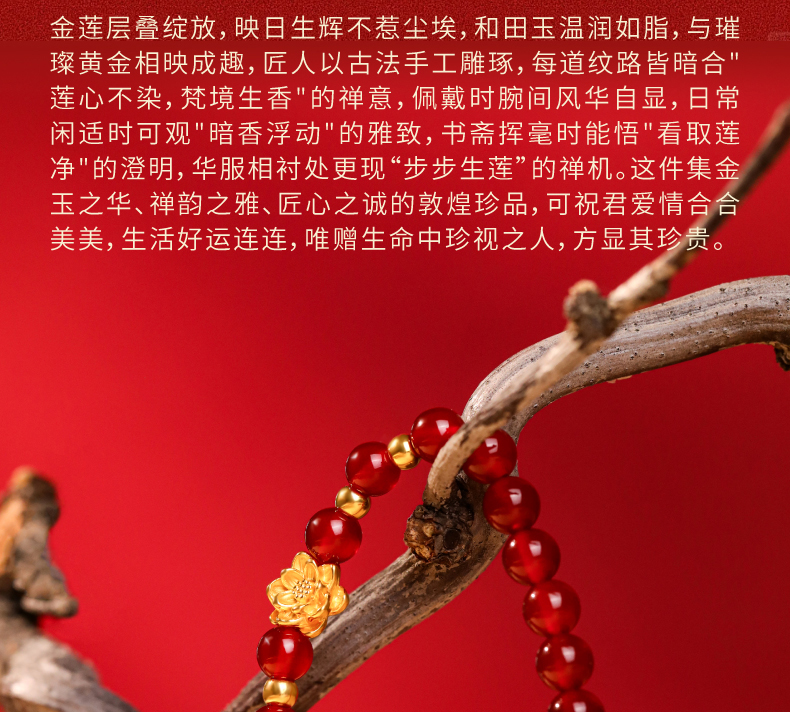 【鸿运莲莲·红玛瑙纯金手串】敦煌福泽小众黄金999莲花手链足金 玫瑰花红玛瑙转运珠手串