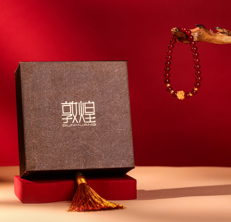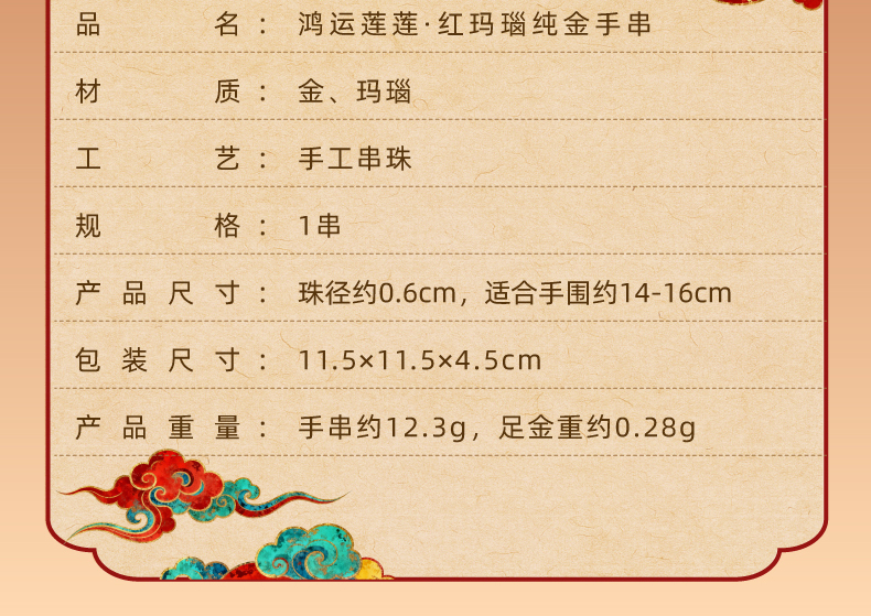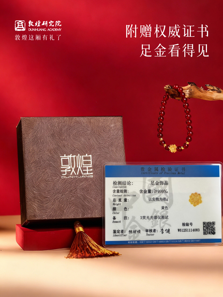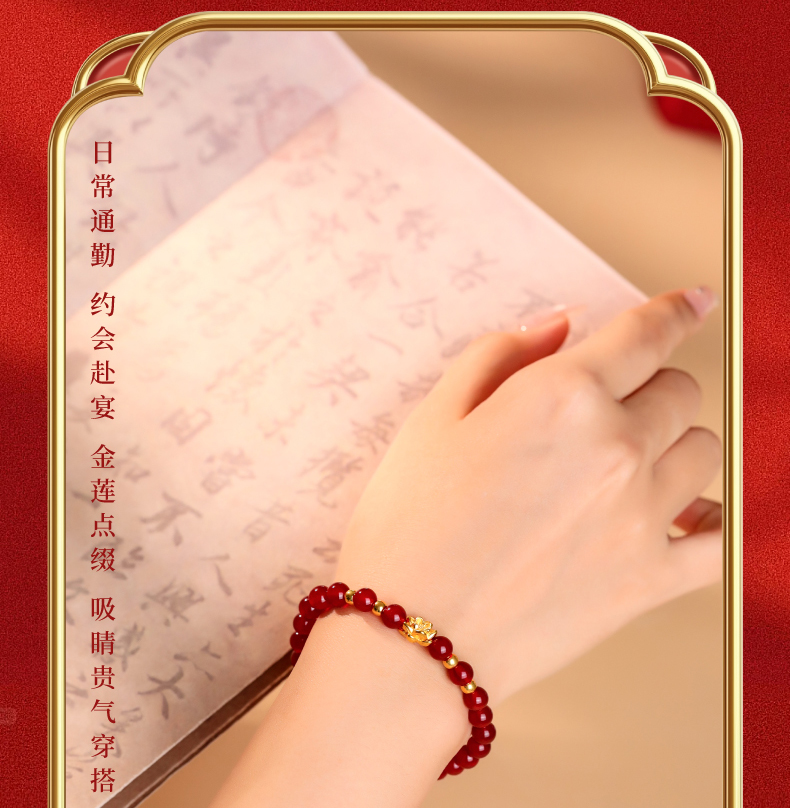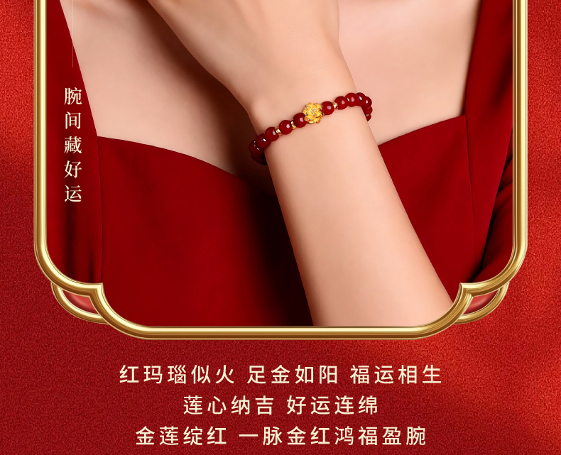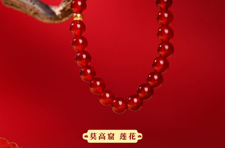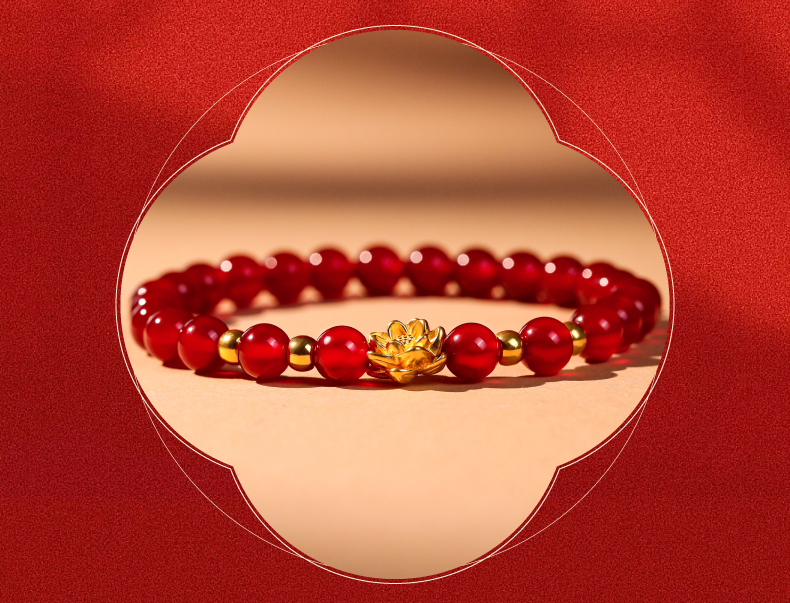 【鸿运莲莲·红玛瑙纯金手串】敦煌福泽小众黄金999莲花手链足金 玫瑰花红玛瑙转运珠手串