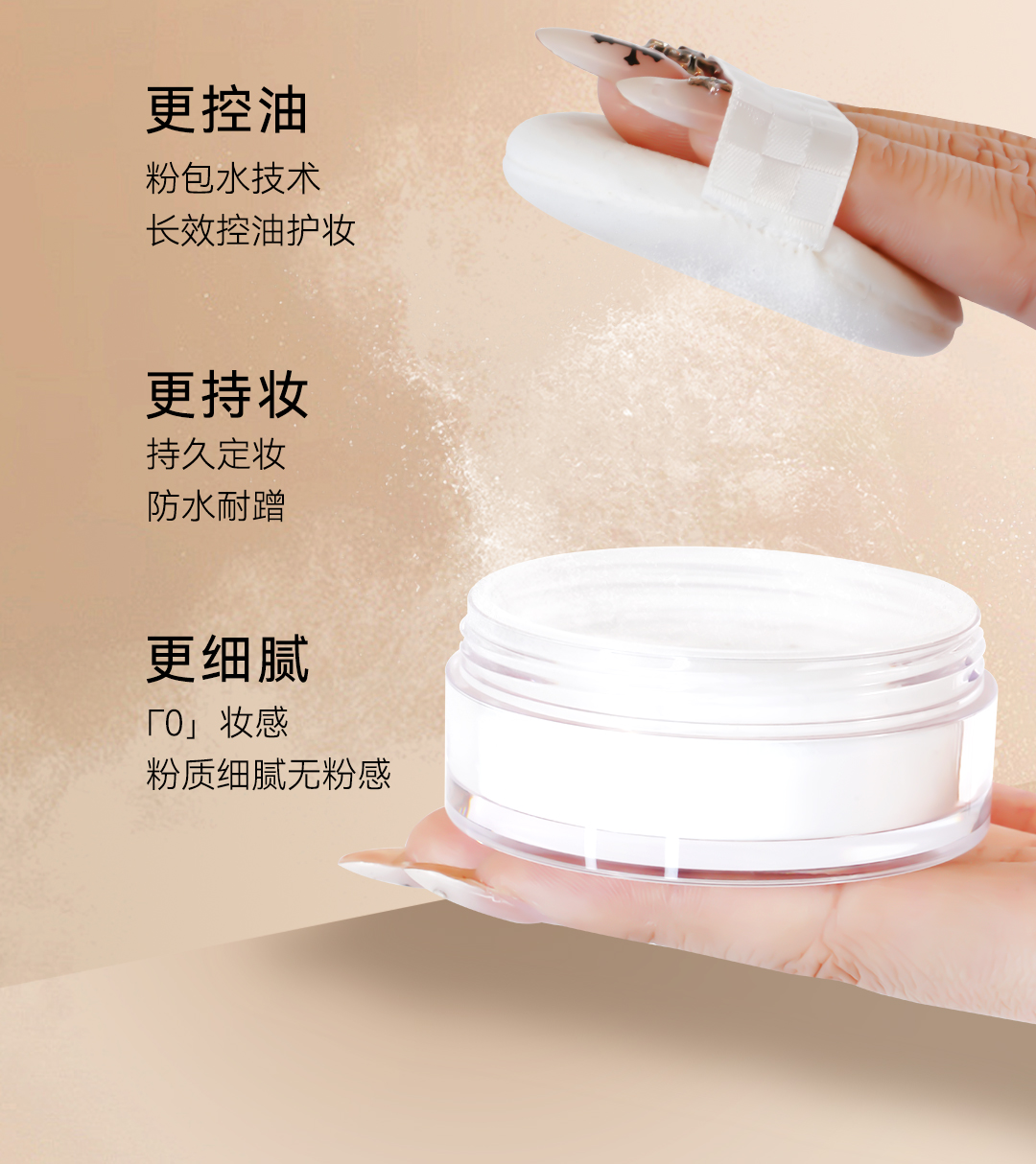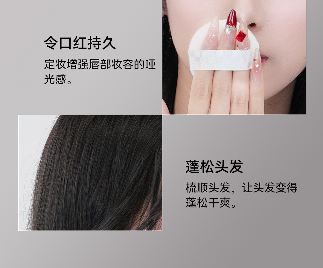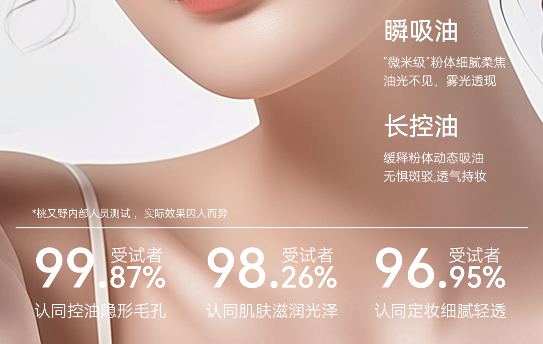 ✅采用微米级粉体研磨技术,粉质如烟雾般细腻轻盈,上脸后快速吸附多余油脂,同时疏水配方能有效抵御汗水,延长持妆时间。