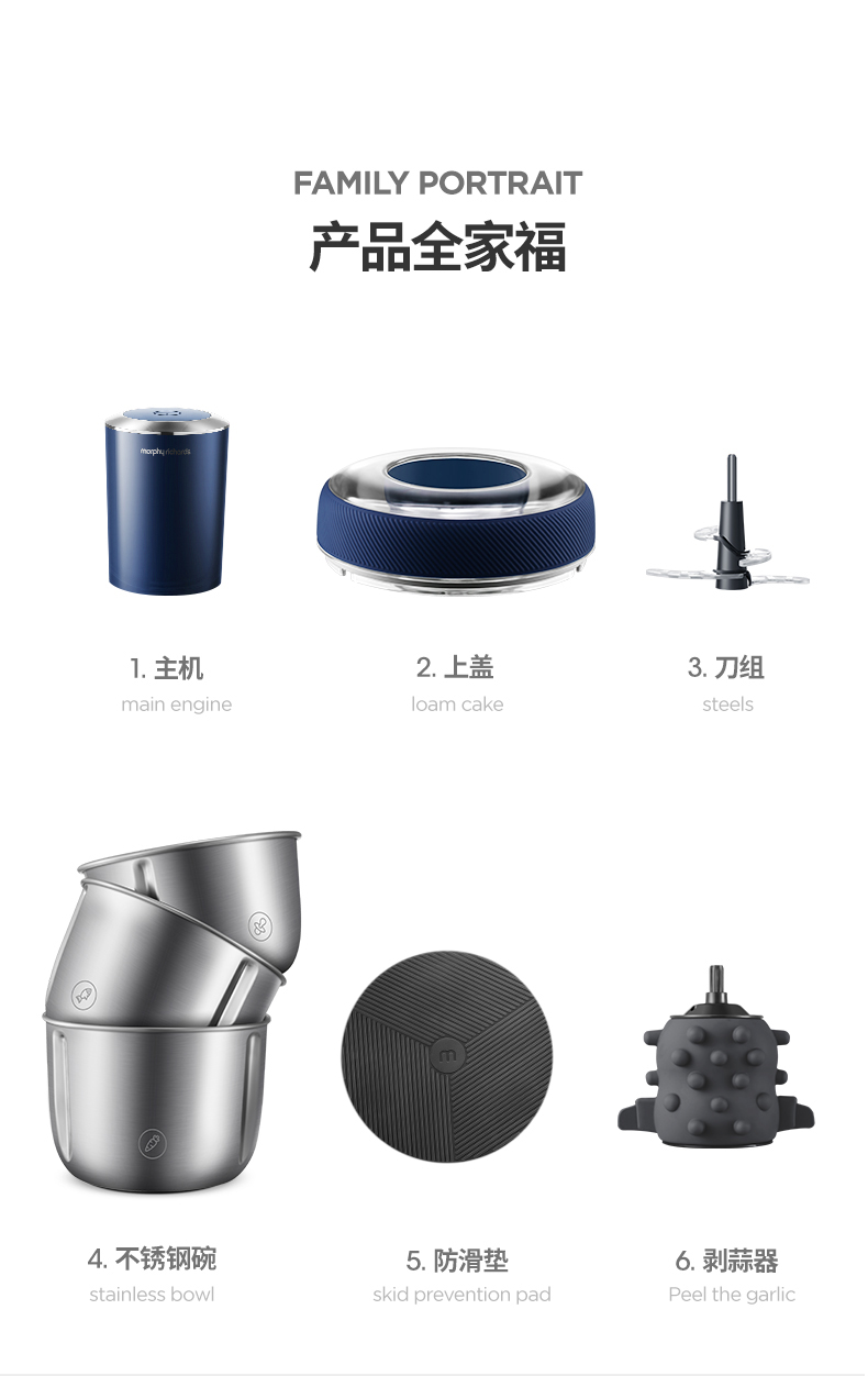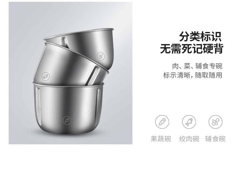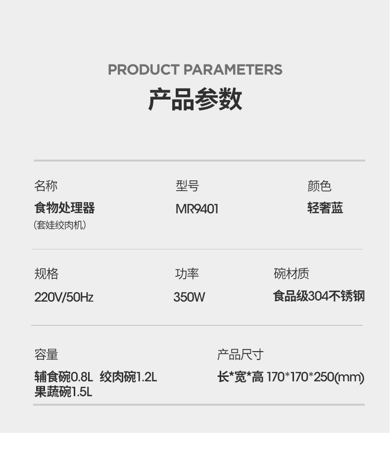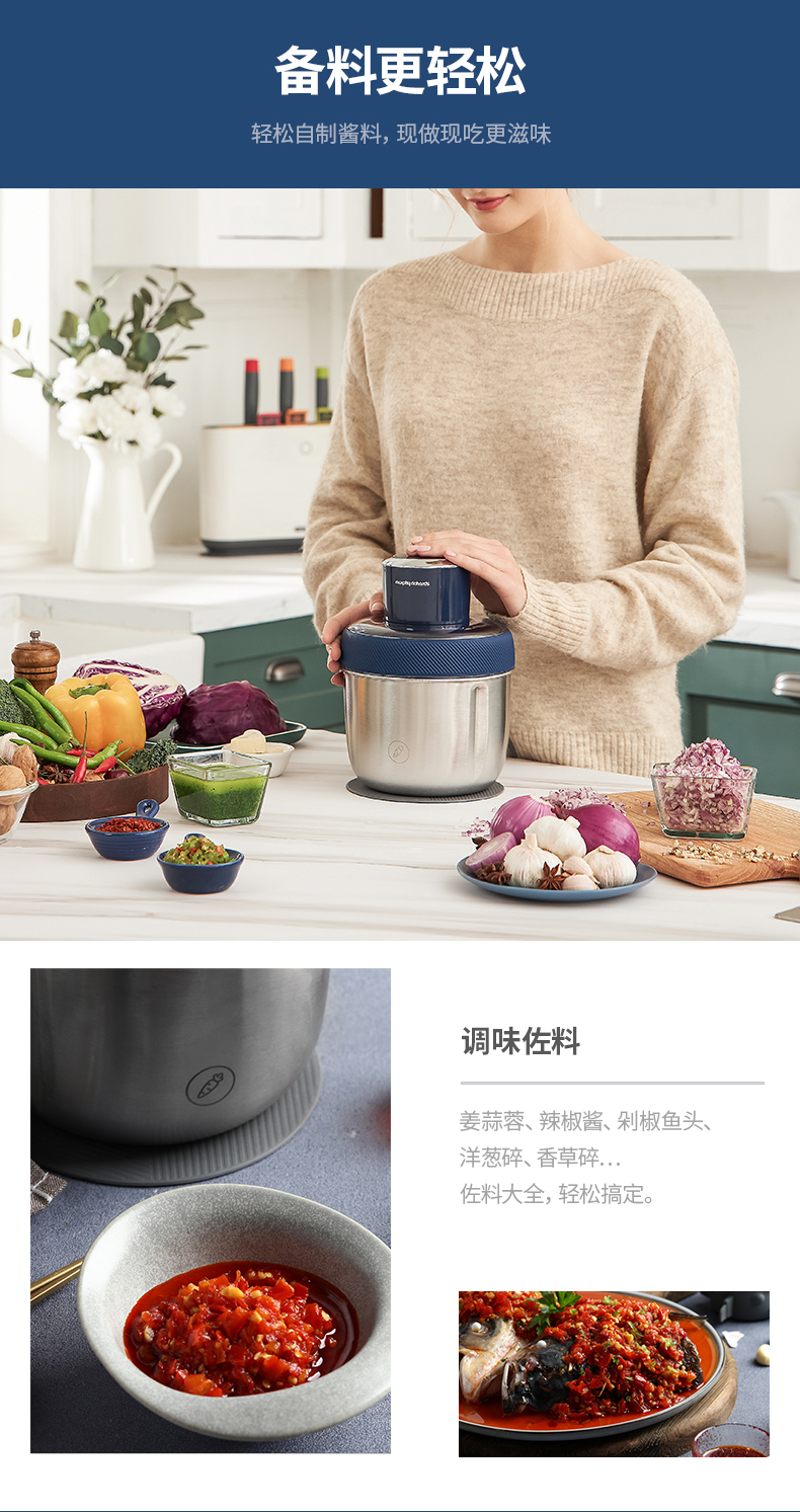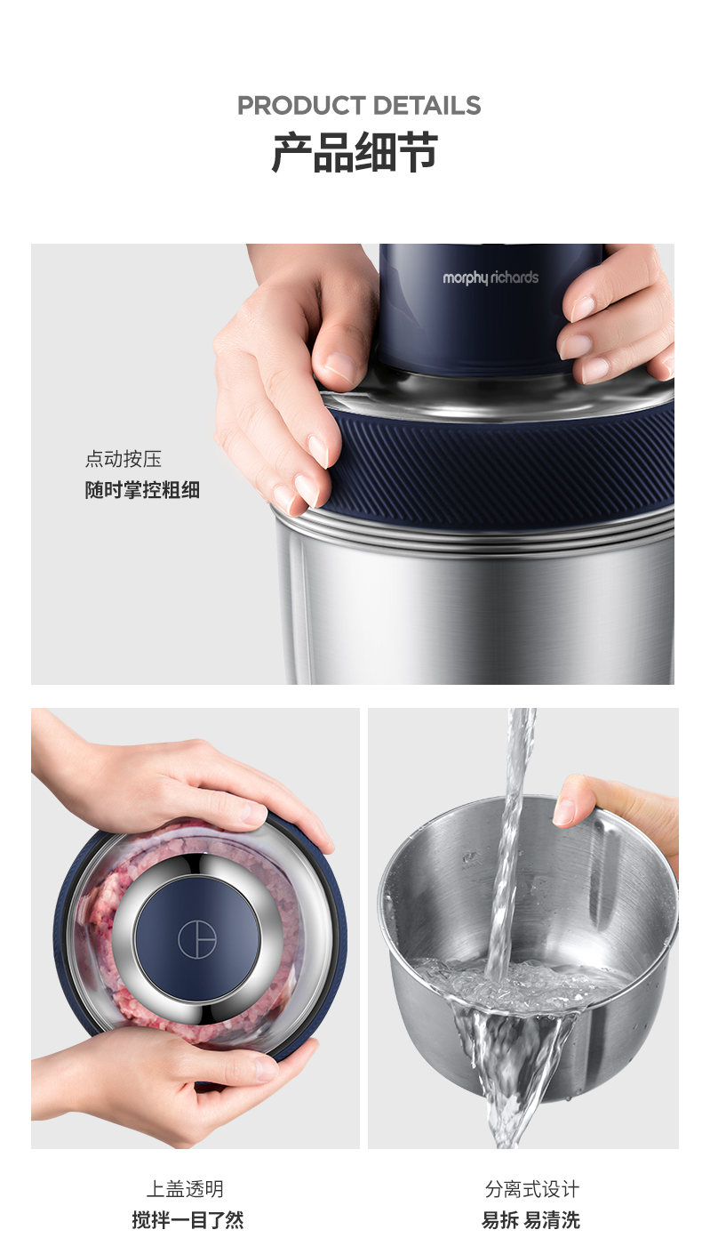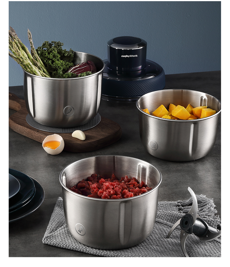 摩飞电器(Morphyrichards) 新款套娃绞肉机不锈钢搅拌碗碎肉碎菜剥蒜器婴儿辅食 食物处理器MR9401A