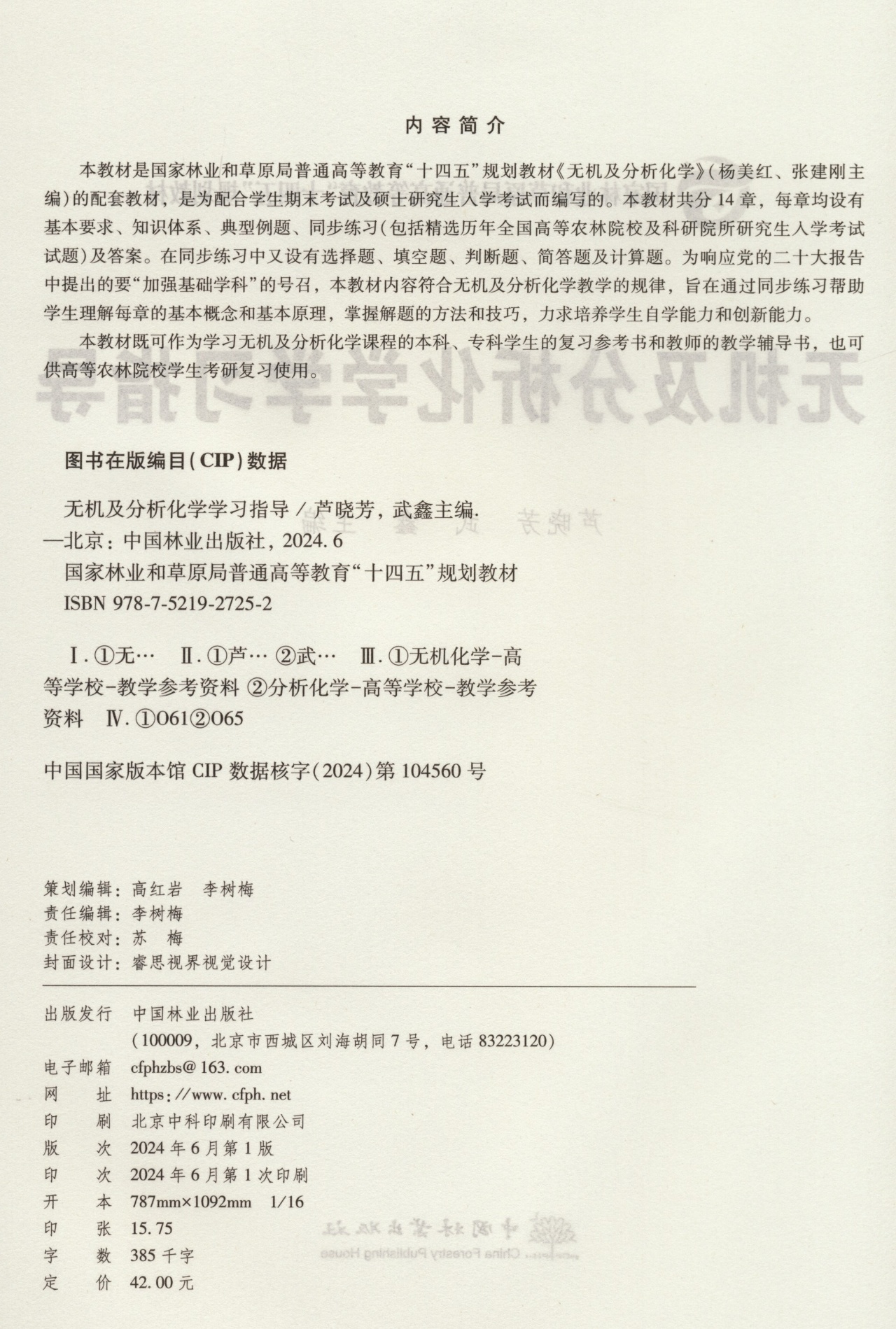 无机及分析化学学习指导(国家林业和草原局普通高等教育十四五规划教材) &2725