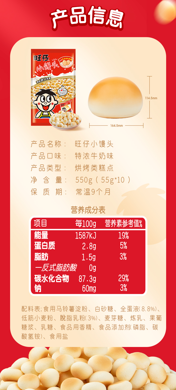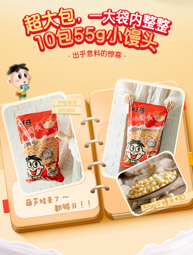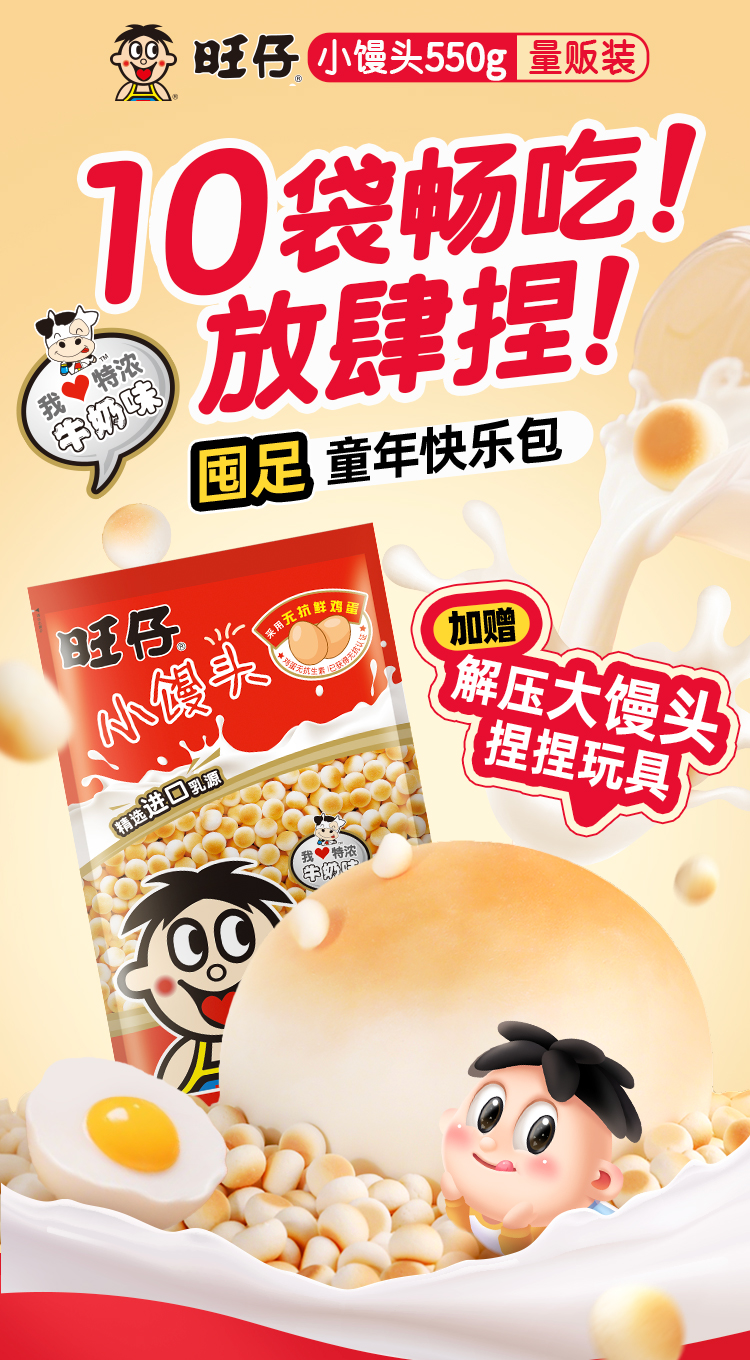 旺旺 加赠解压大馒头捏捏玩具 旺仔小馒头经典原味550g