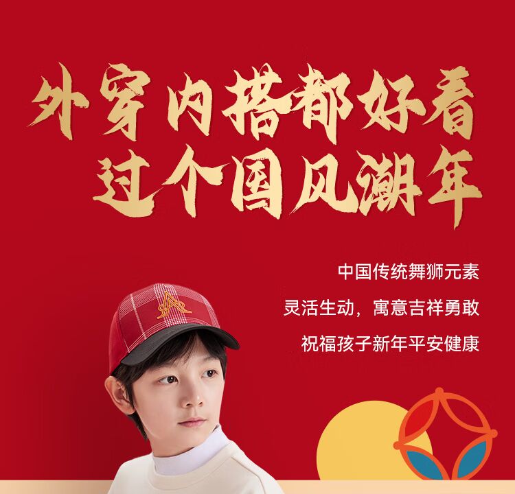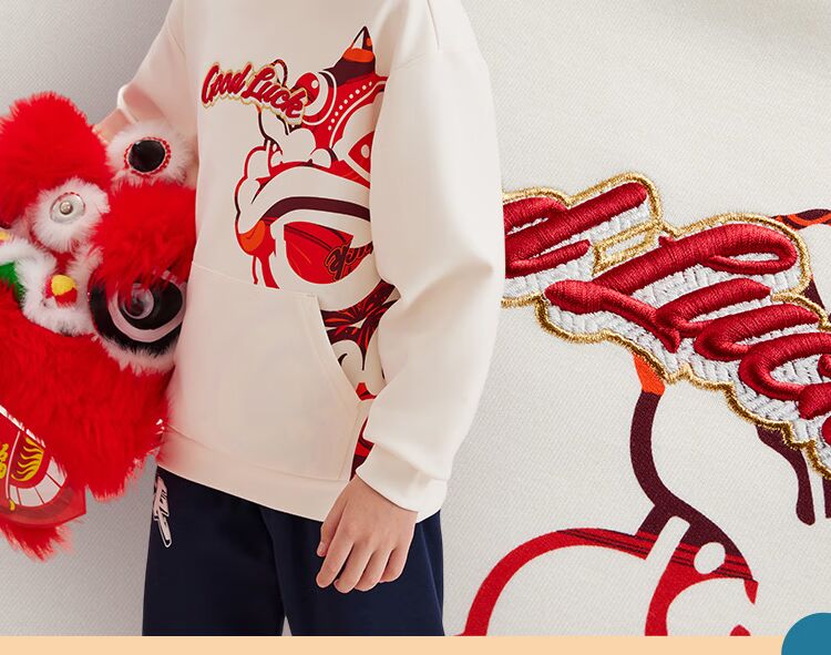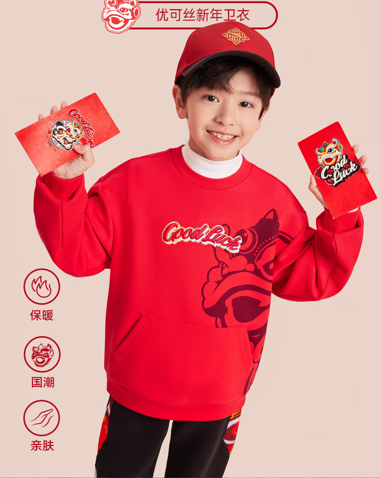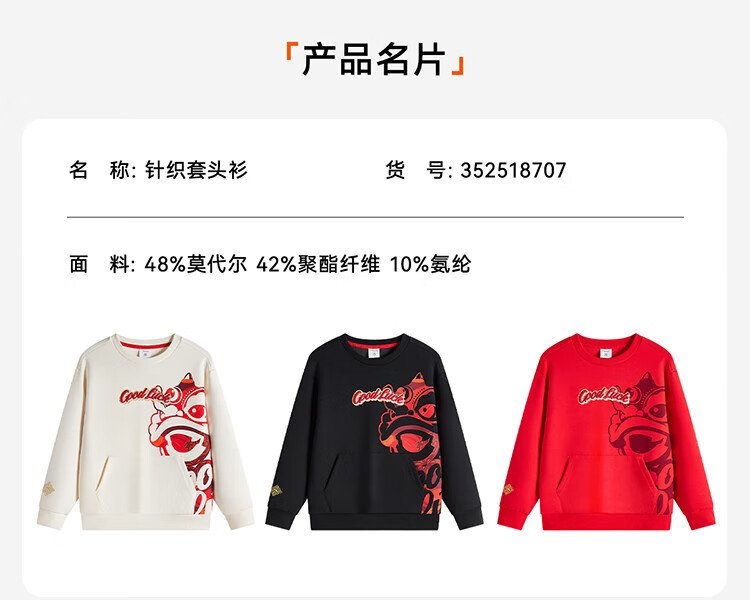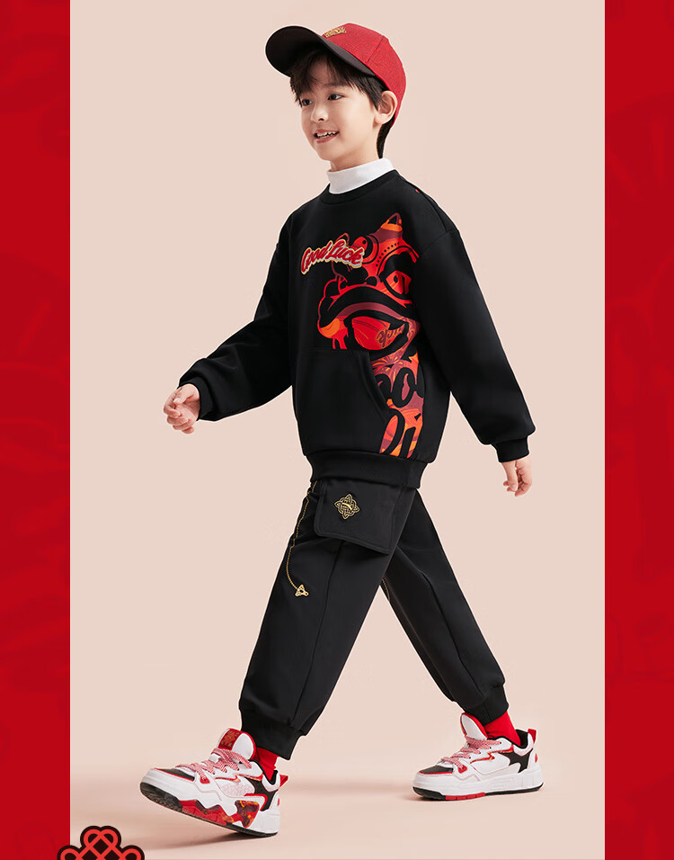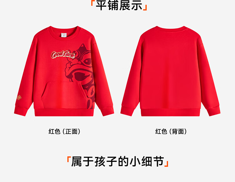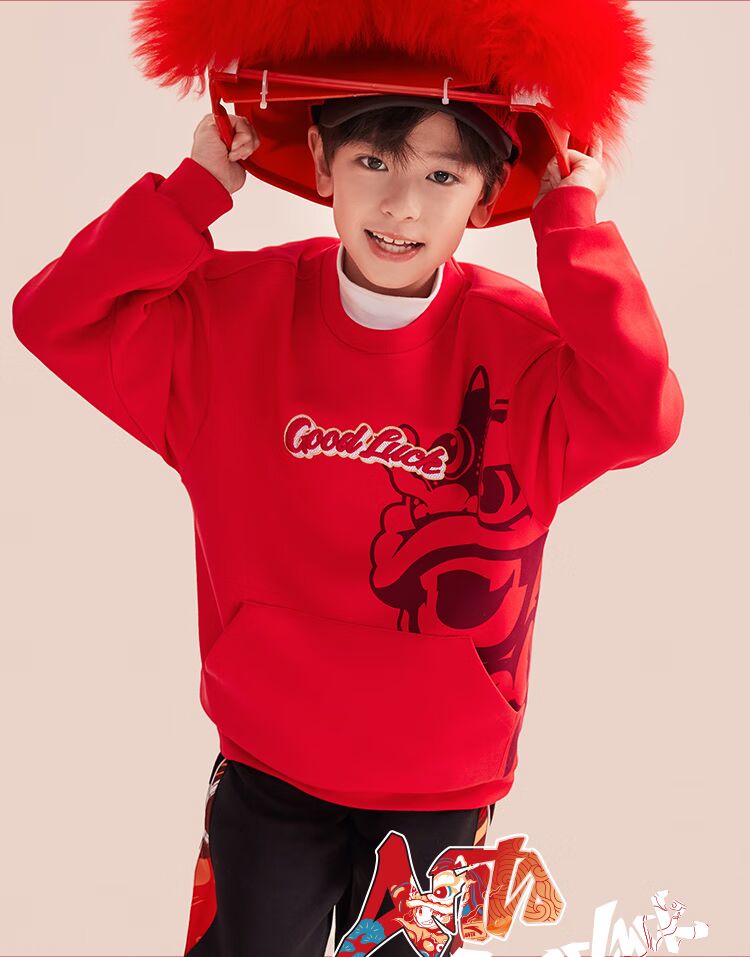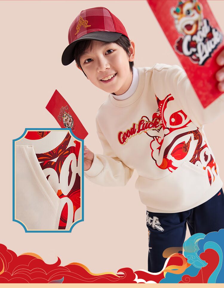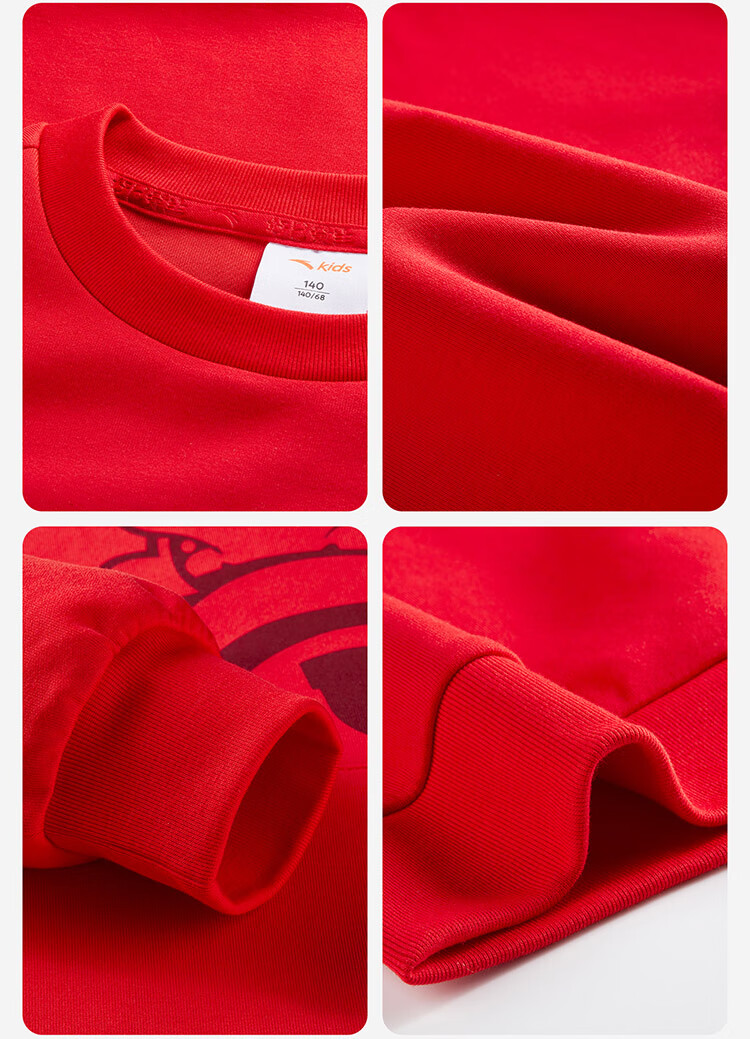 安踏儿童卫衣男童新年衣服2025春新年大童红色拜年服352518707