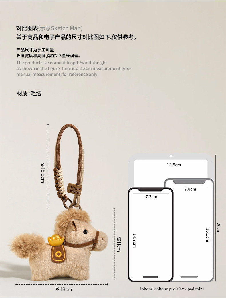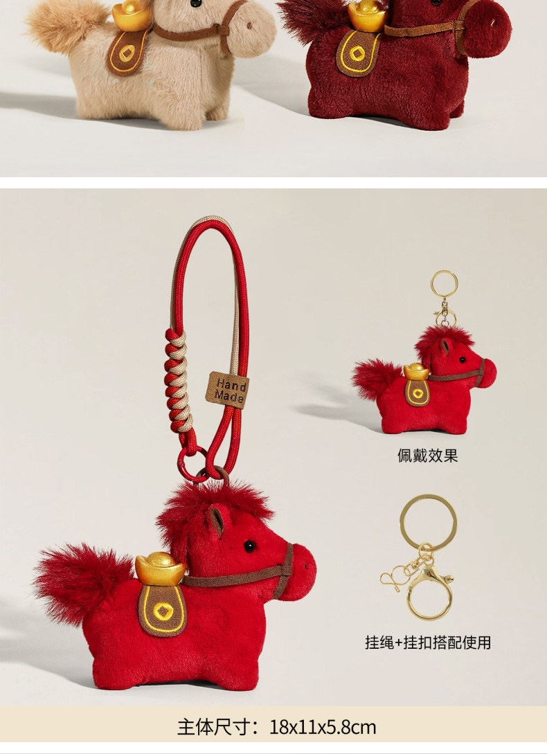 【马年吉祥物毛绒小马公仔】 马上有钱挂件钥匙扣 可爱新年礼物生肖小马