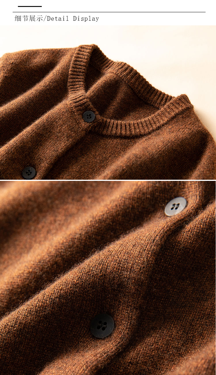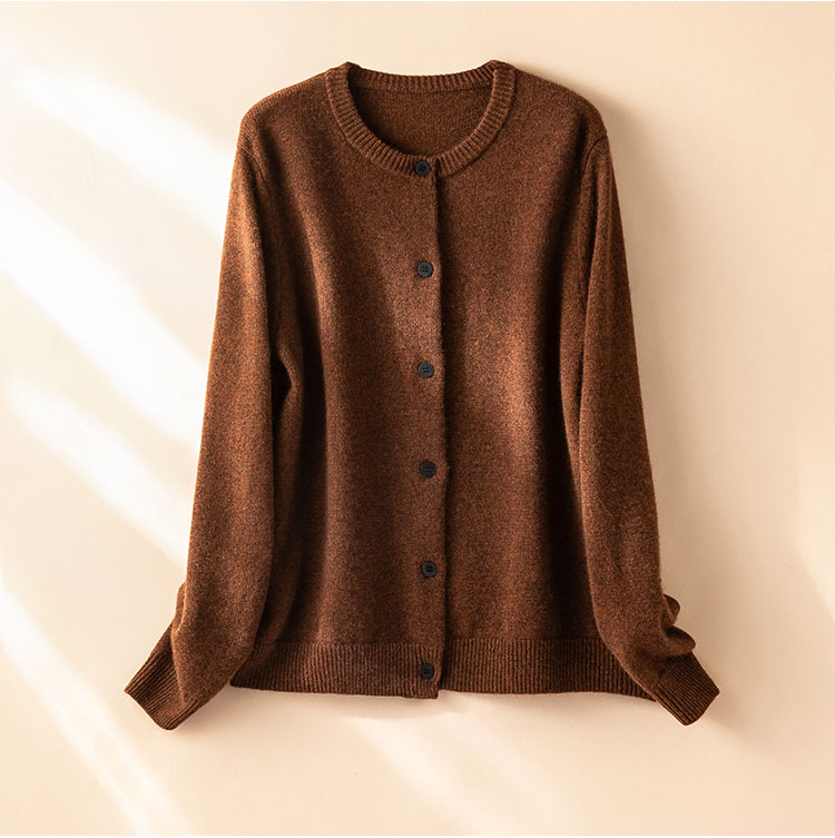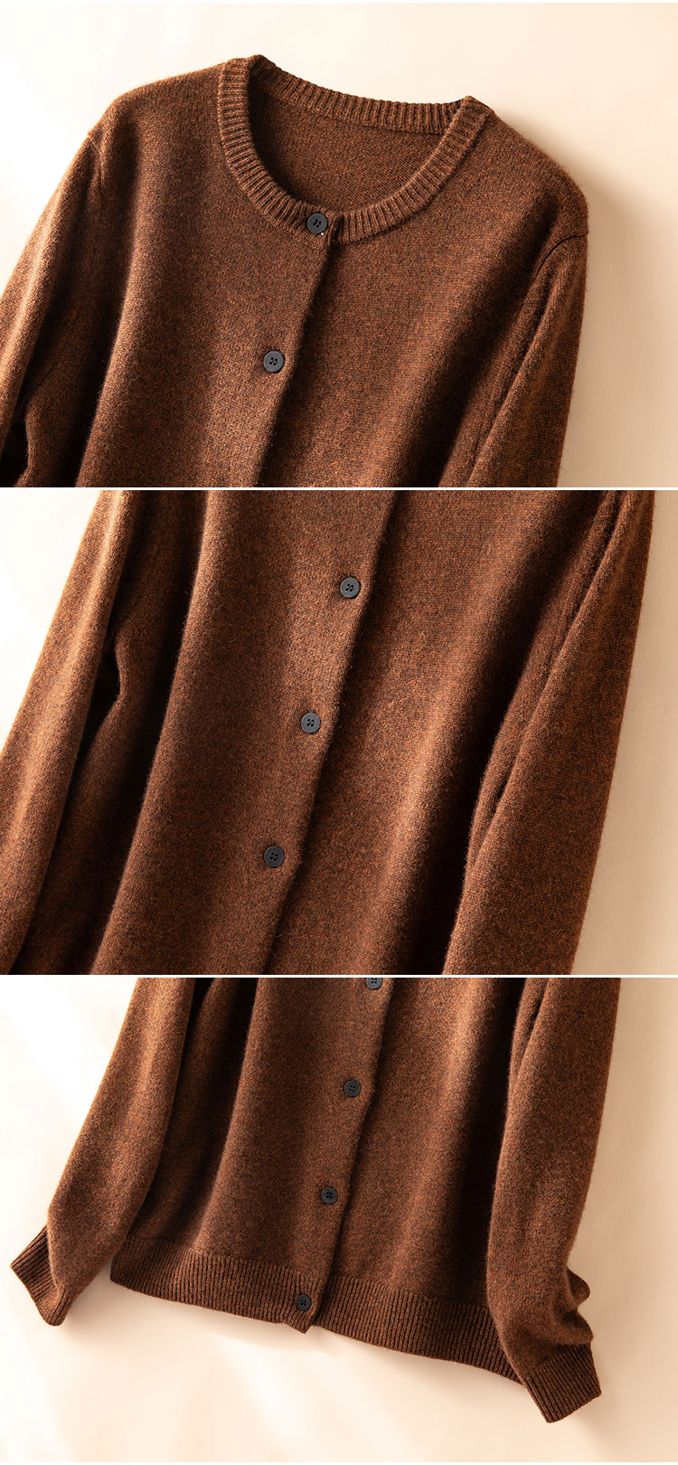 恰到好处~康赛妮100%山羊绒开衫女圆领毛衣长袖针织衫外套