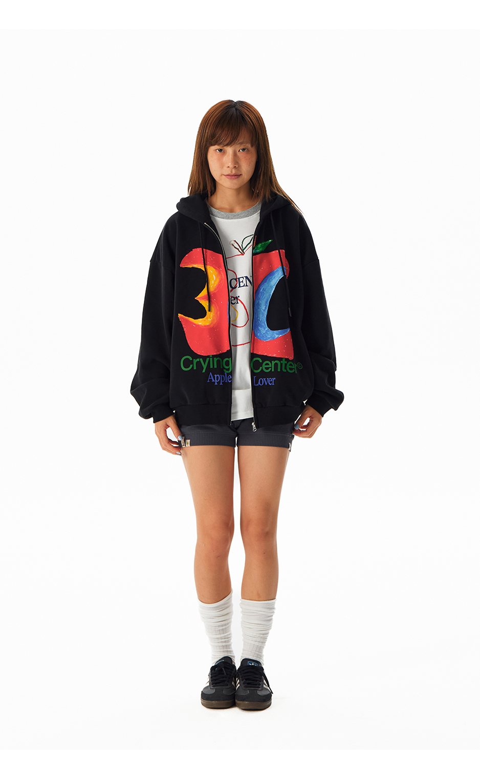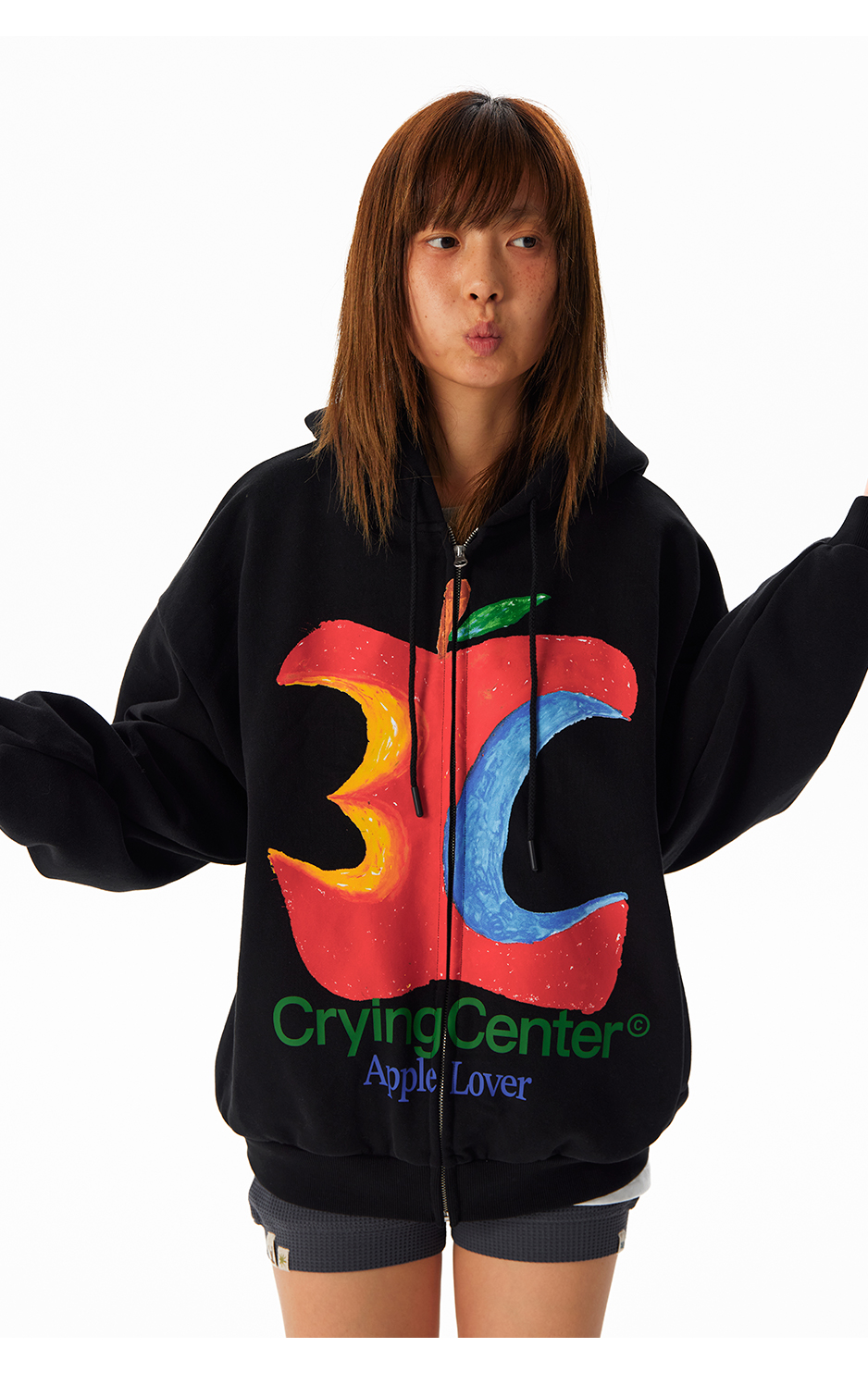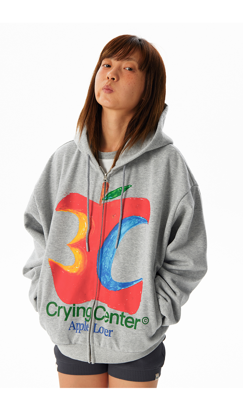 CryingCenter 摇粒绒底3c苹果拉链女款短卫衣 男女同款 哭喊中心