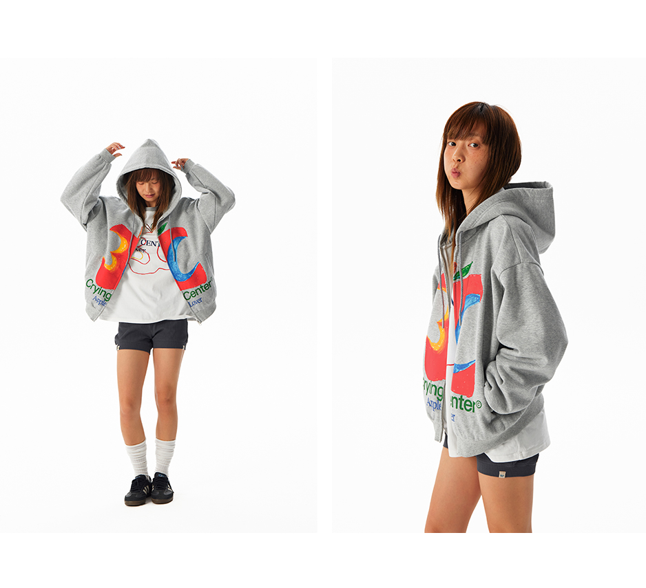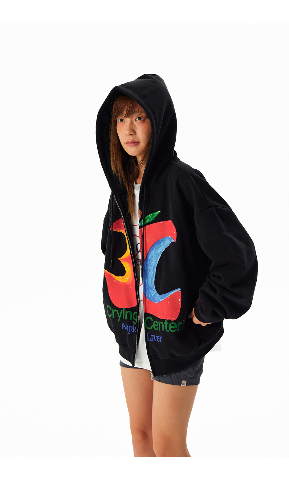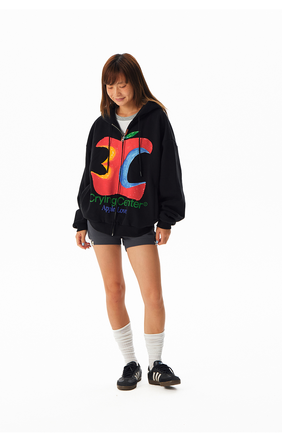 CryingCenter 摇粒绒底3c苹果拉链女款短卫衣 男女同款 哭喊中心