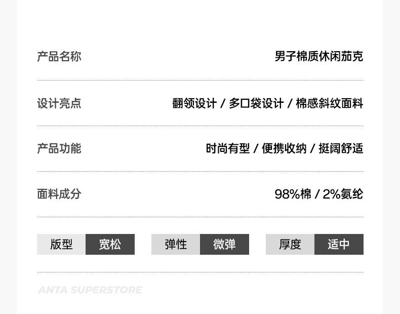 超级安踏夹克男秋季新款棉质复古休闲外套长袖衬衫上衣152538608U