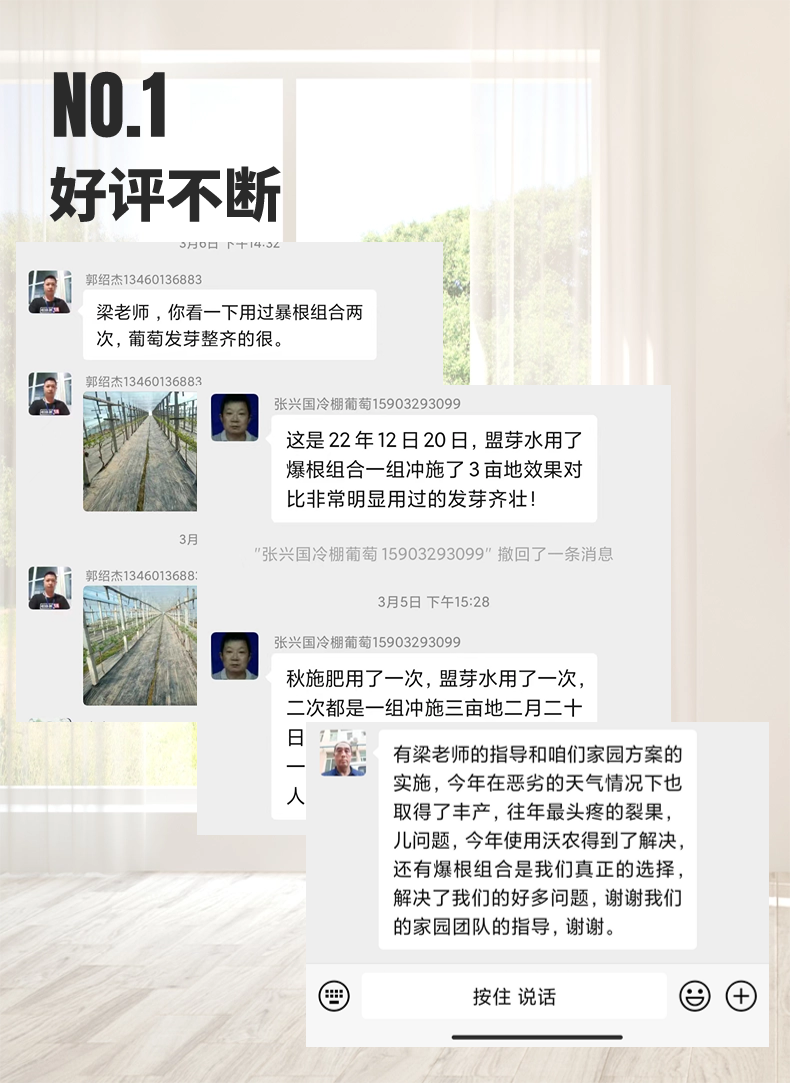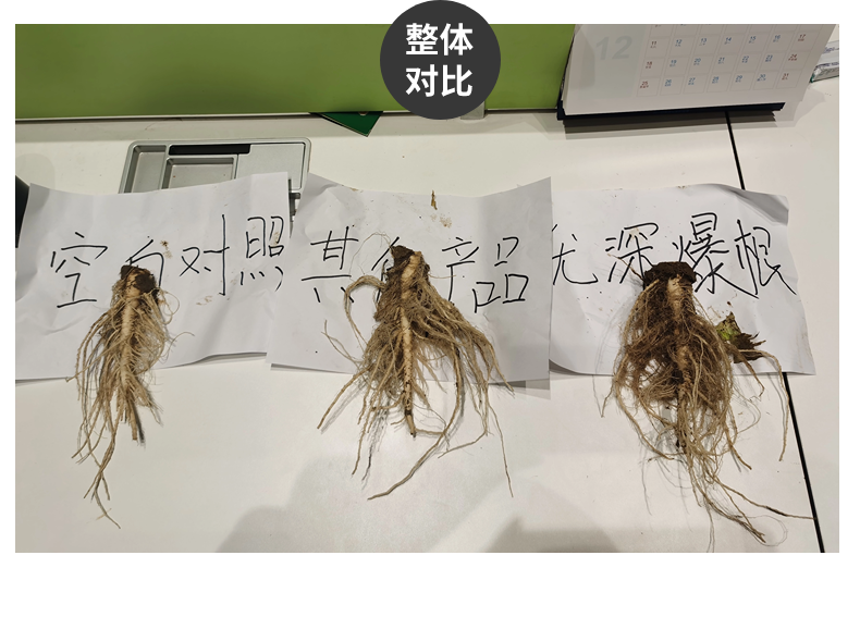 3.方案作用:促发根系,改善土壤,促根养树提长势。本方案中有枯草芽孢杆菌,哈茨木霉,可以以菌治菌,有效预防病害;改善土壤结构,增加土壤有机质;促进作物根系生长,黄腐酸钾可以协同营养,加快细胞分裂,快速促进根系生长。