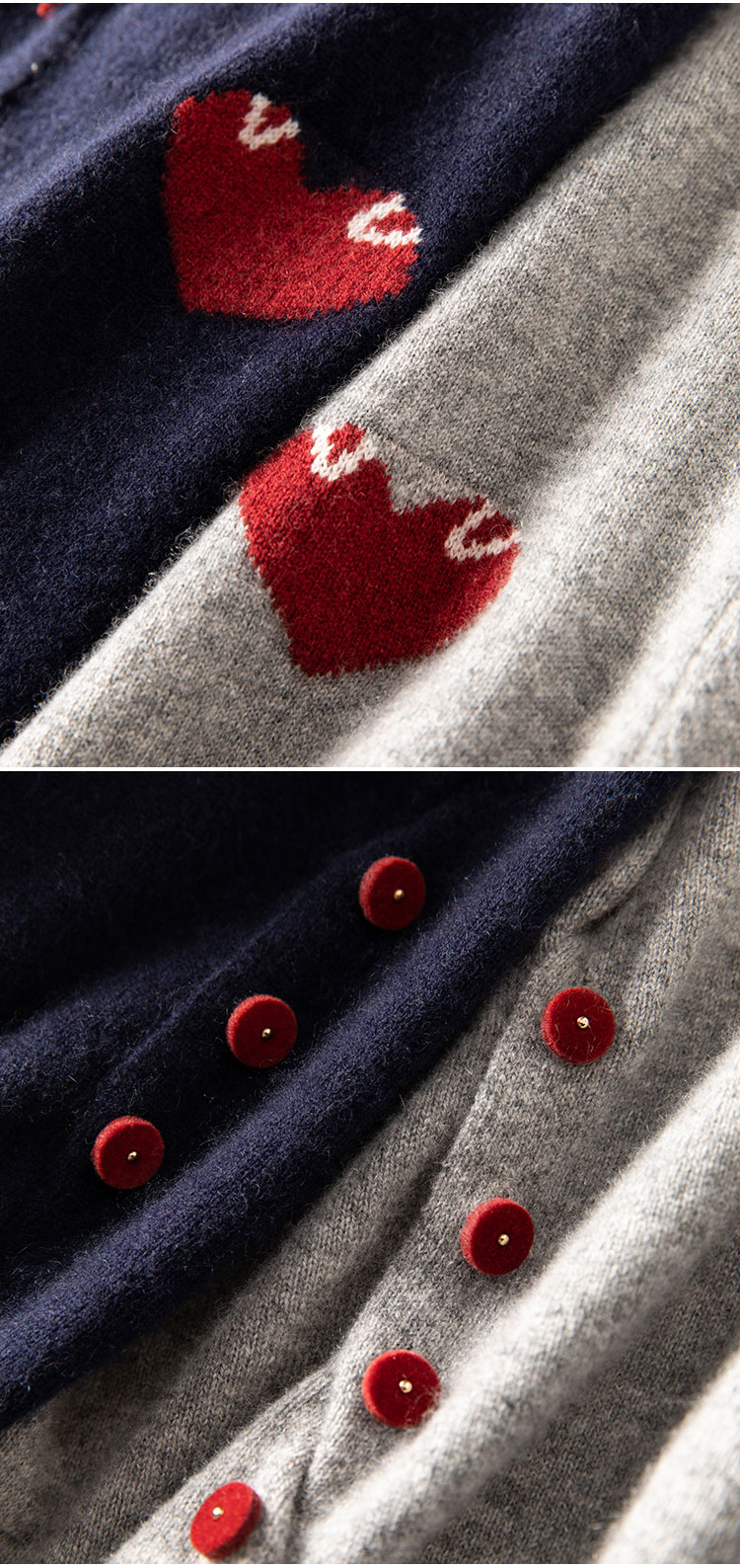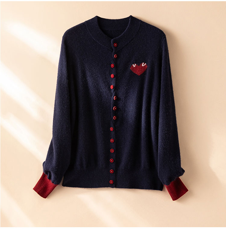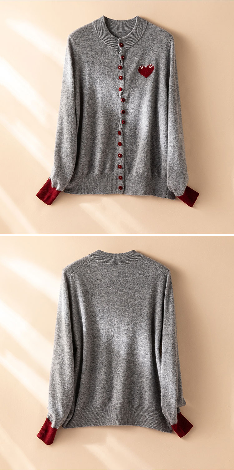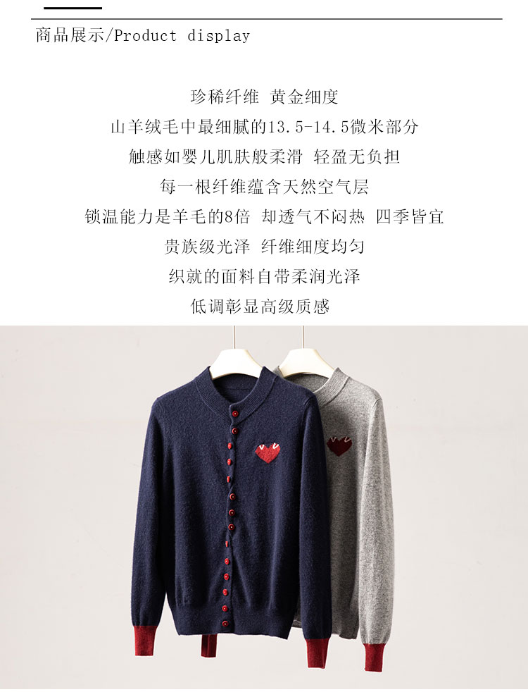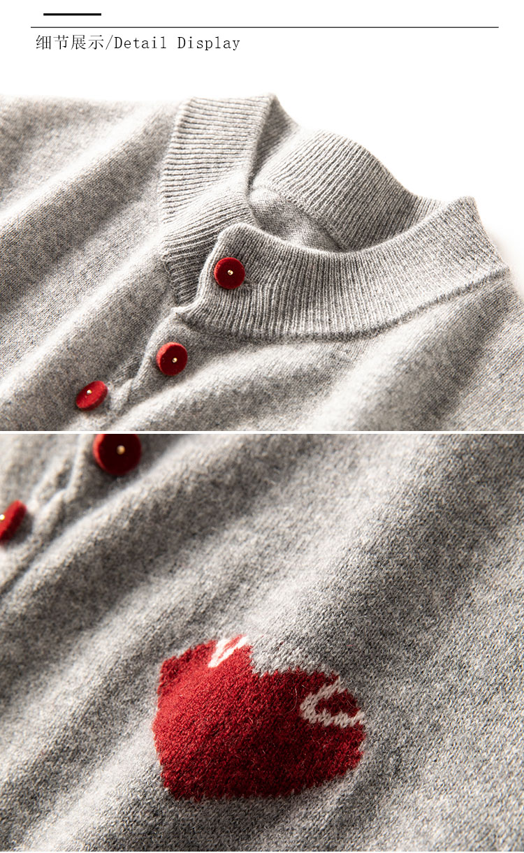 奔赴心动~圆领爱心提花baby小山羊绒衫女针织开衫外套