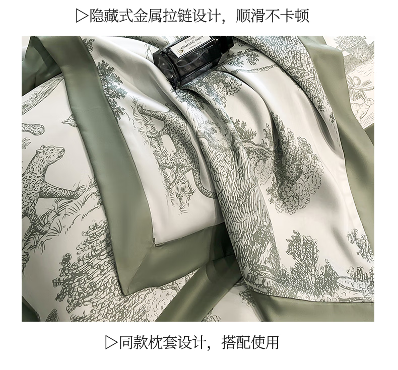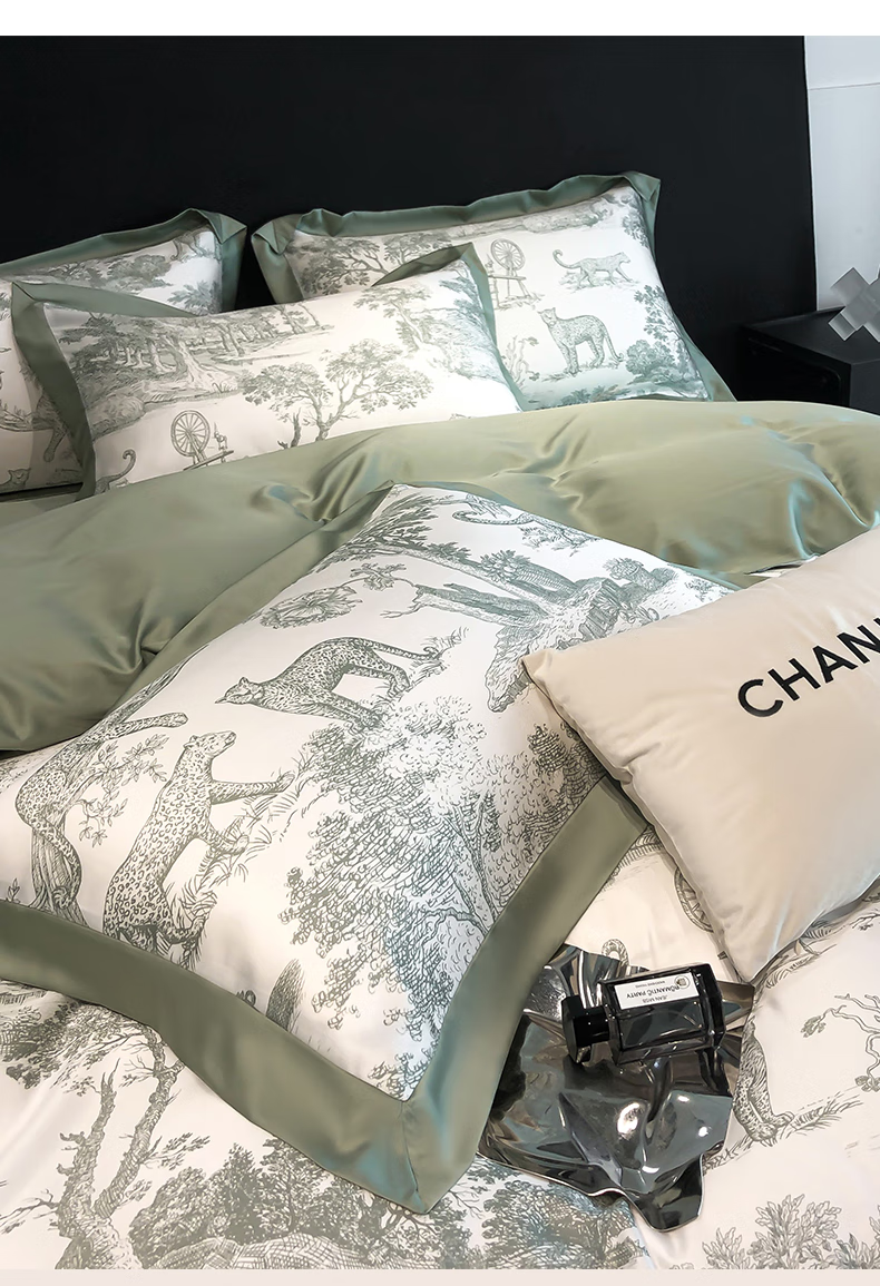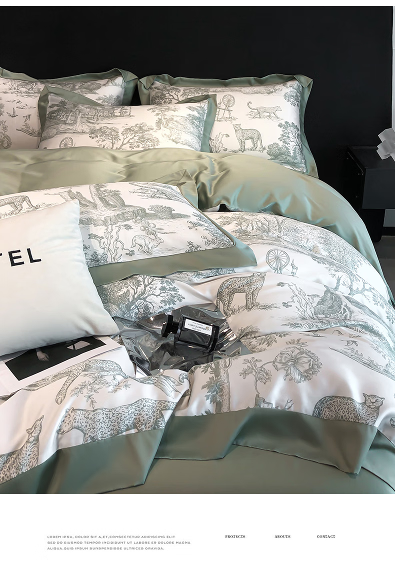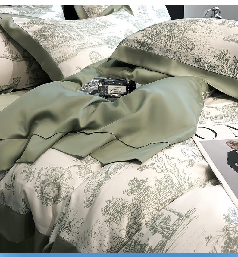 百丽安娜天丝数码印花四件套庄园-绿 200cm*230cm 轻奢美式风 适用于1.5M-1.8M床