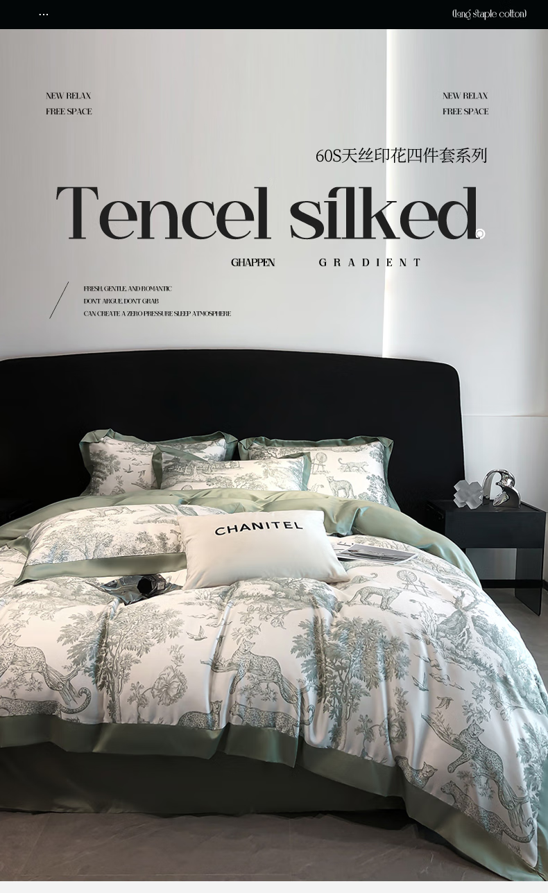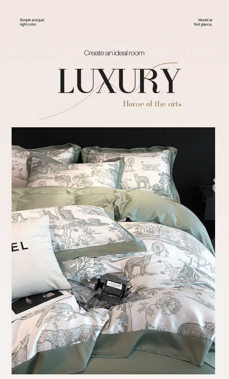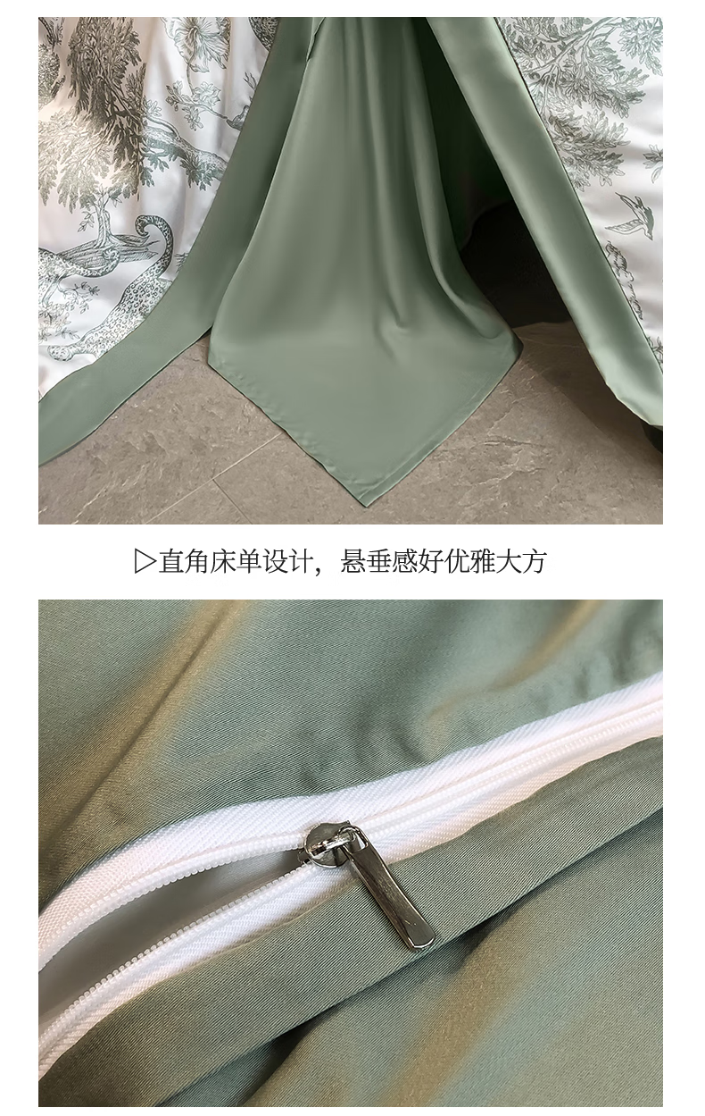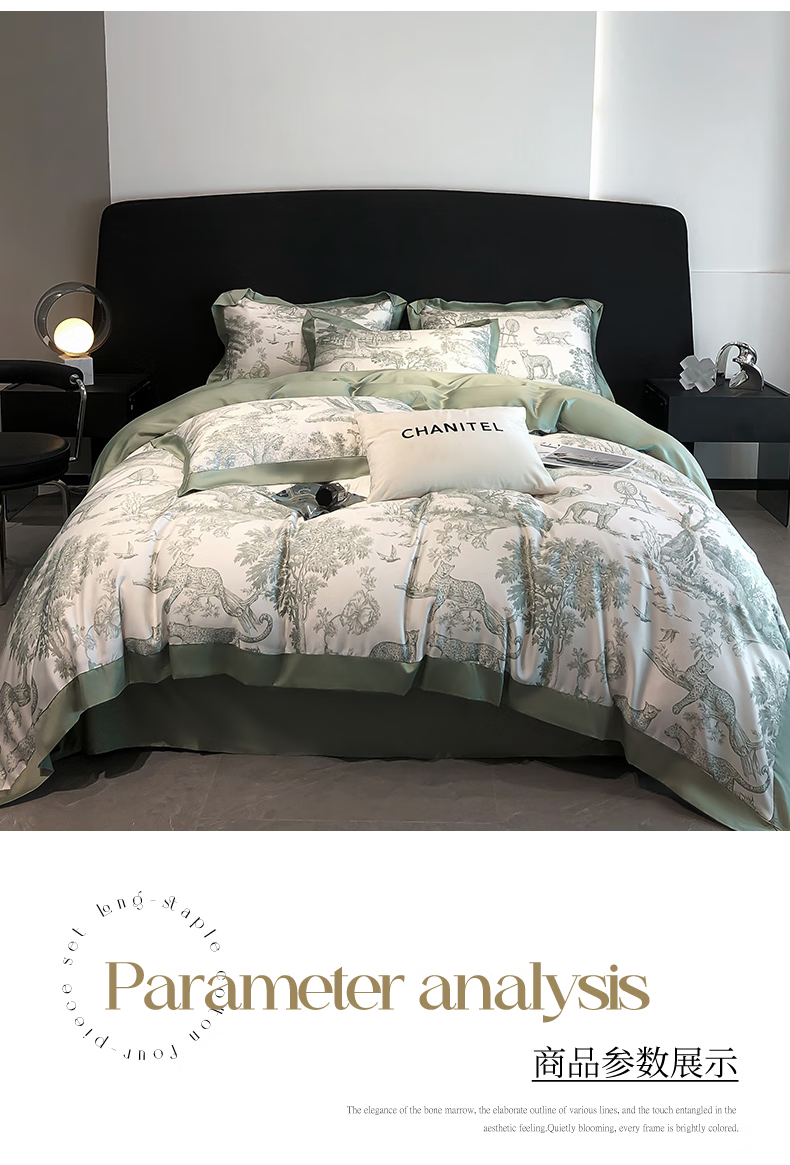 百丽安娜天丝数码印花四件套庄园-绿 200cm*230cm 轻奢美式风 适用于1.5M-1.8M床