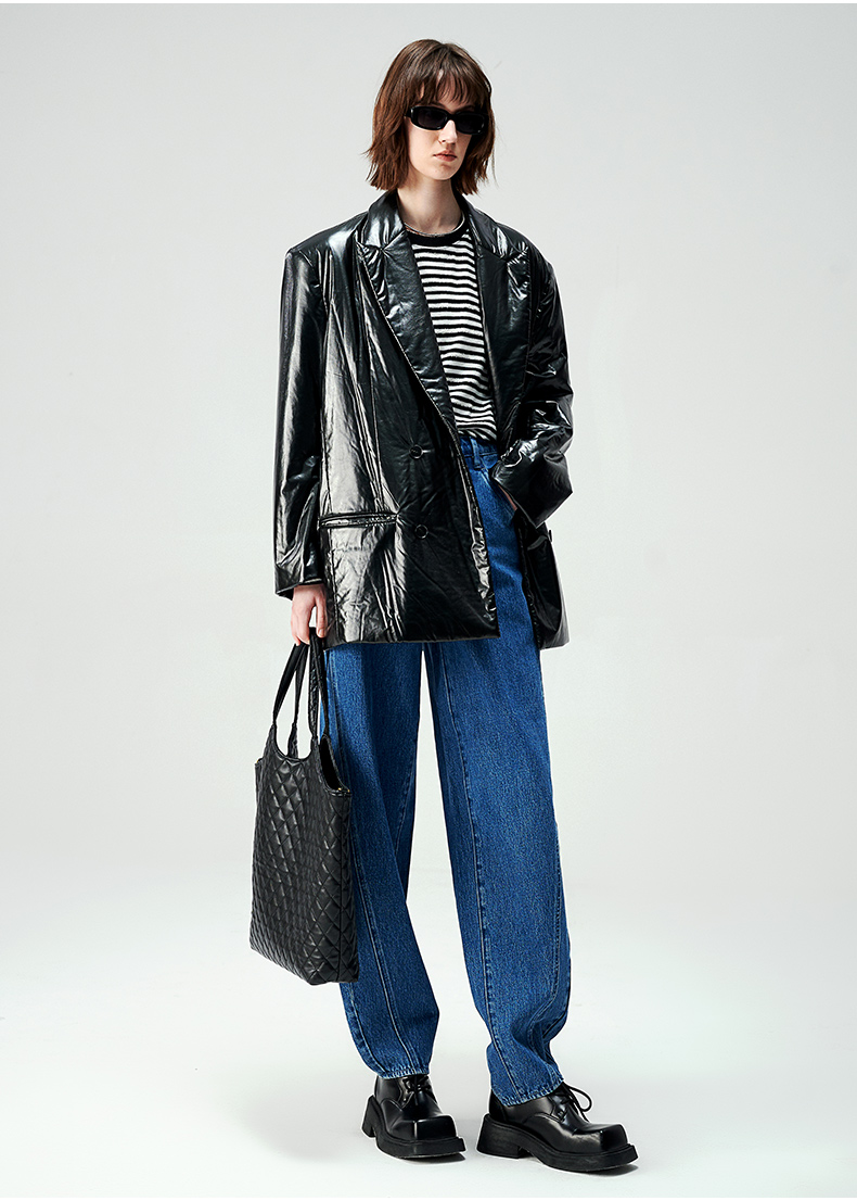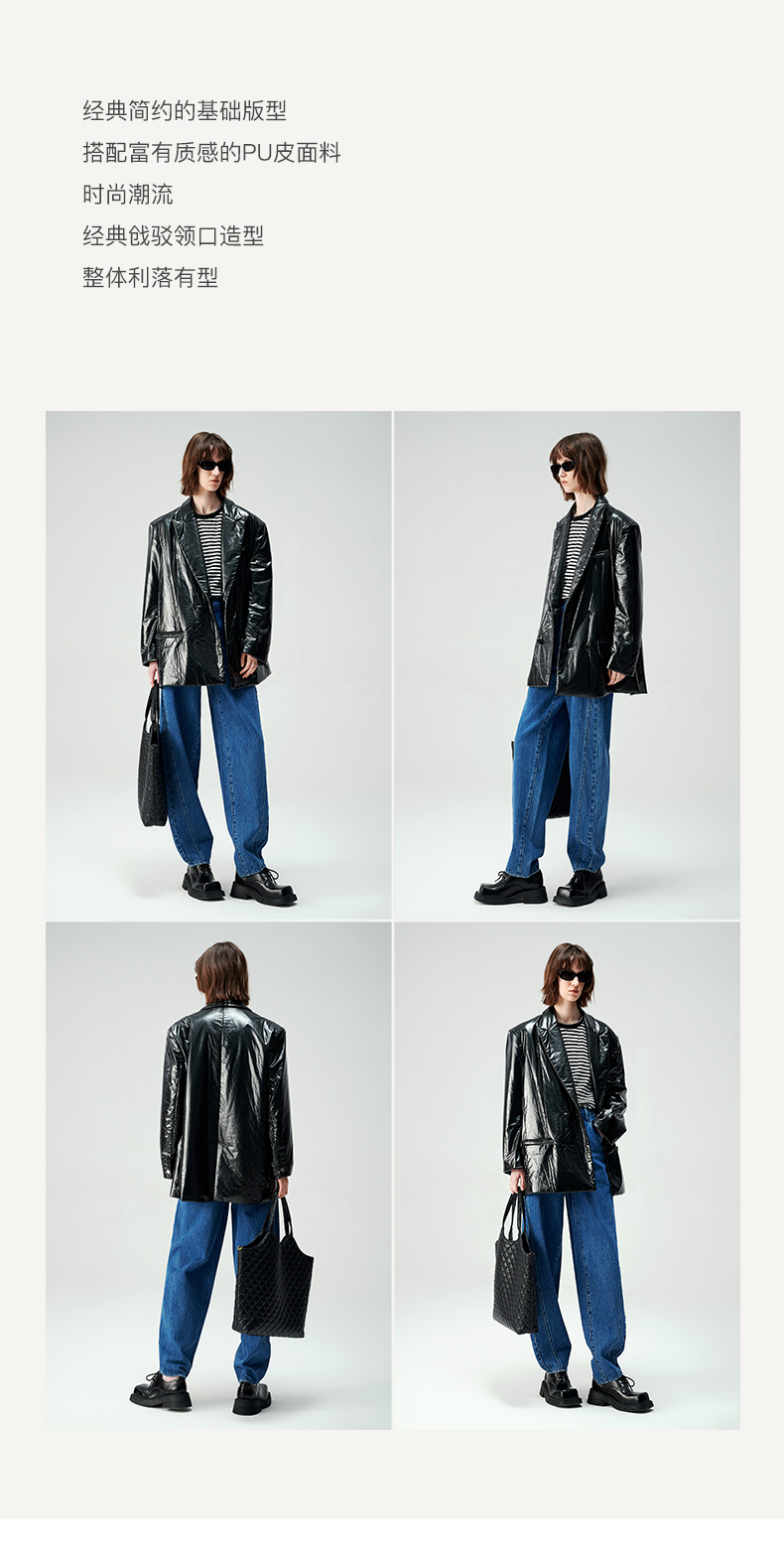 Self Who黑色pu皮衣外套女2024春季新款设计感美式复古高级感上衣
