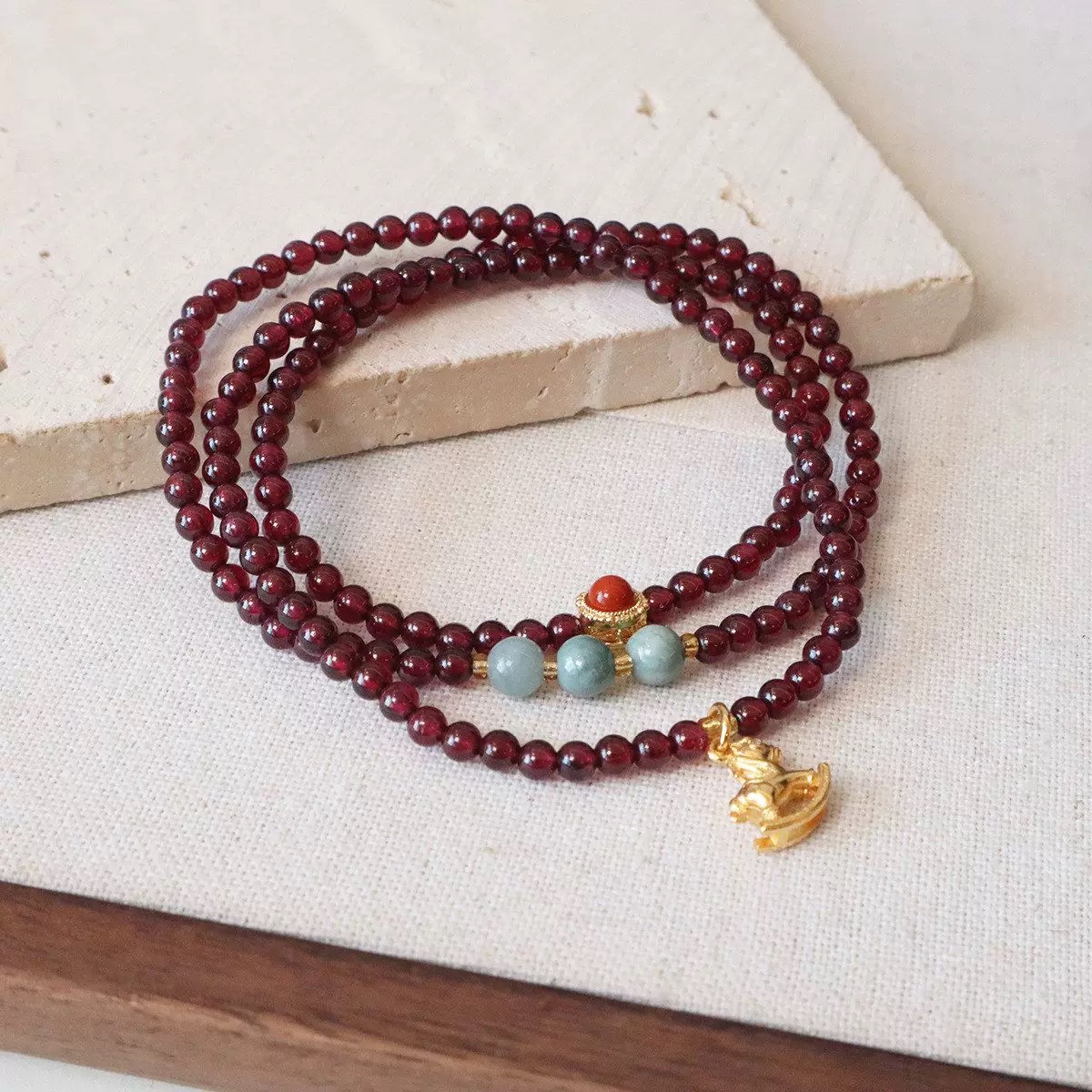 【品名】流光·三圈石榴石紫水晶葫芦手链