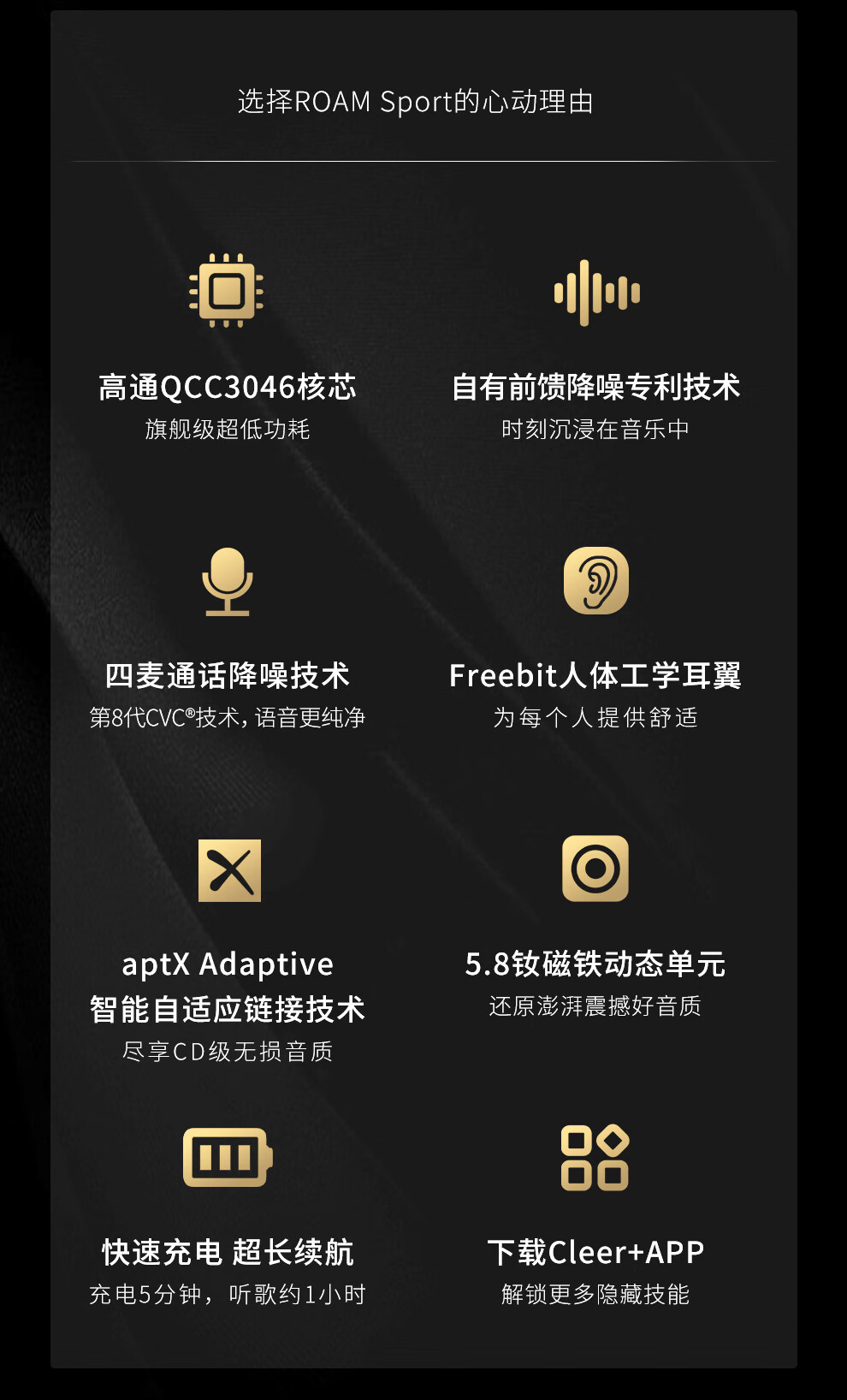 cleer ROAM Sport真无线降噪蓝牙无线耳机入耳式通话降噪运动耳麦 高音质低功耗