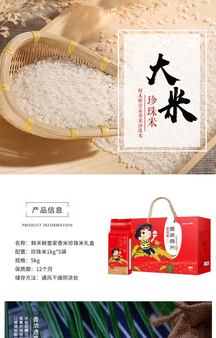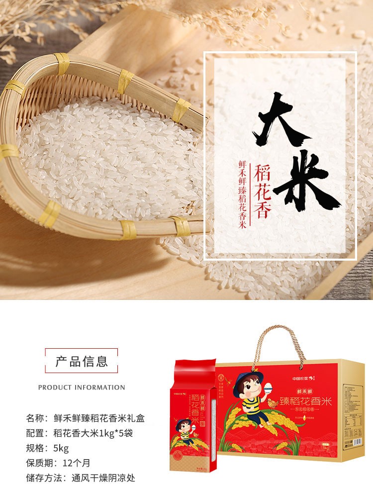 鲜禾鲜 大米礼盒系列 优质稻花香大米 珍珠米 1kg*5袋