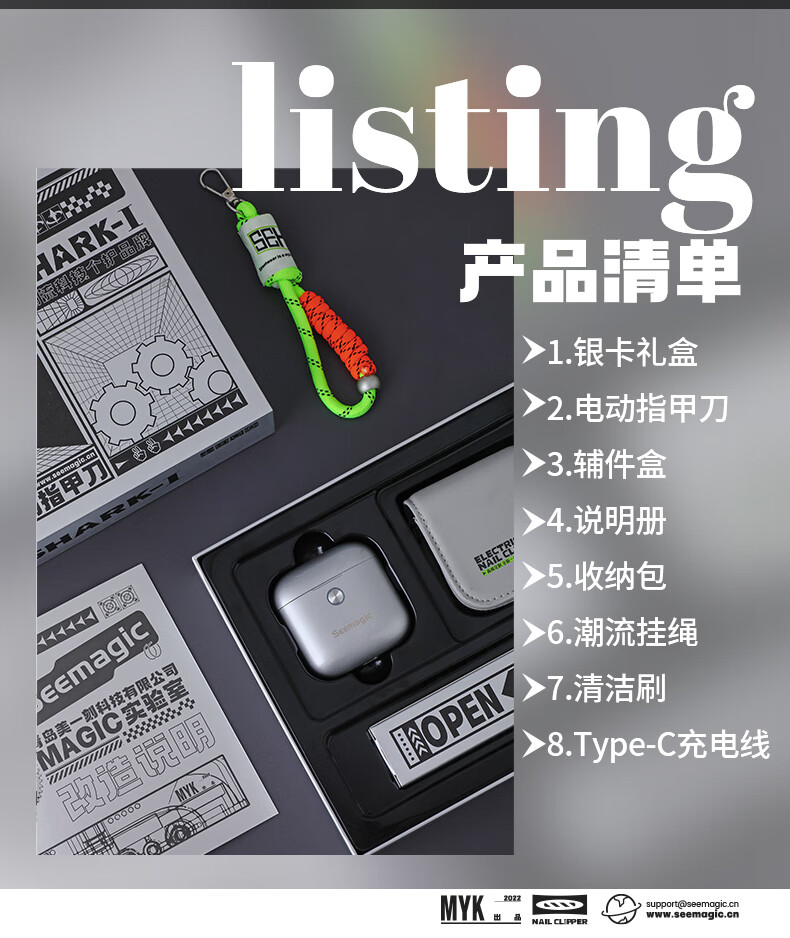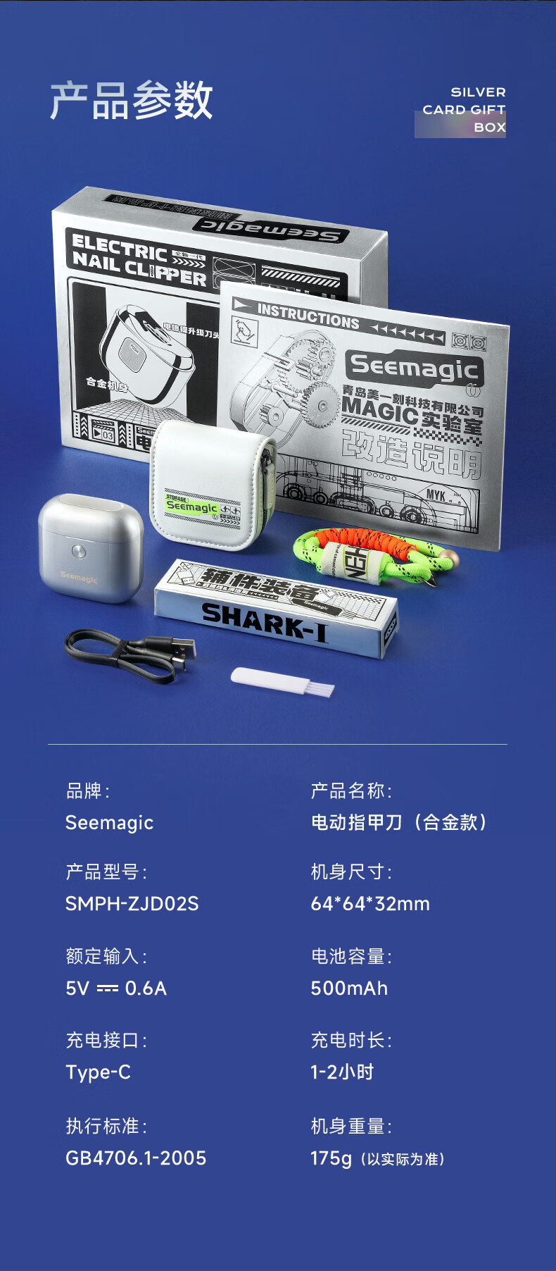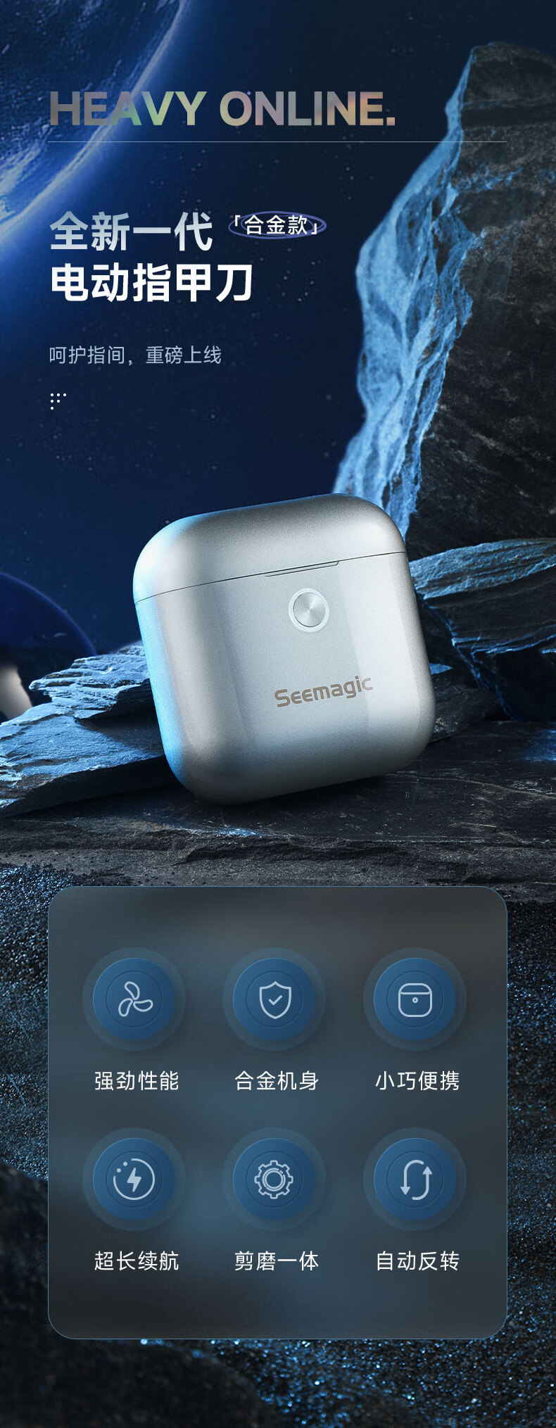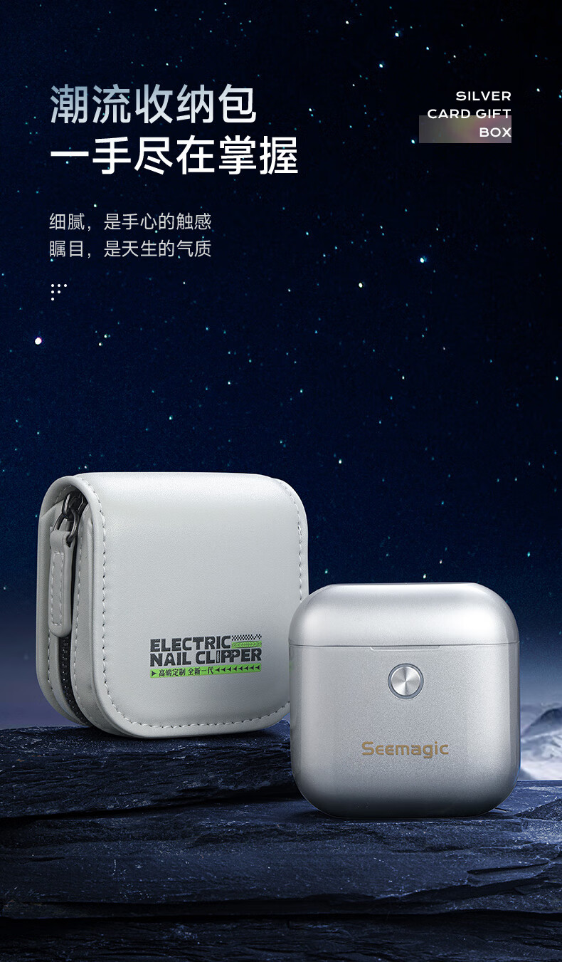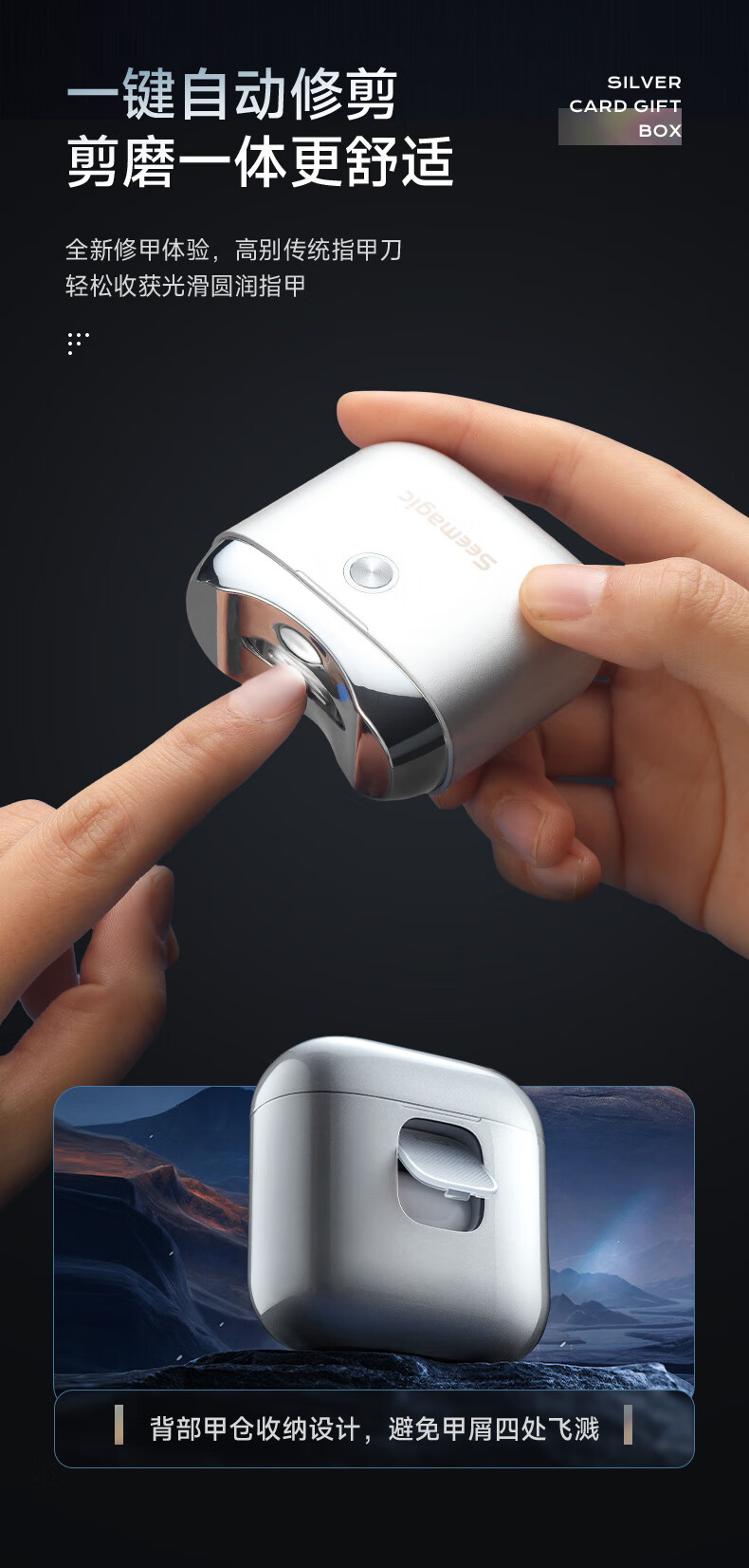 Seemagic醒刻电动指甲刀礼盒款 潮流便携 全自动指甲刀修剪磨甲器安全防护 生日礼物送男友 礼盒合金款
