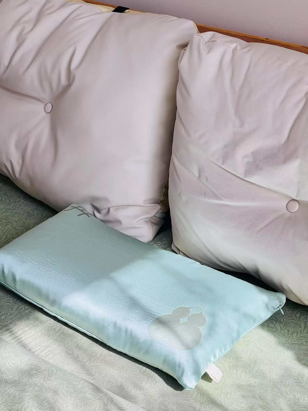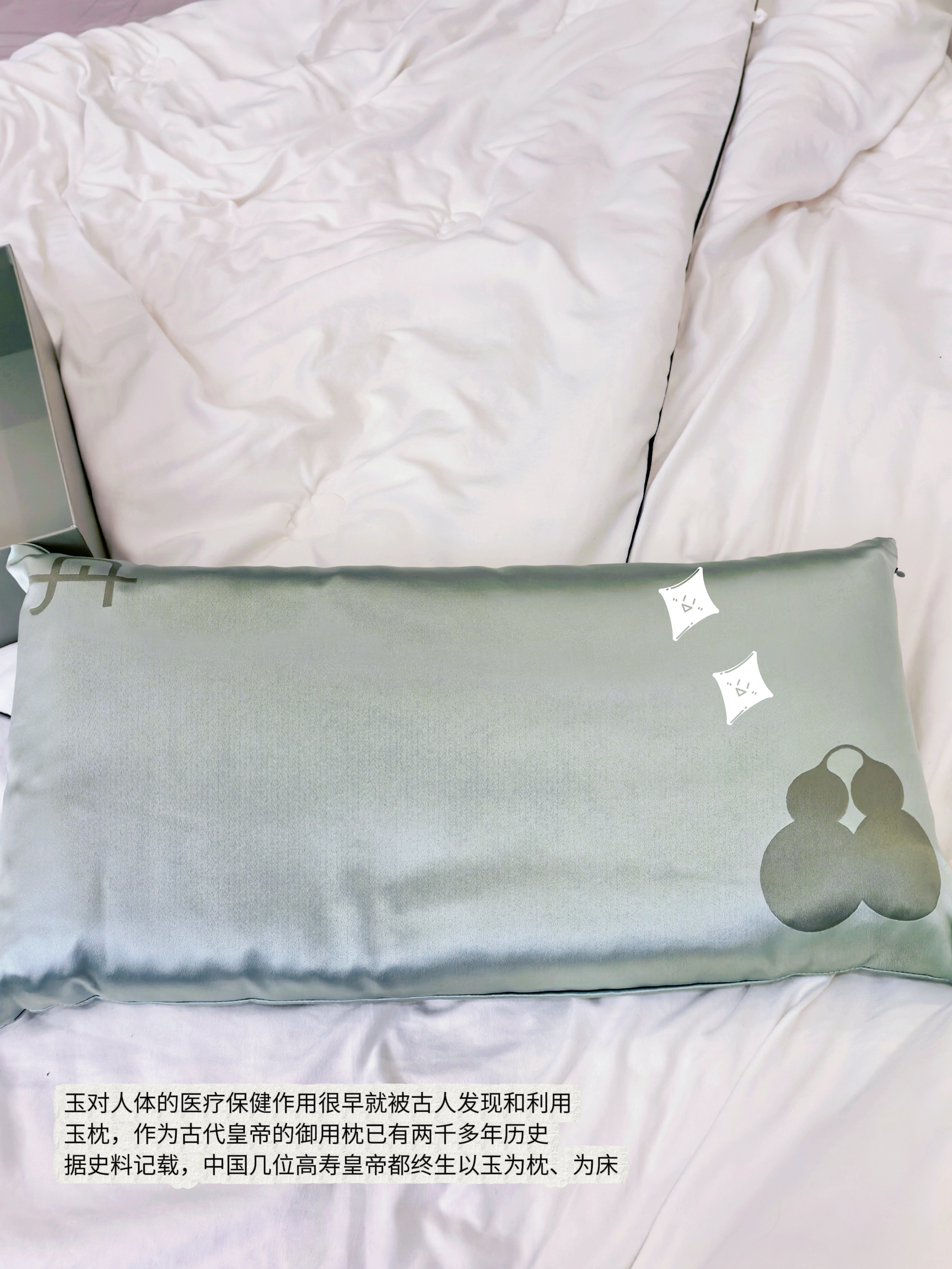 ✅高颜值玉枕,天青色枕套,出岫色双葫芦。