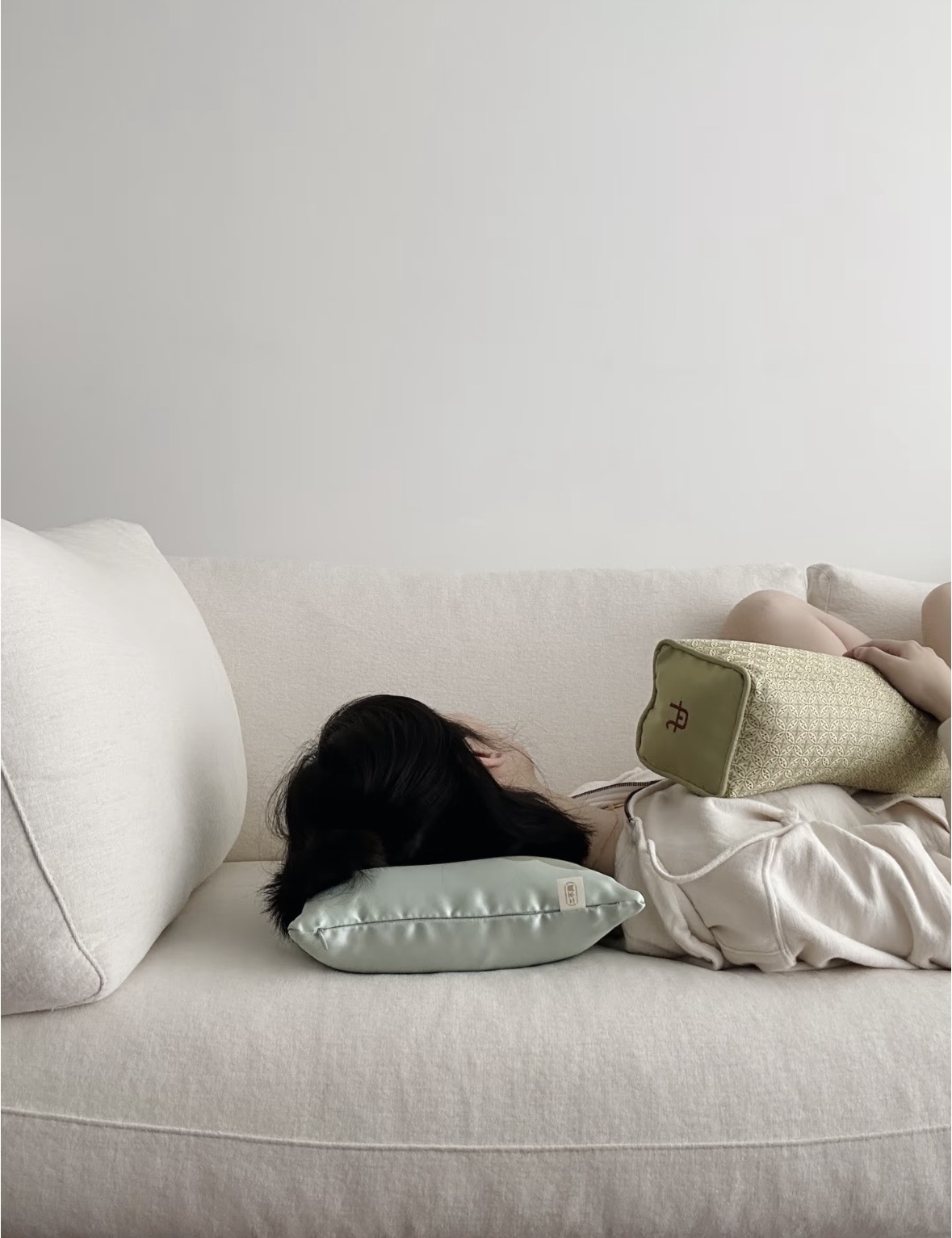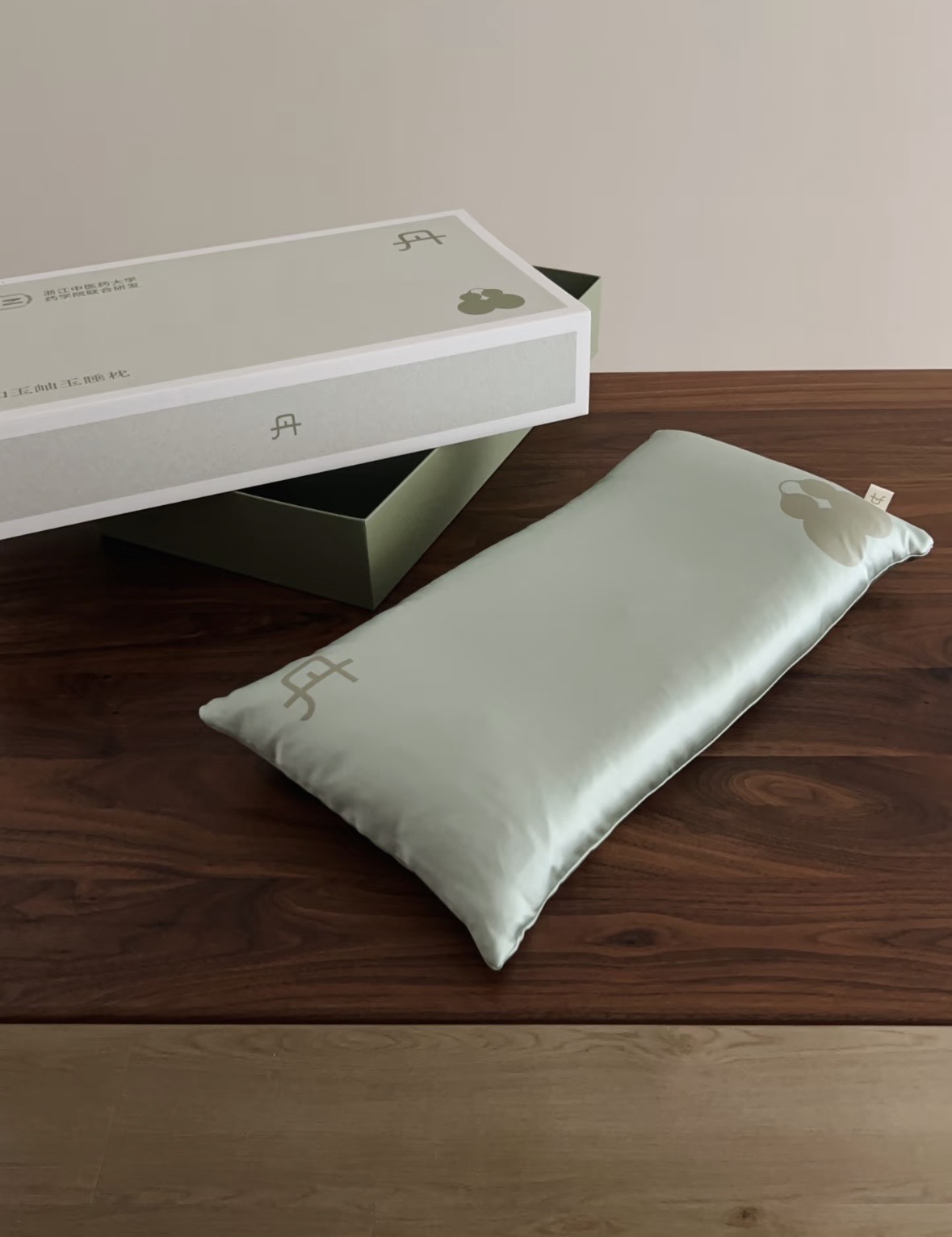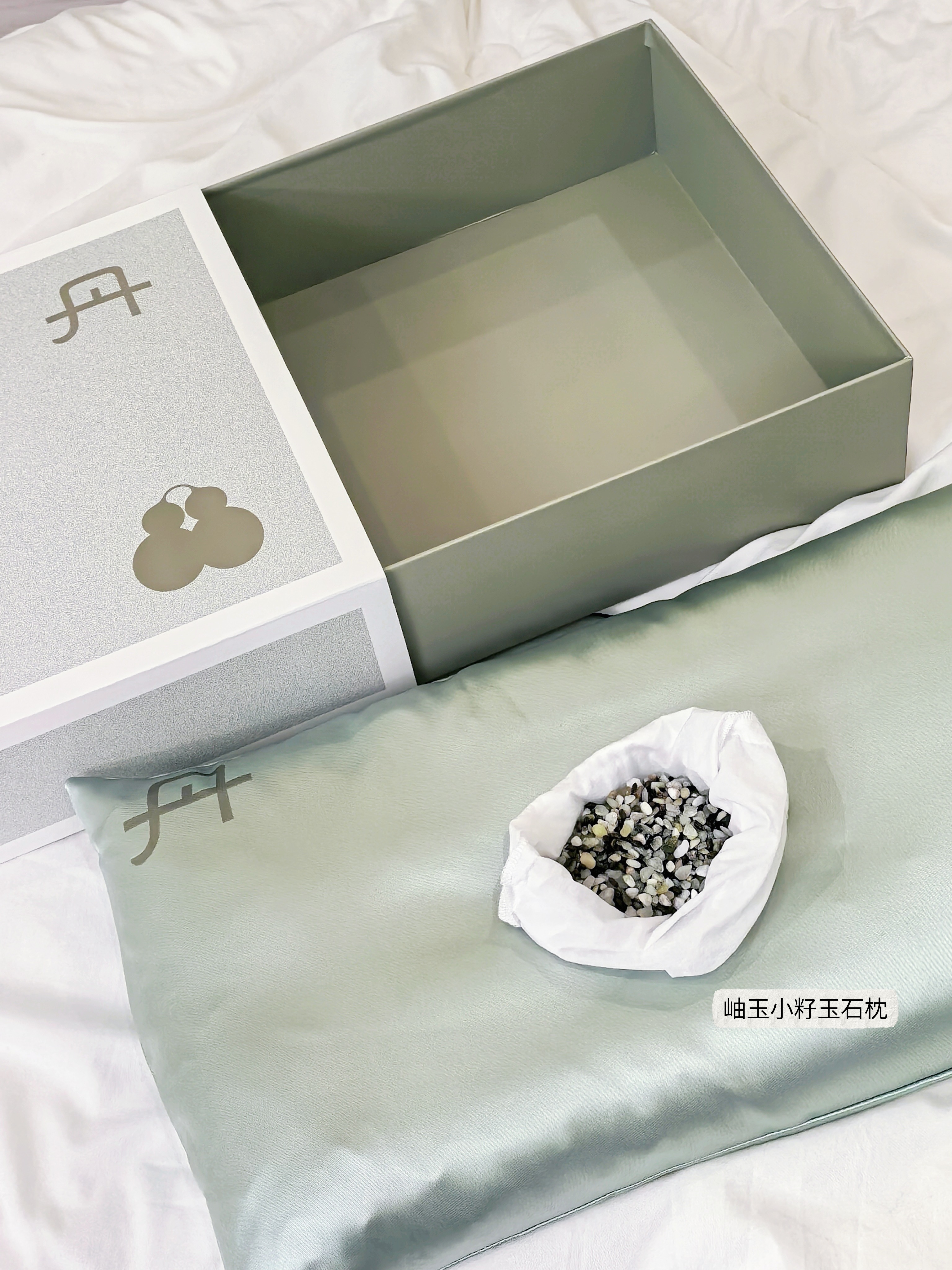 天青色织锦缎面料包裹着温润玉石和蓬松柔软的羽丝棉,再将决明子、紫苏等中草药嵌入内里,清火解气,让人在梦中进行一场养生美容觉。