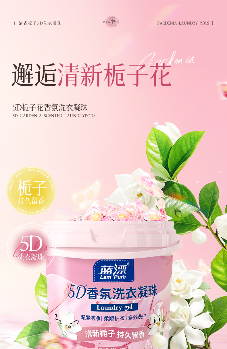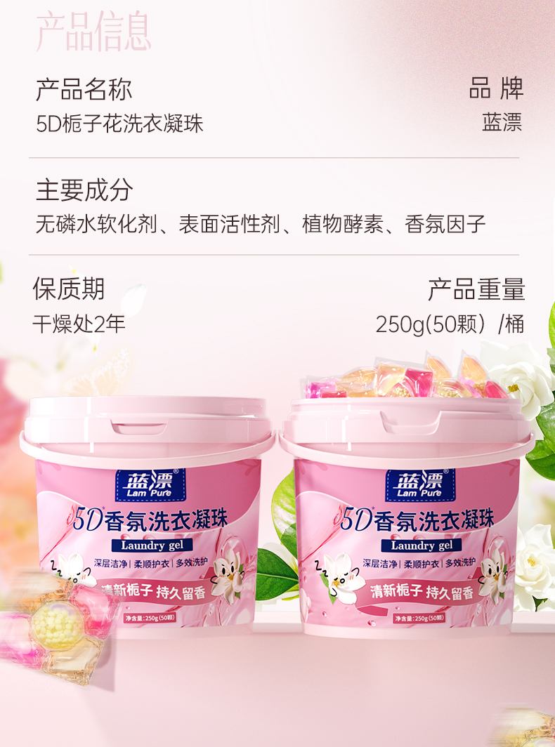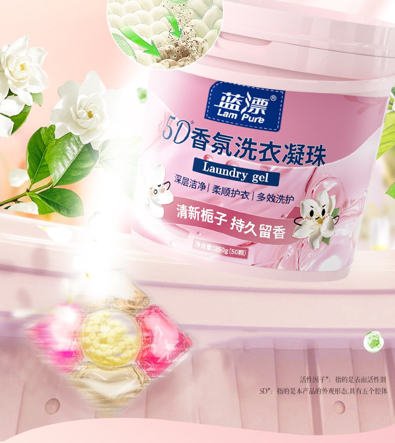 【蓝漂】香氛洗衣凝珠50颗*1桶 清新栀子持久留香 深层洁净柔顺护衣