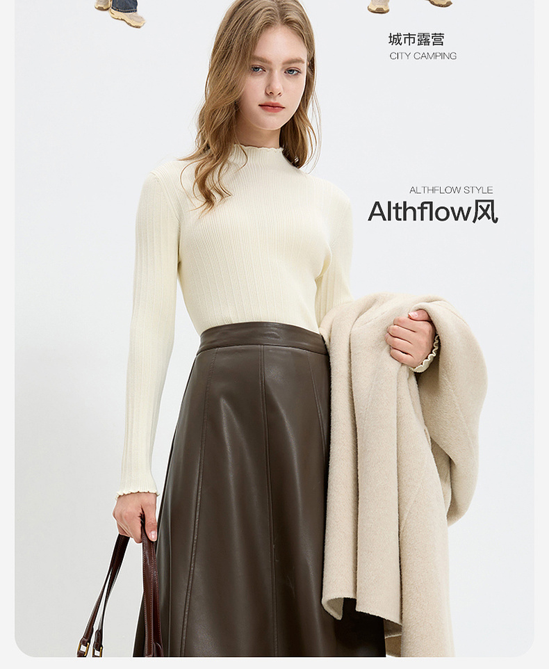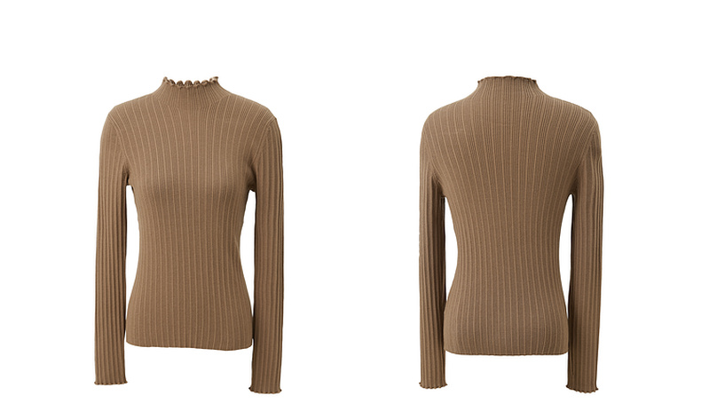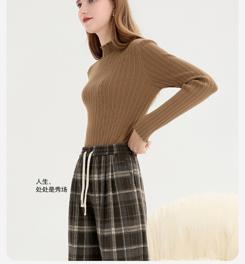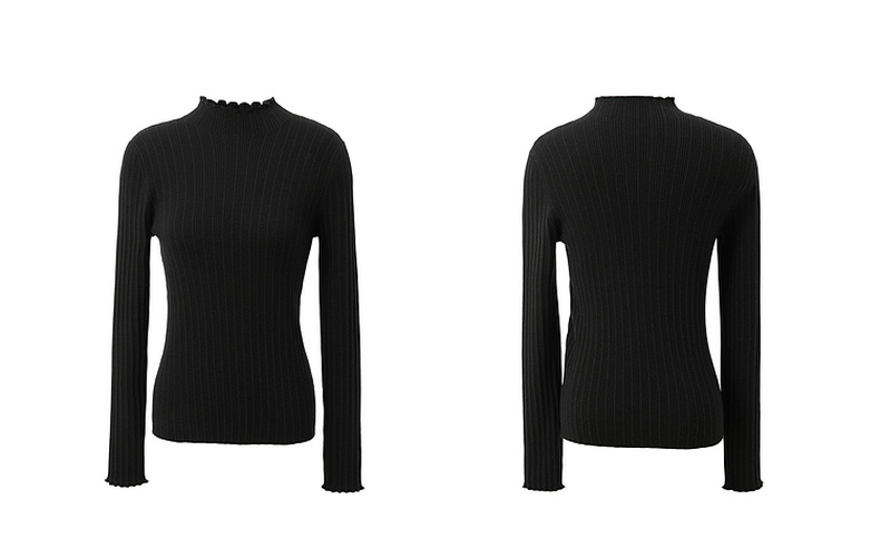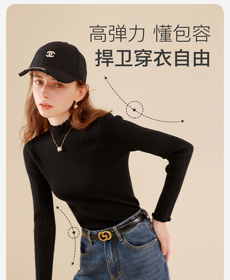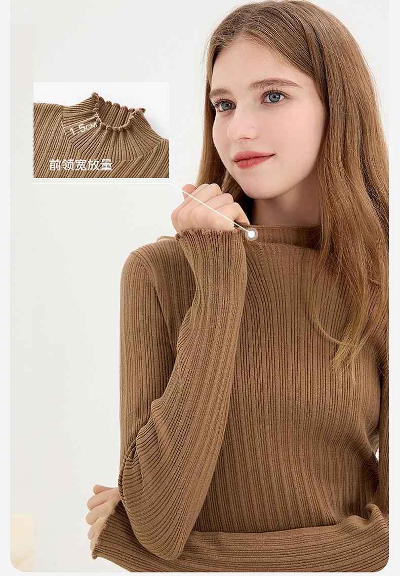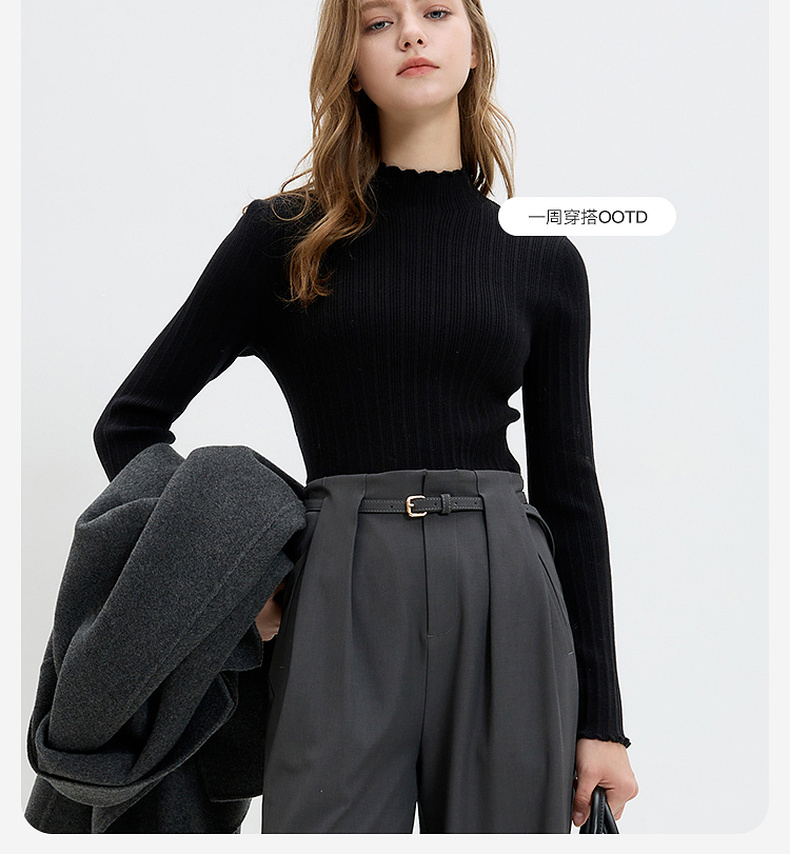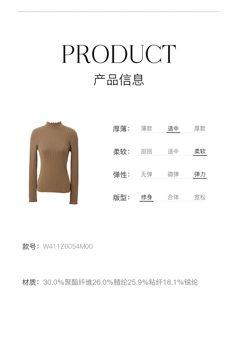 三彩2026春季新款坑条针织衫木耳边半高领修身打底内搭长袖M