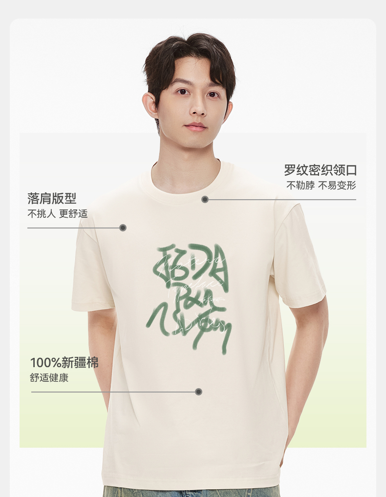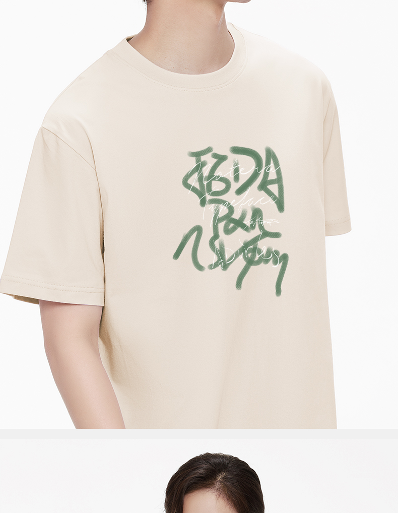 「棉的美学」宽松美式凉感潮流休闲短袖线条字母印花纯棉高街纯色