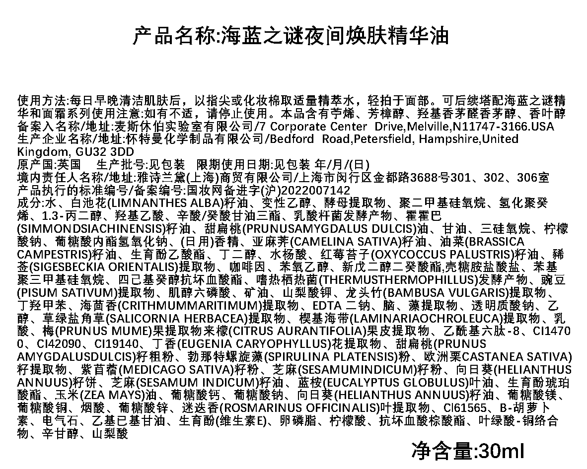 瑕疵护肤-Lamer海蓝之谜 柔酸精华油/夜间焕肤精华油