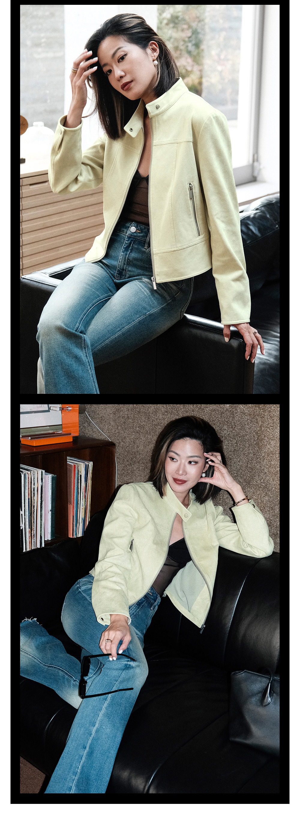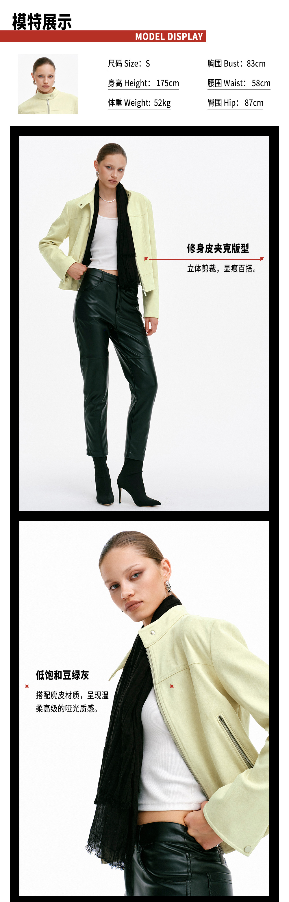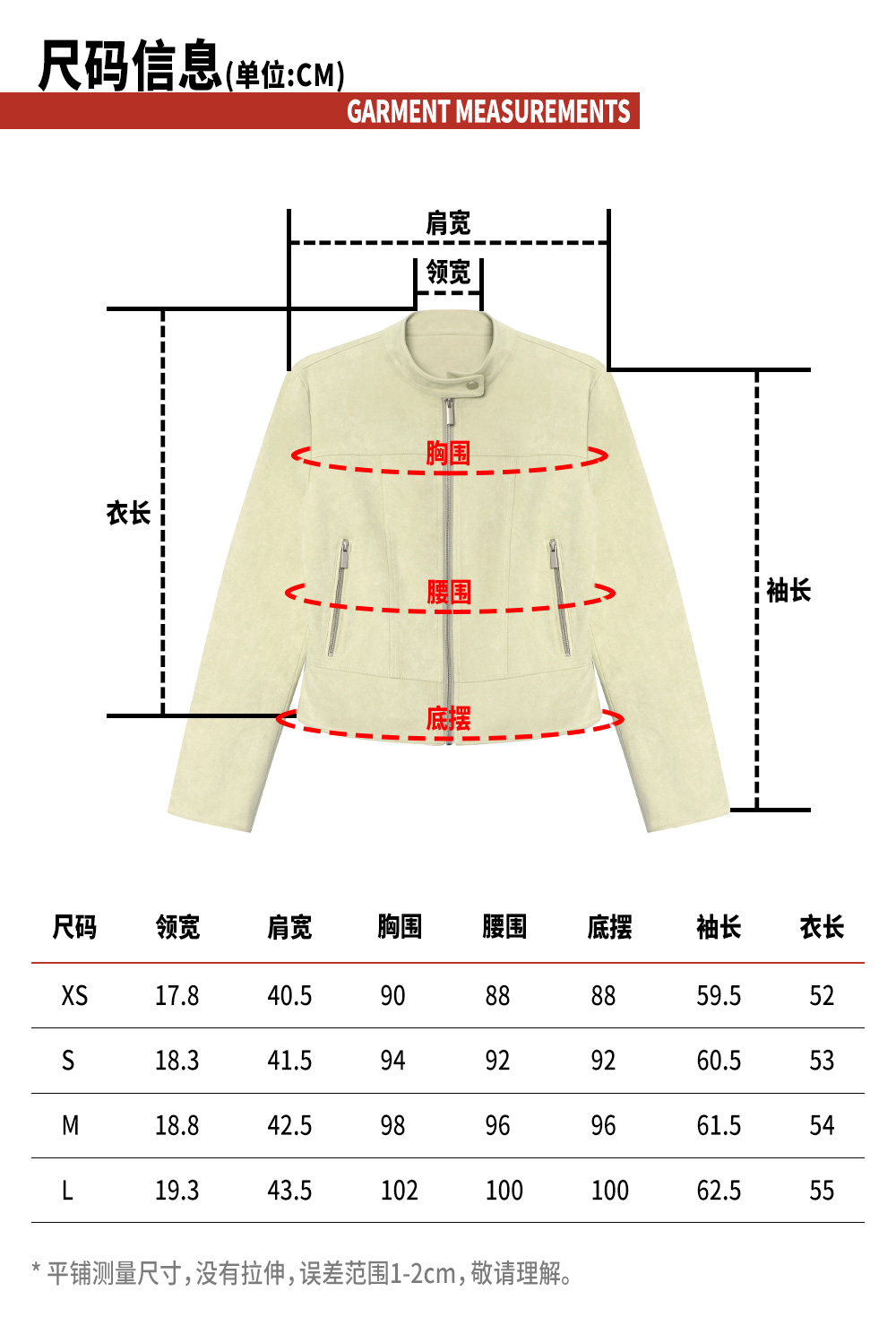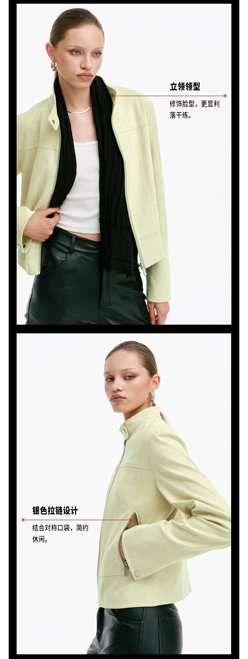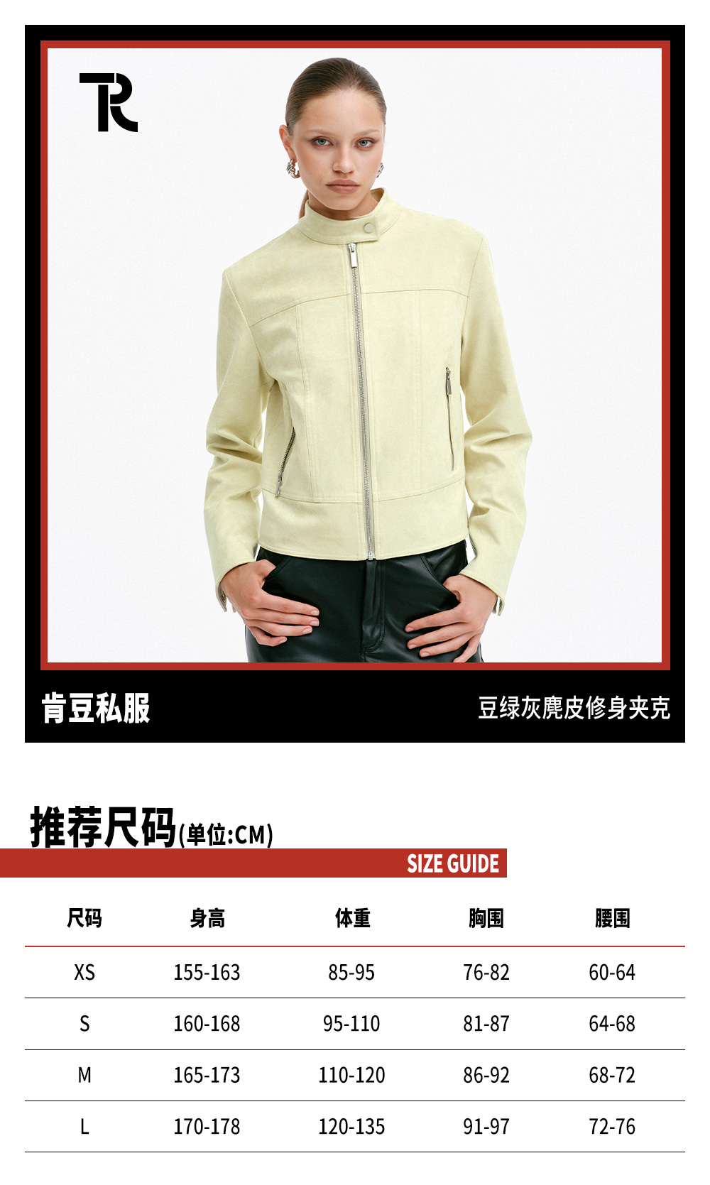 TR她热 肯豆私服 豆绿灰麂皮正肩复古显瘦拉链修身立领短款夹克外套