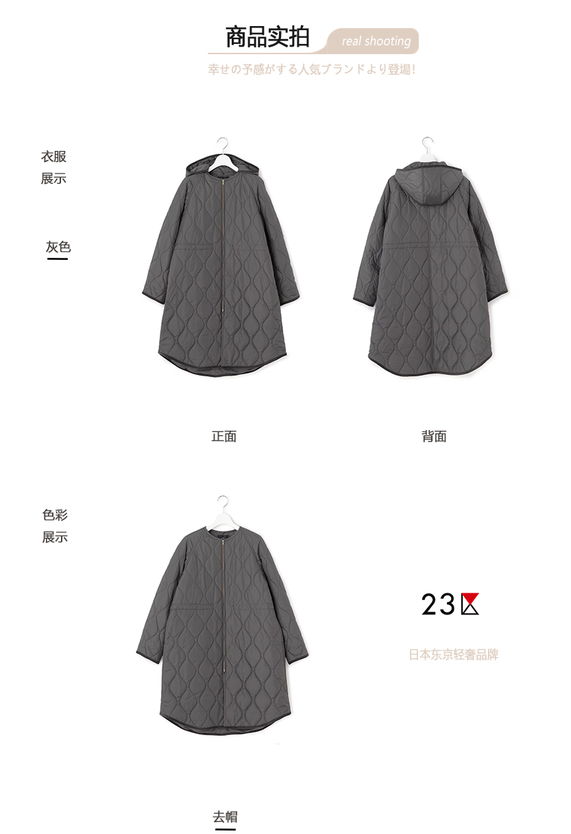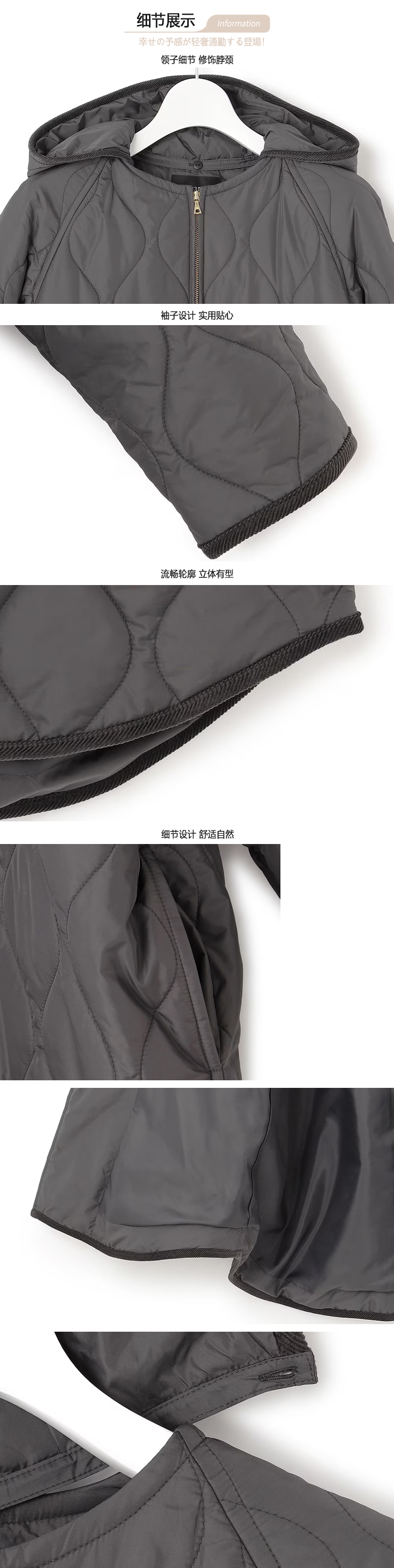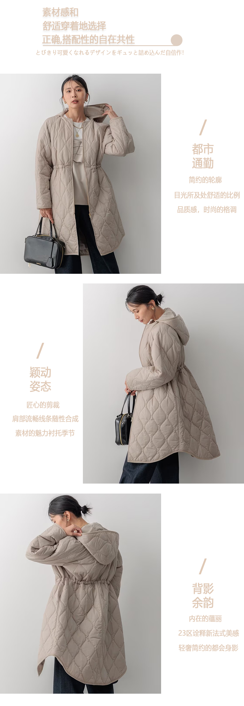 23区日系春季通勤宽松可脱卸帽菱形格切线中长棉风衣棉袄商场同款