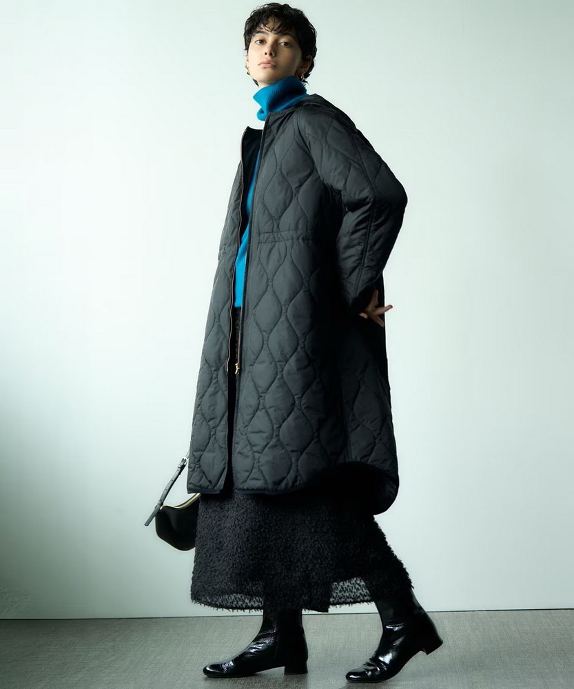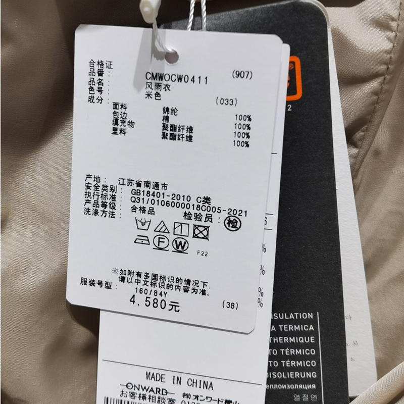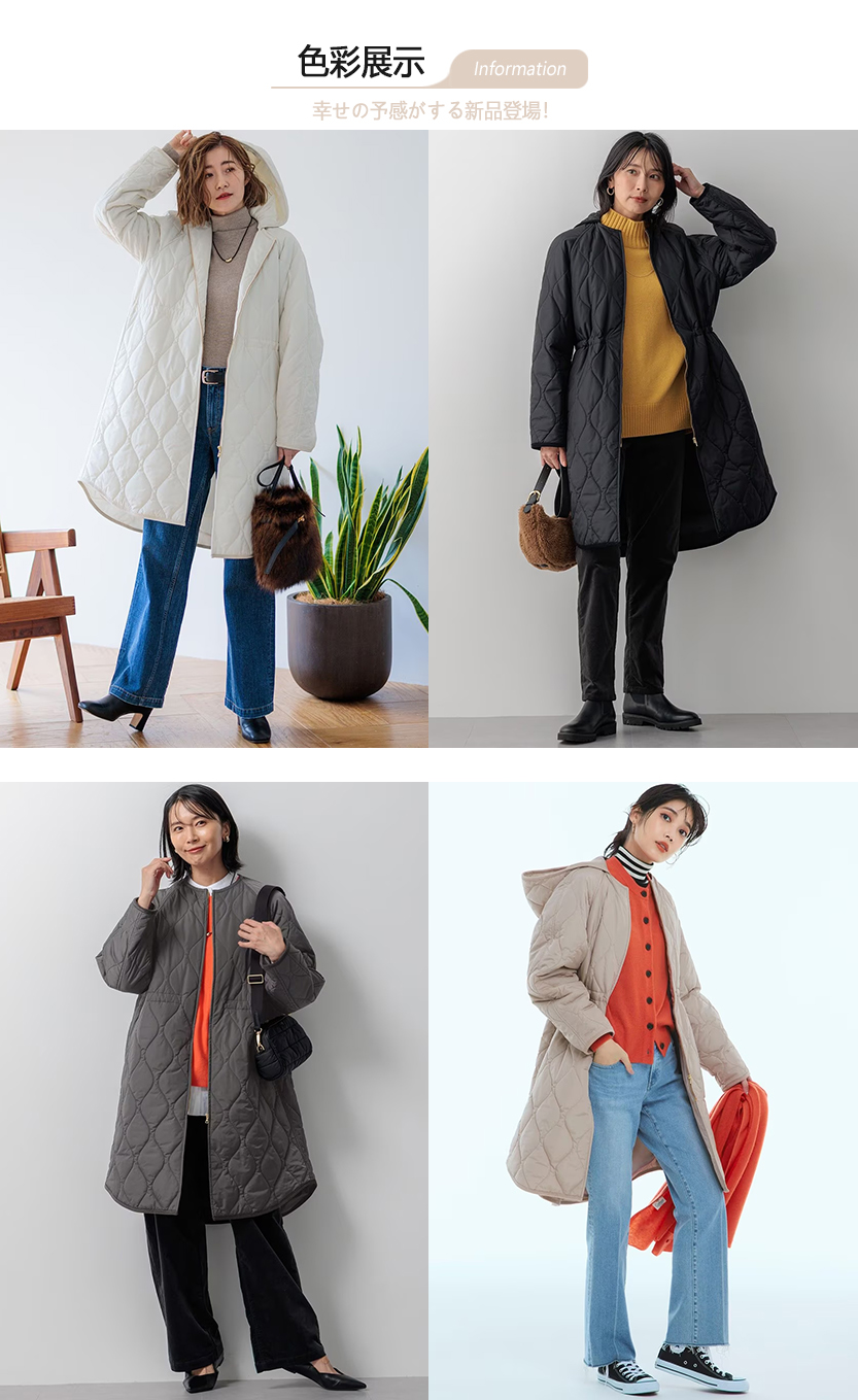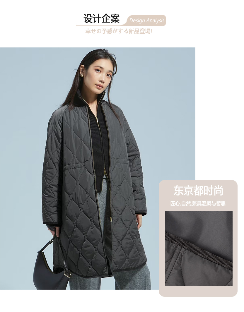 23区日系春季通勤宽松可脱卸帽菱形格切线中长棉风衣棉袄商场同款