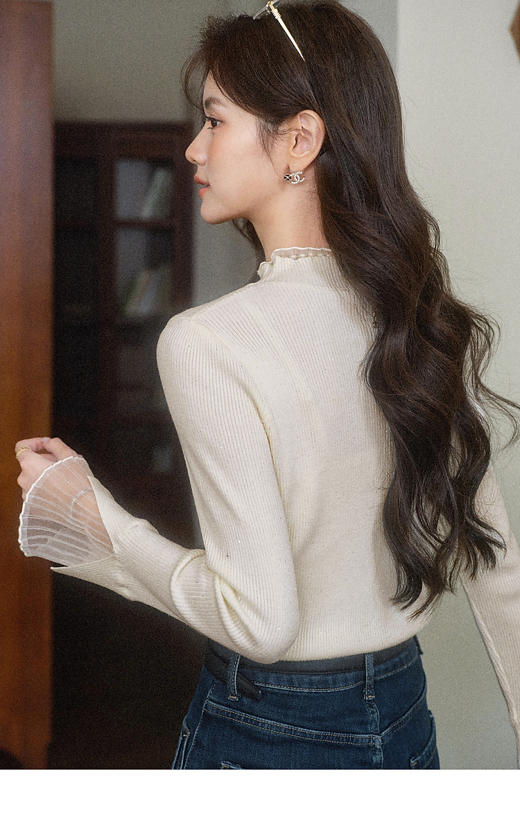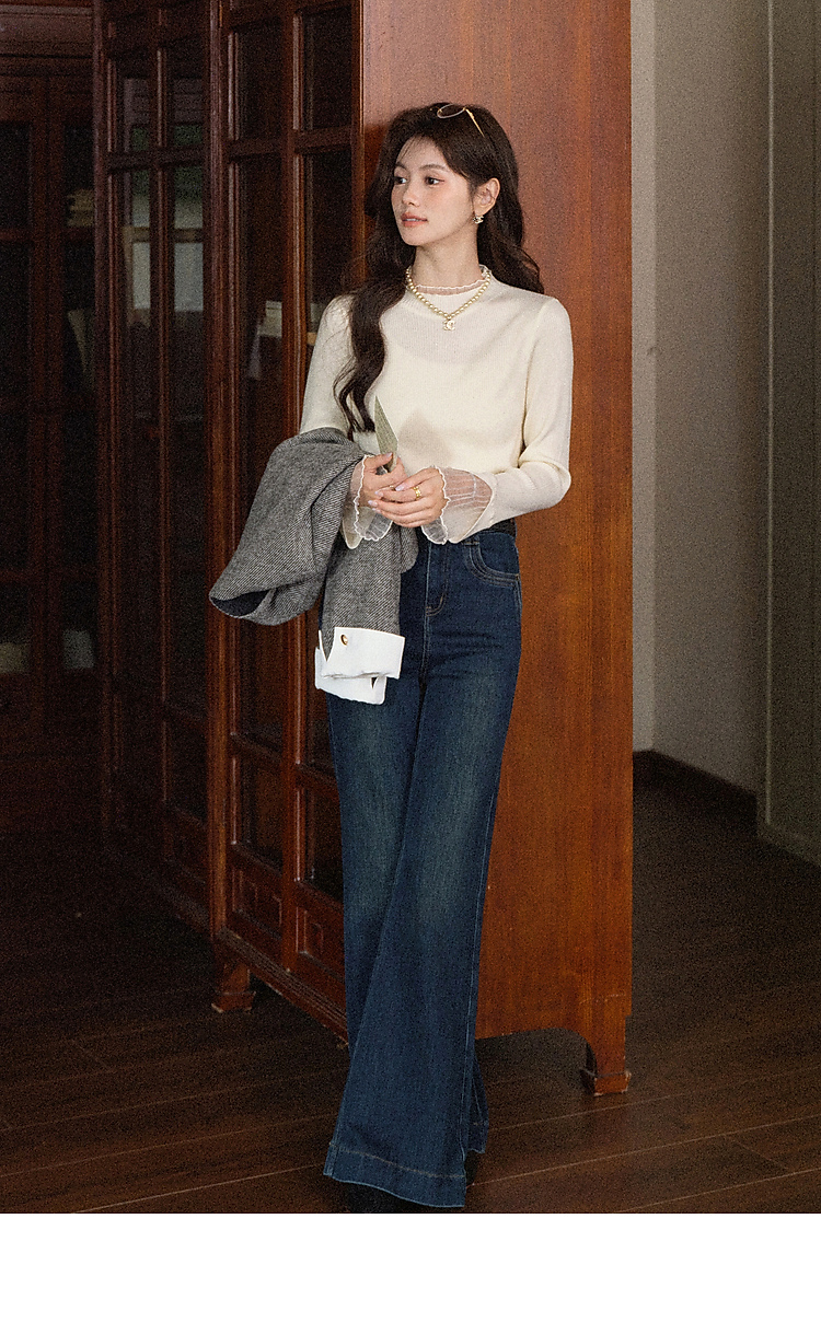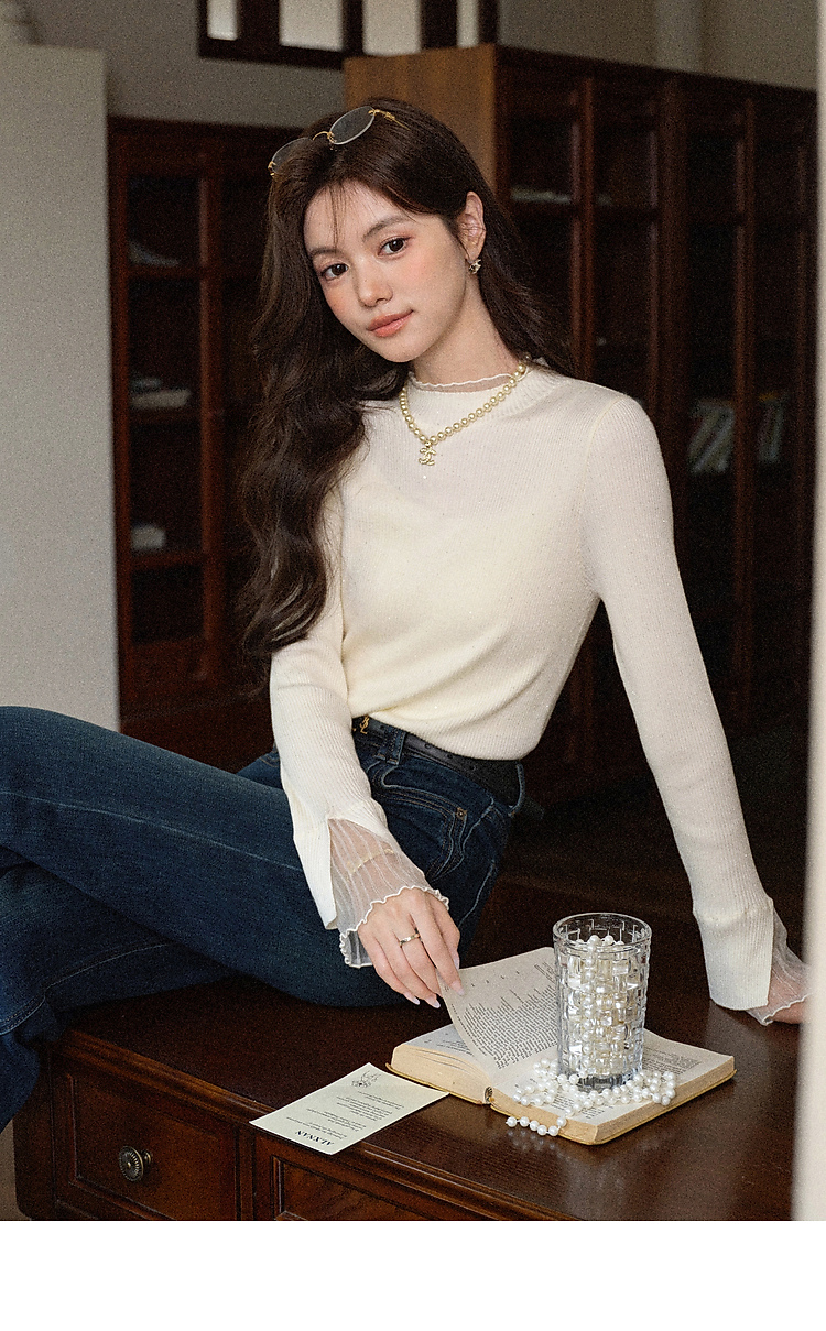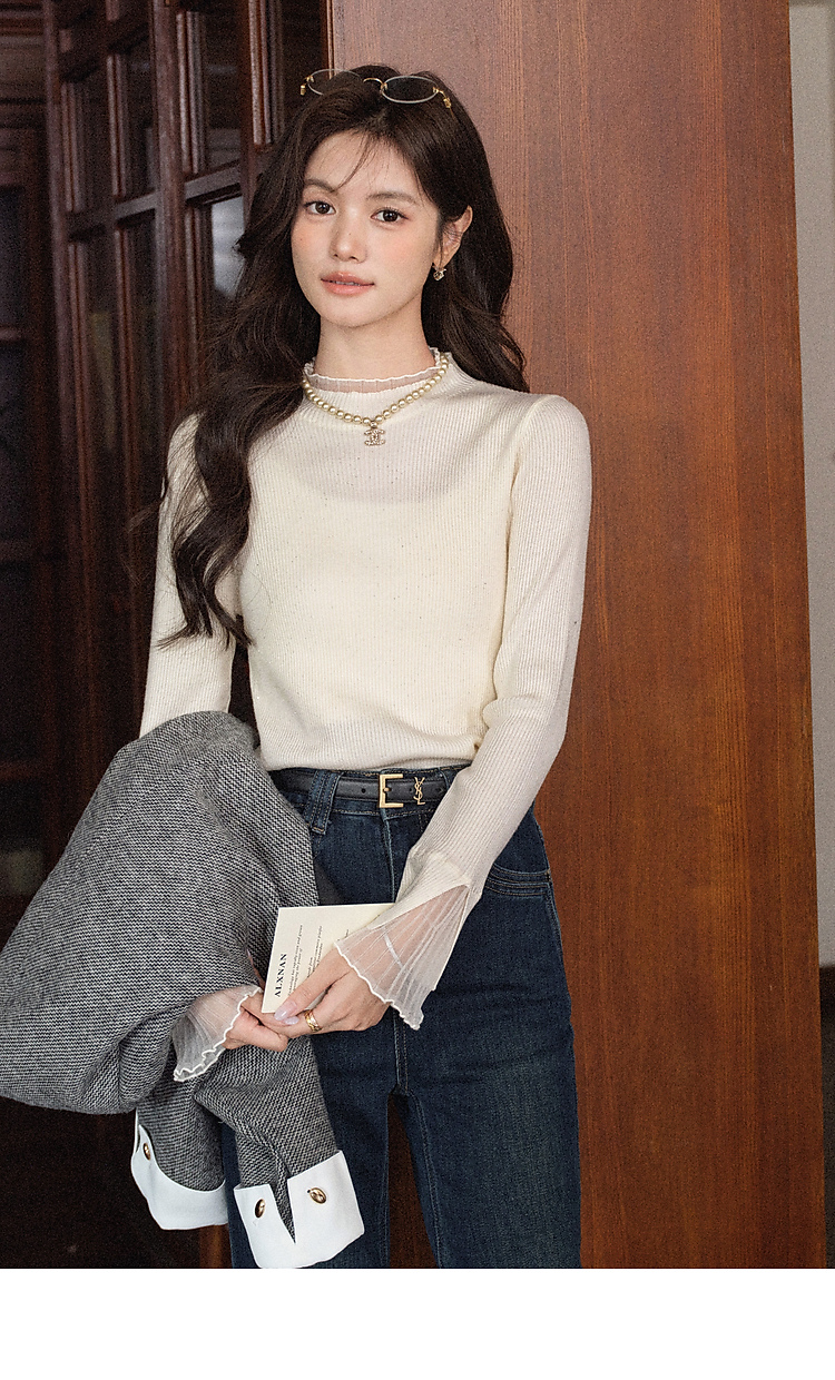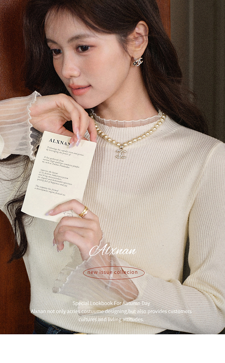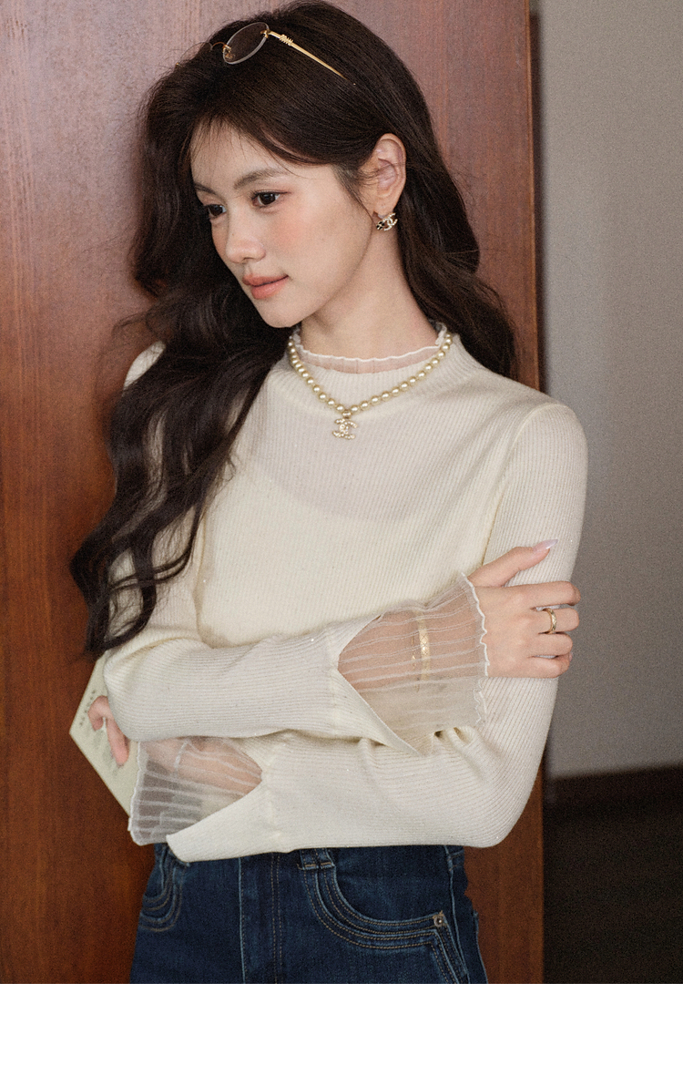 鹿向南「浮光裹柔」温柔感米白色内搭长袖针织衫女秋百搭显瘦上衣