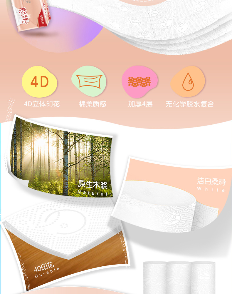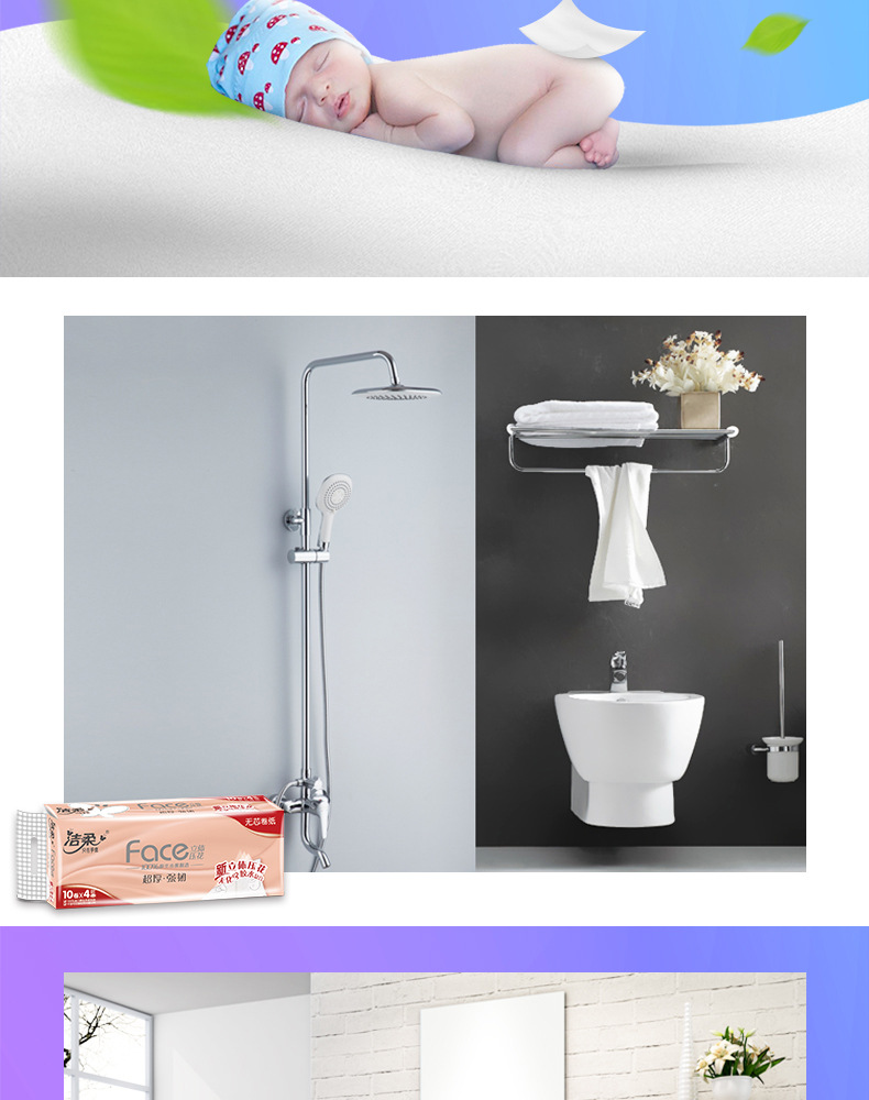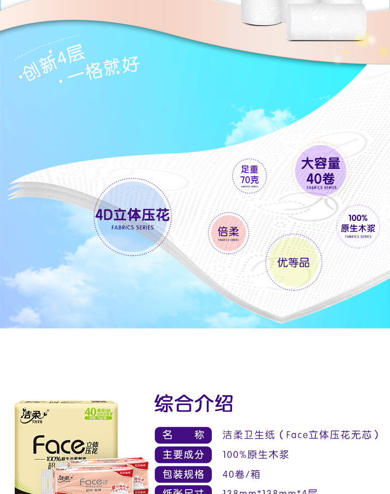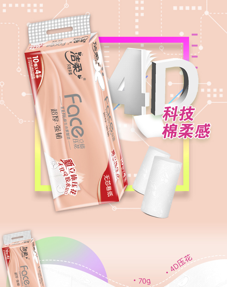 【4层70g家用10卷一提】洁柔无芯卷纸卫生纸居家日用清洁工具纸巾厕纸卷纸