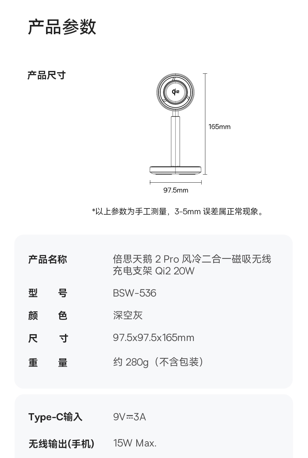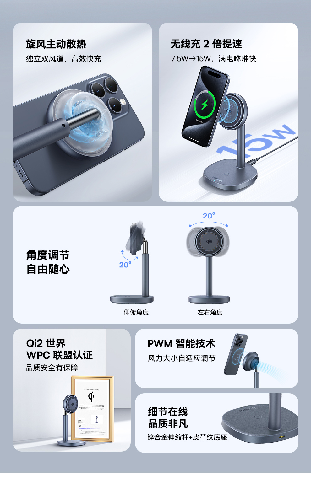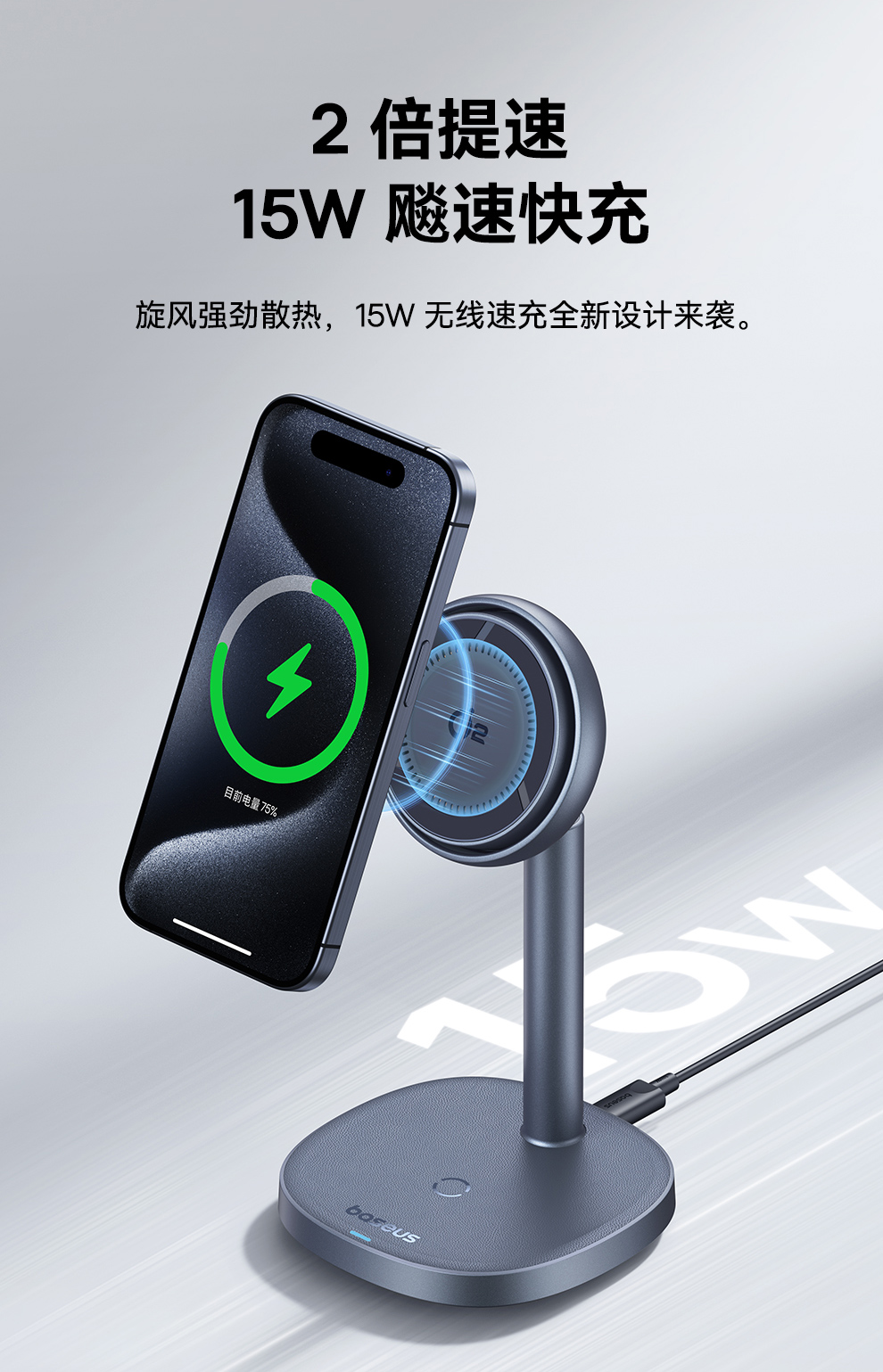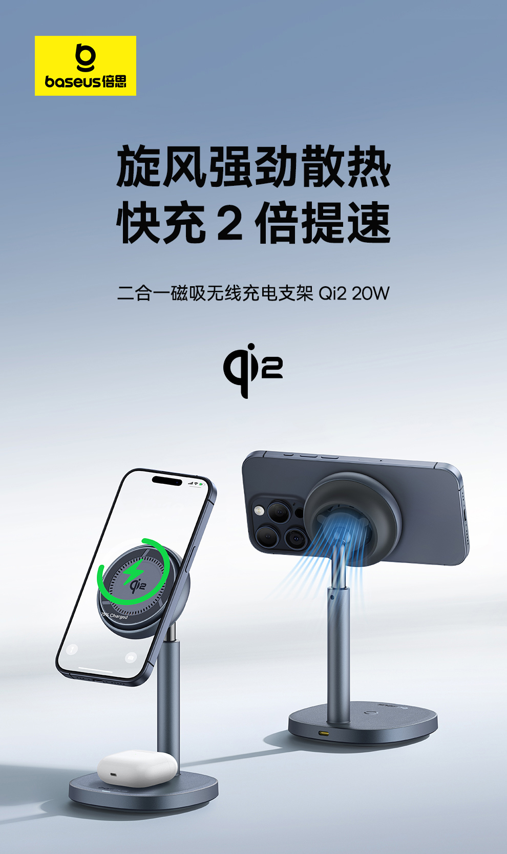 倍思 天鹅2Pro风冷二合一磁吸无线充电支架 Qi2 20W BSW-536
