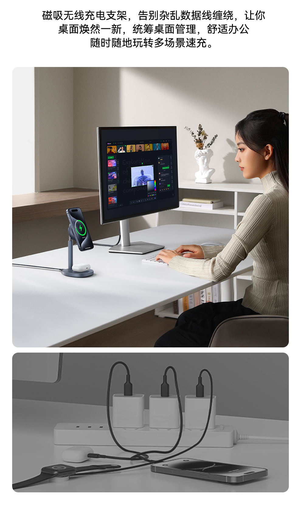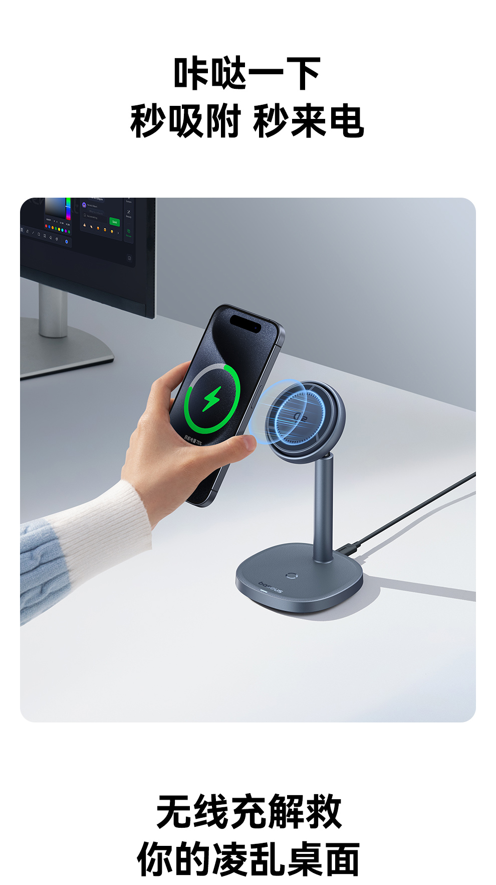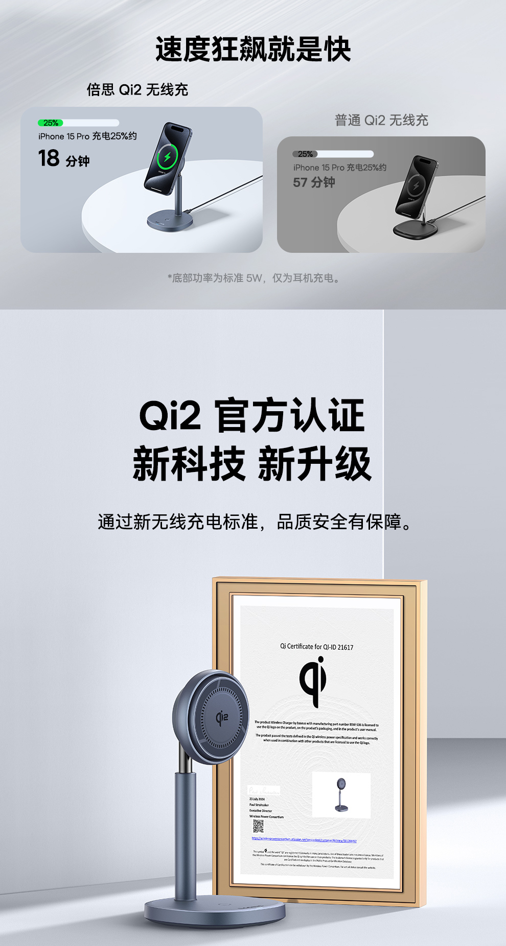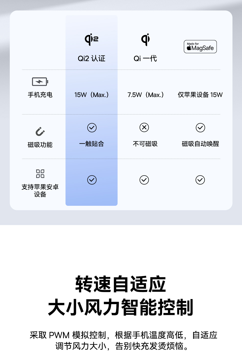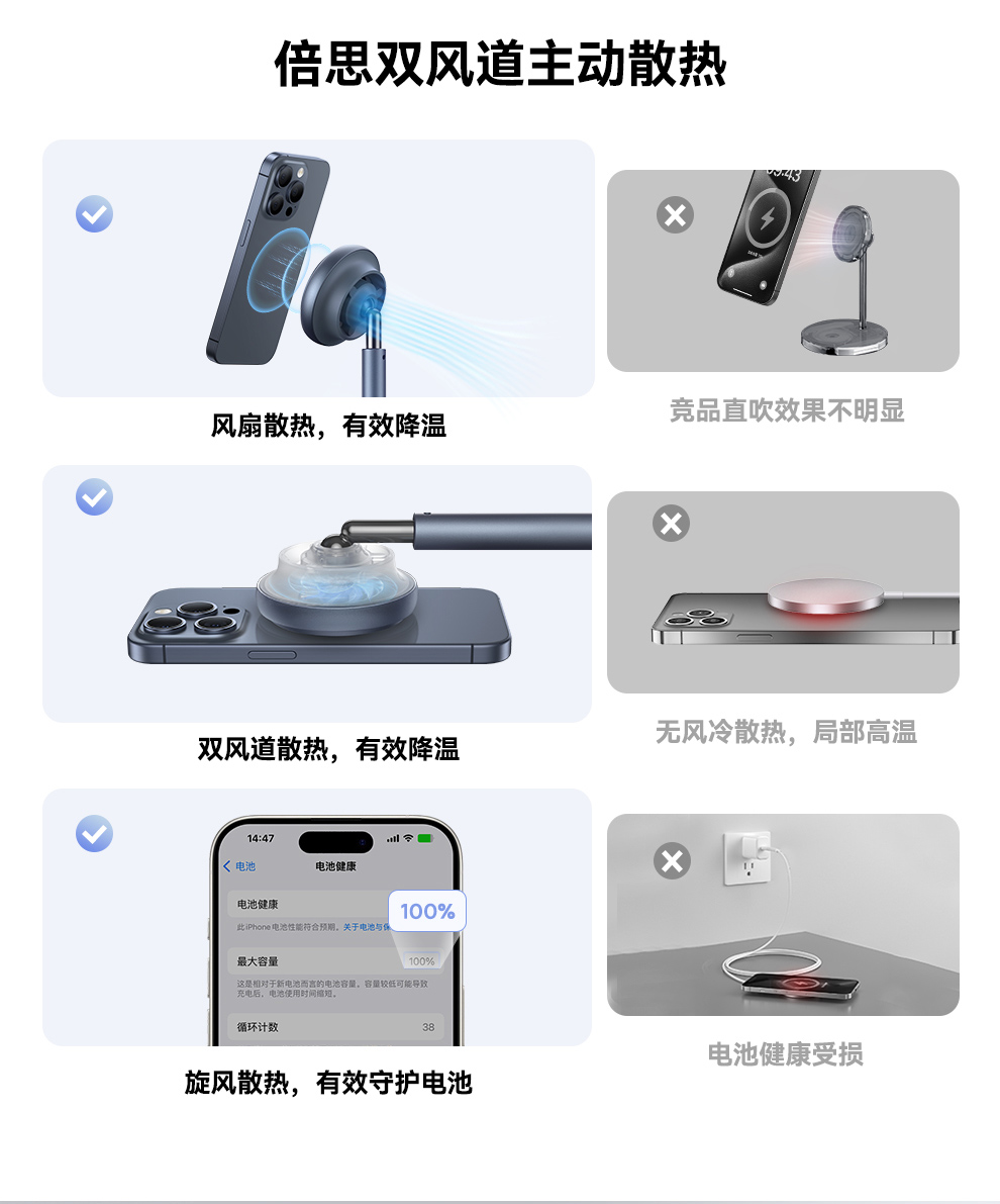 倍思 天鹅2Pro风冷二合一磁吸无线充电支架 Qi2 20W BSW-536