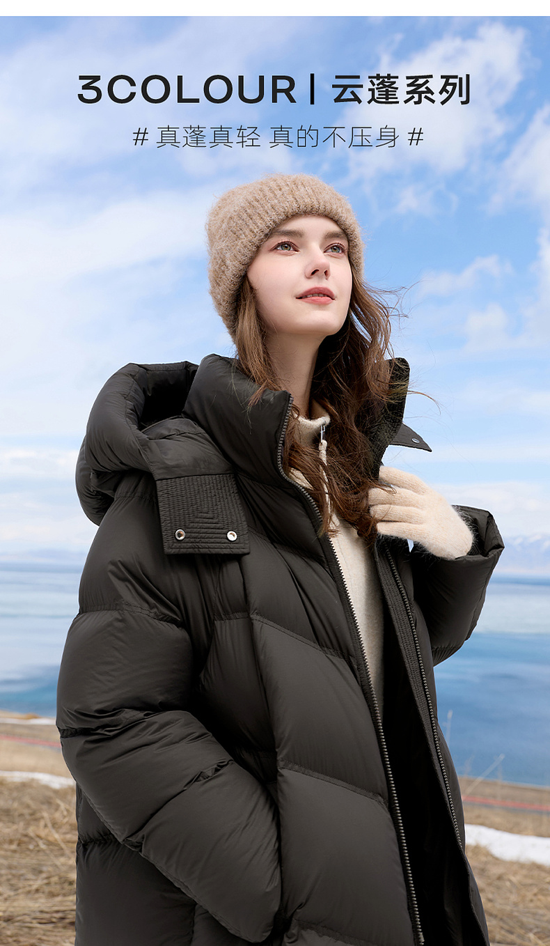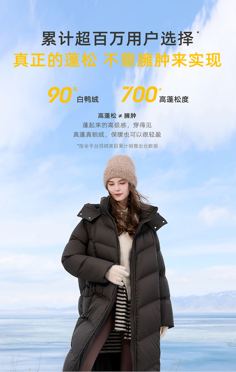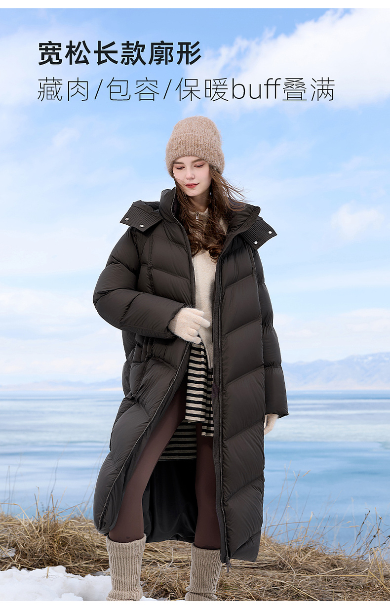 【高蓬高充绒】三彩2025冬季新款防水羽绒服长款90白鸭绒被子服M
