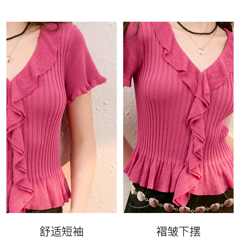 【莱赛尔】三彩独醒2025秋季新款V领针织衫修身短款开衫显瘦F
