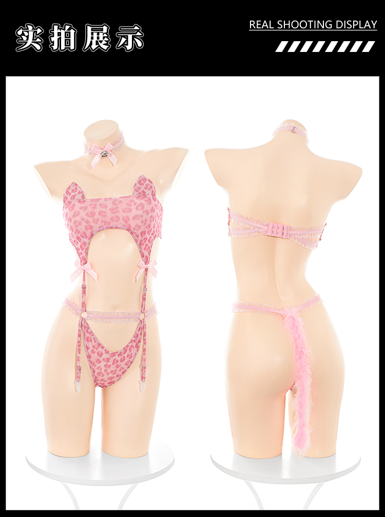 【情趣内衣】霏慕 粉欲豹纹吊带连体衣6322