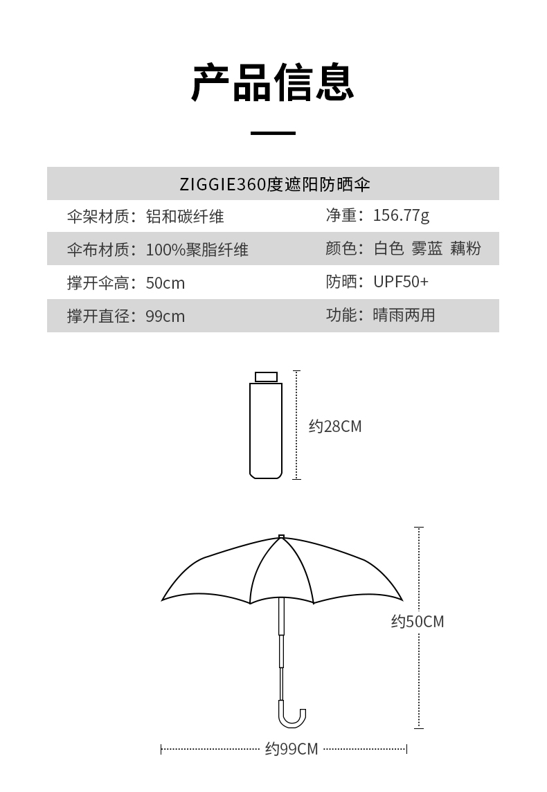ZIGGIE碳纤维轻便防晒伞遮阳伞 UPF50