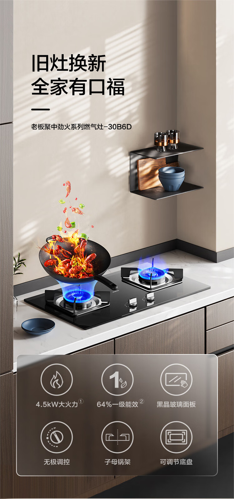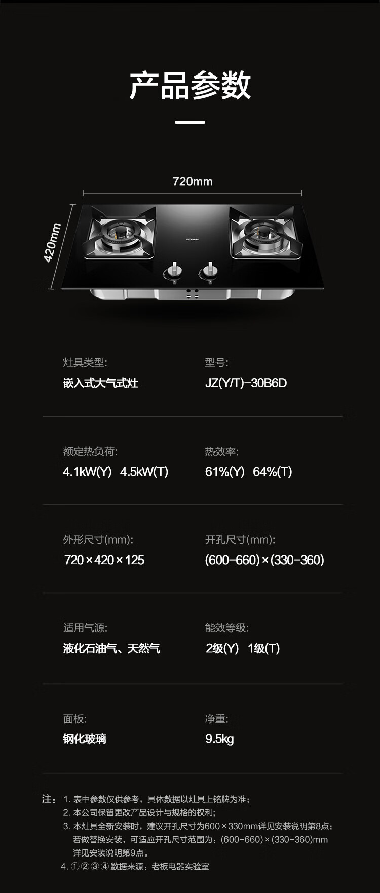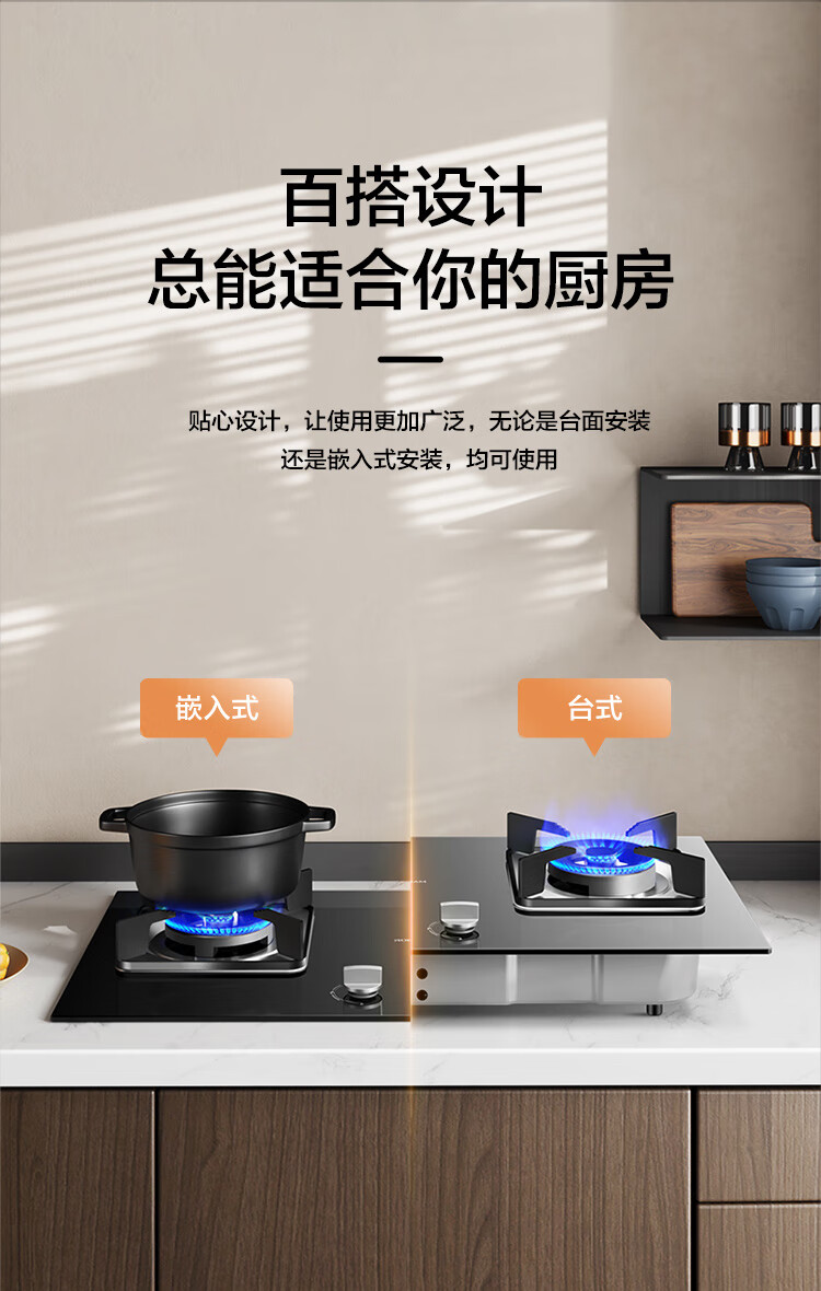 老板(Robam)JZT-30B6D 燃气灶天然气灶双灶嵌入式 4.5kW小尺寸换装可调节灶具灶台 易洁台嵌两用高效猛火灶家用