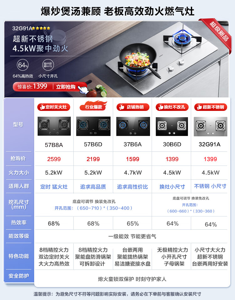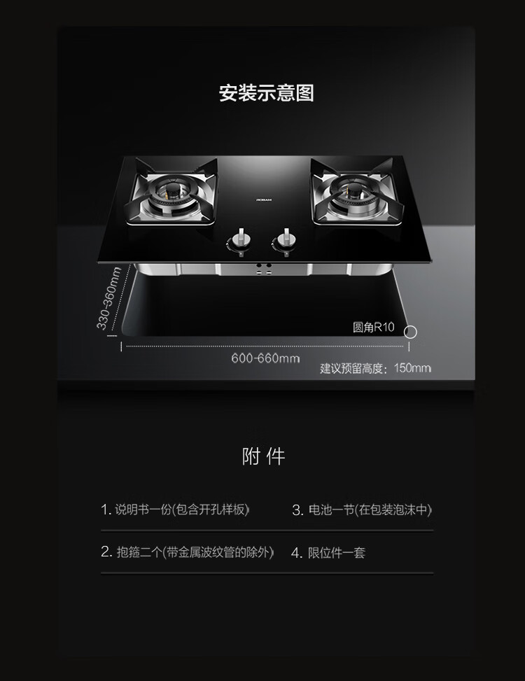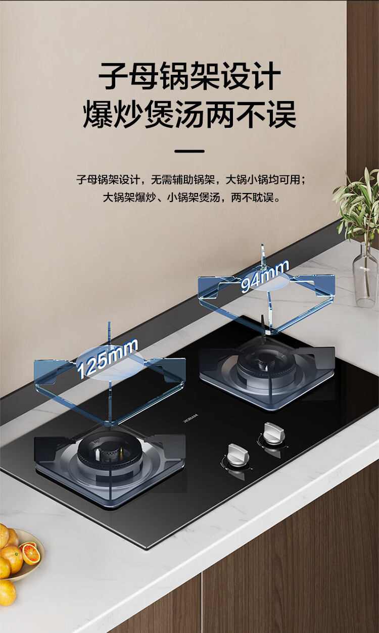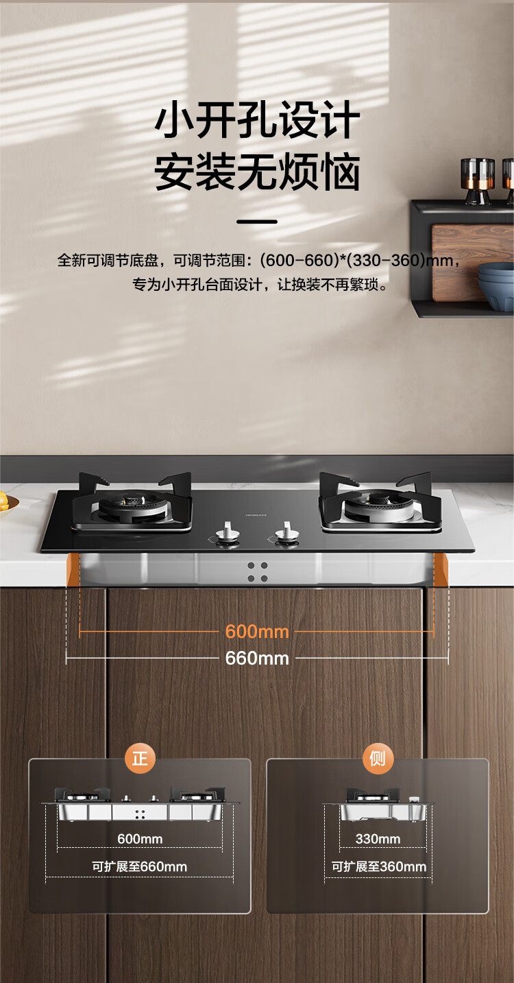 老板(Robam)JZT-30B6D 燃气灶天然气灶双灶嵌入式 4.5kW小尺寸换装可调节灶具灶台 易洁台嵌两用高效猛火灶家用