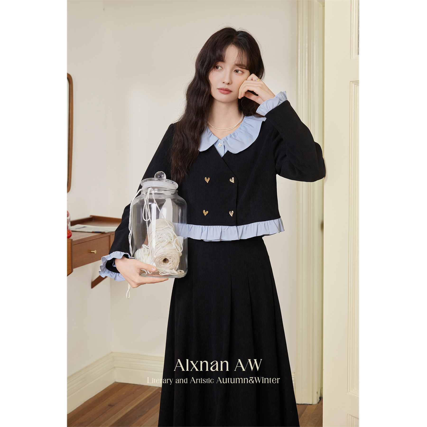 鹿向南「蓝色迷雾」学院风蓝边短外套DYL661290